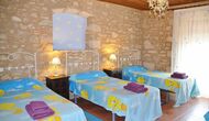 Aux deux étages supérieurs, vous trouverez les 9 chambres restantes et 8 salles de bains supplémentaires. Comme mentionné précédemment, toutes les chambres sont extraordinairement spacieuses et offrent toutes une très belle vue. L'un d'entre eux a même accès à la terrasse du premier étage. La configuration standard est de 6 chambres doubles et 3 chambres triples, mais la capacité peut être étendue (contre supplément).