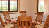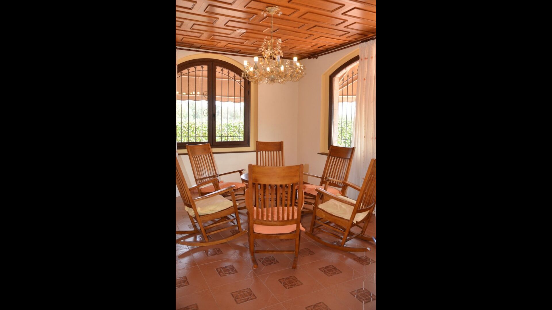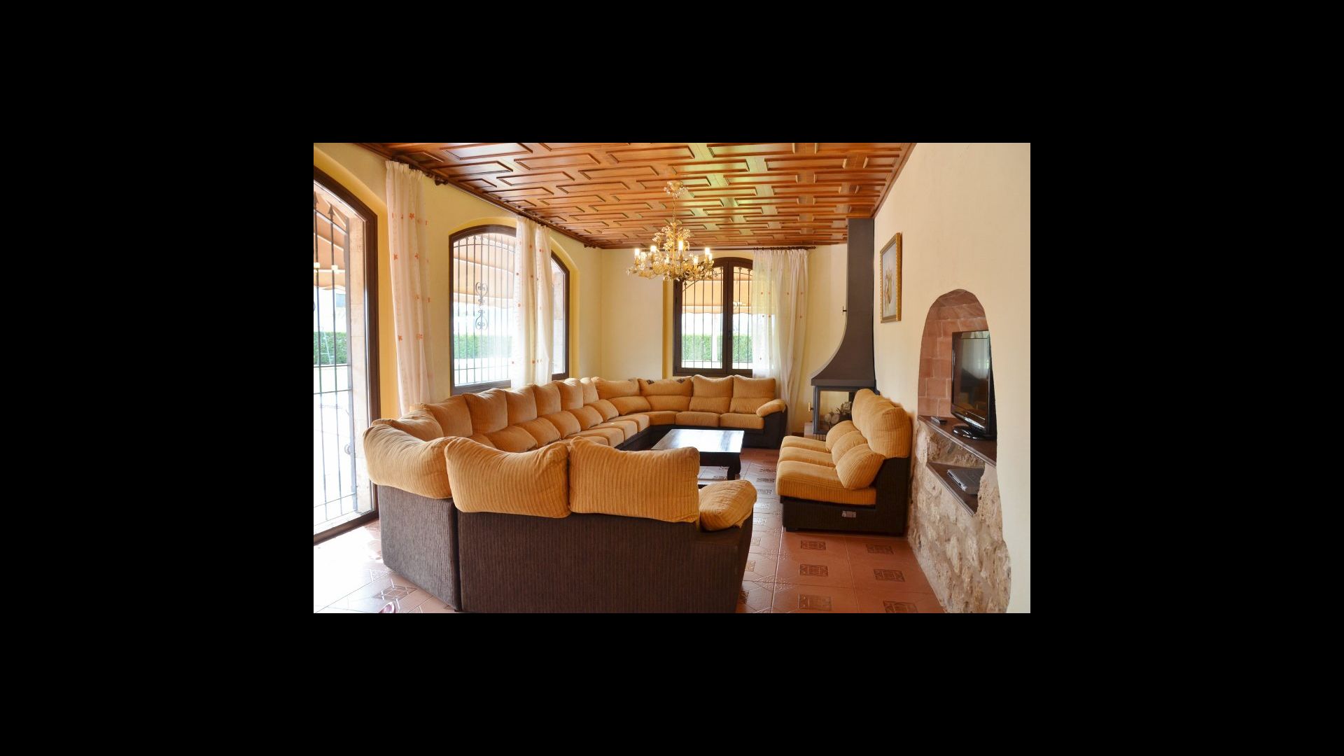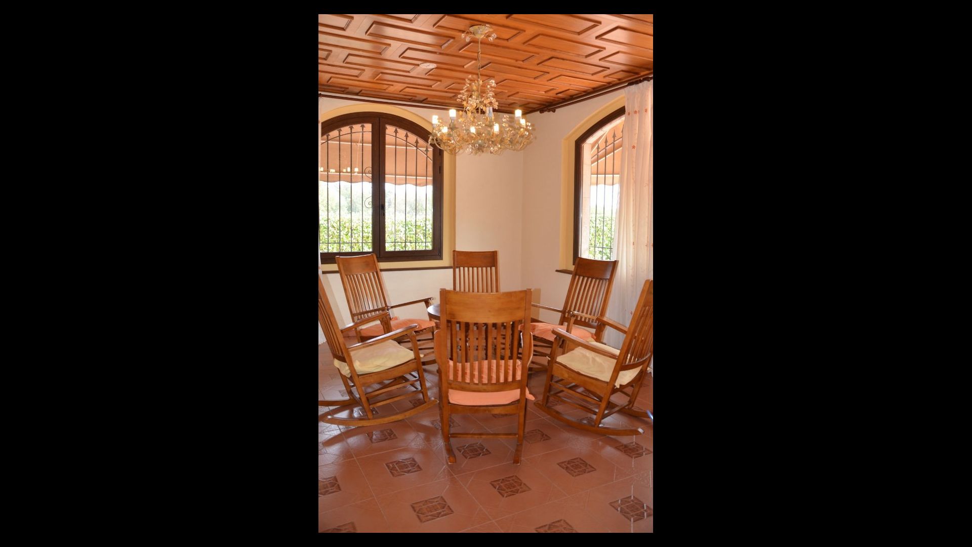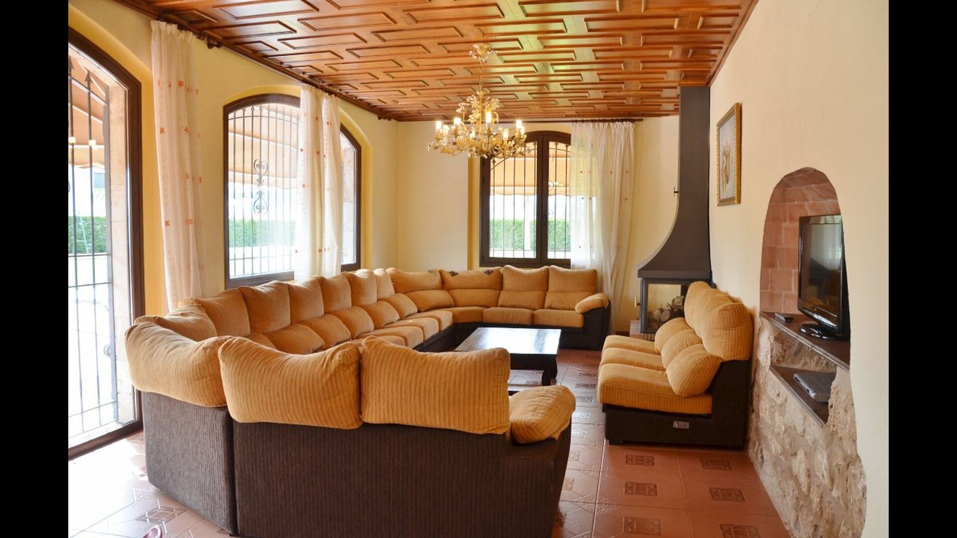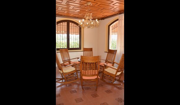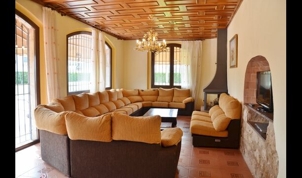 À l’intérieur de la maison, la cuisine est directement connectée à la très grande salle à manger, avec une longue table à manger, de sorte que vous pouvez également dîner ensemble à l’intérieur si vous préférez. Sur la gauche, vous trouverez un salon spacieux où vous pourrez vous détendre dans l'espace «grand-mère» avec 8 fauteuils à bascule ou dans l'espace canapé avec le plus grand canapé jamais vu, télévision et cheminée, si vous venez en hiver. .
