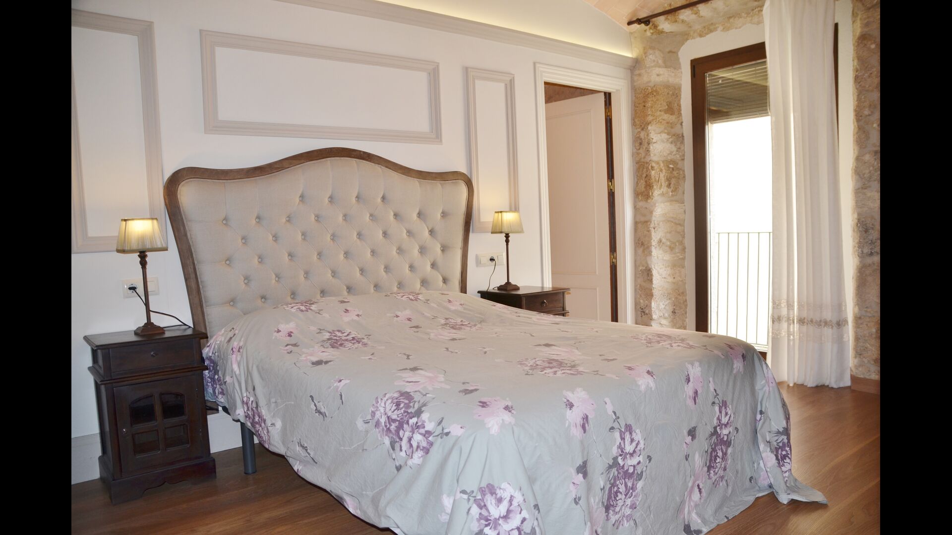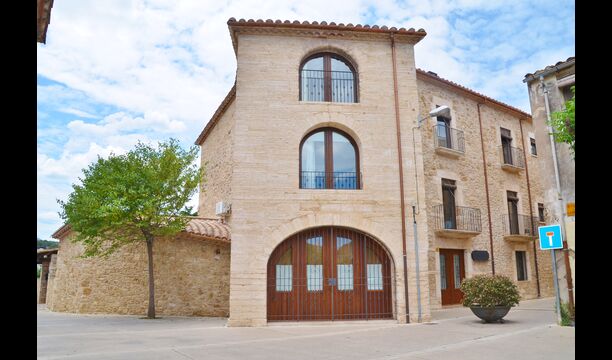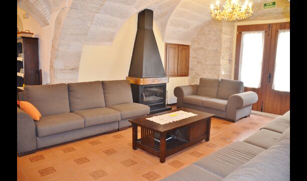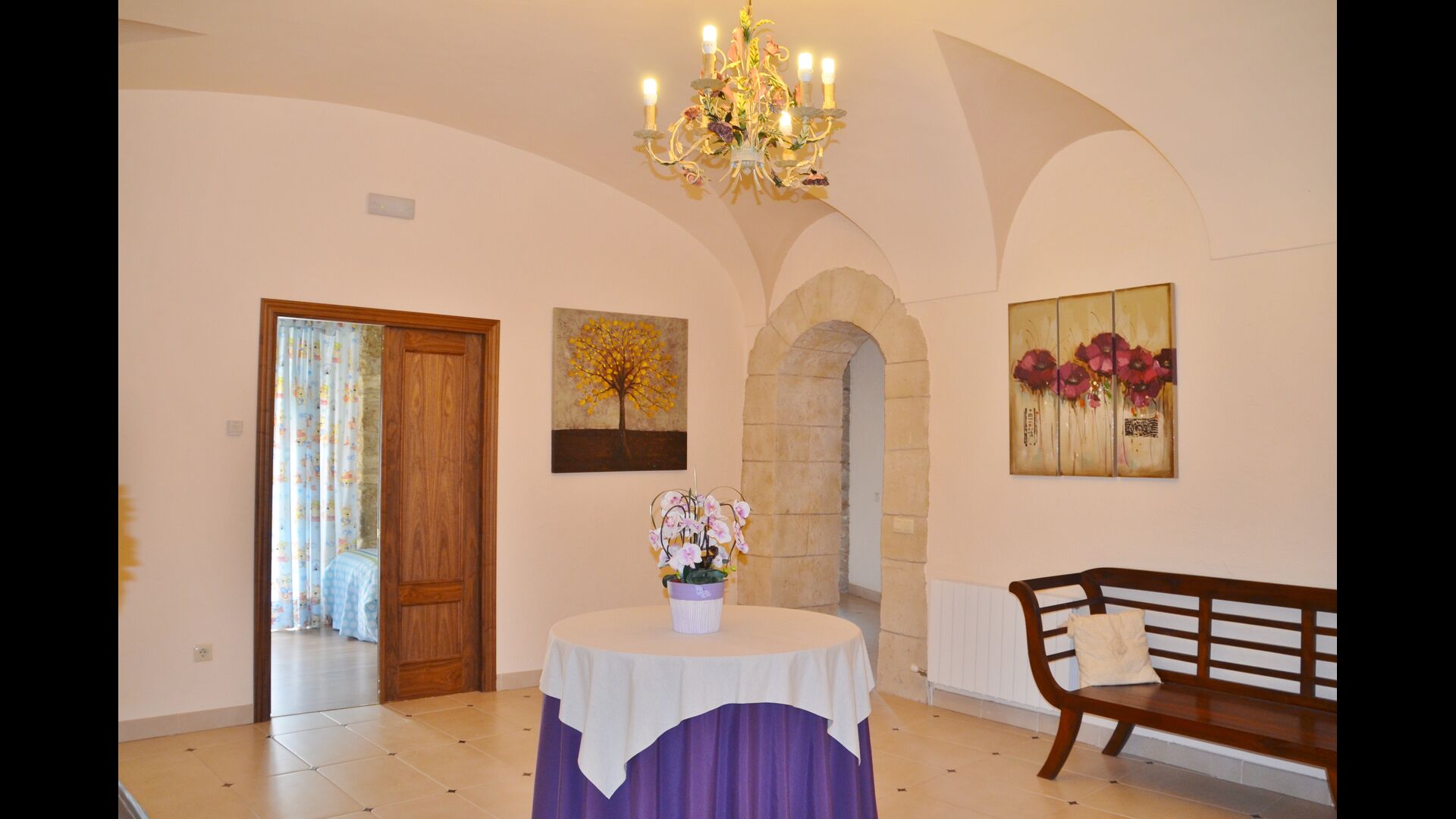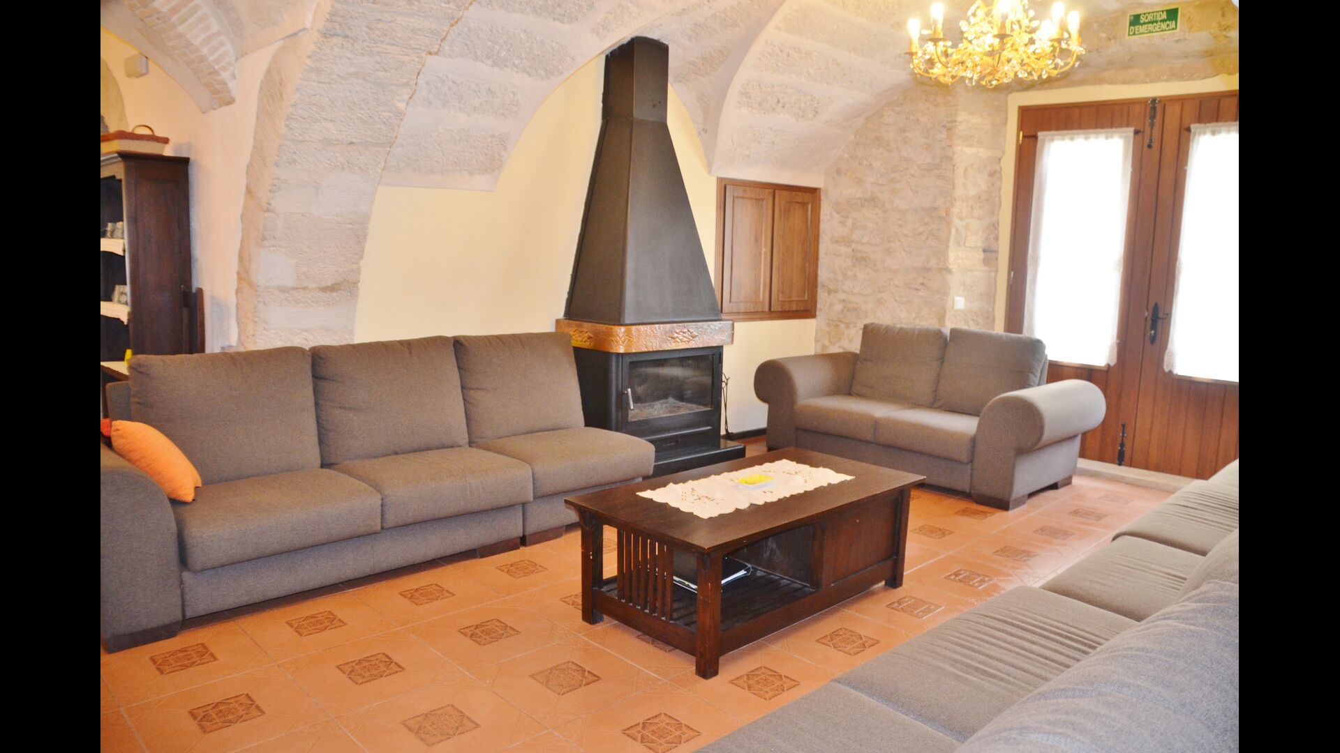 La maison est située à côté de la grande église de la ville et vous entrez dans la maison de vacances directement depuis la magnifique place de l'église. Lorsque vous entrez dans la Masia de las Flores, qui mesure 710 m2, vous rencontrez un beau salon avec de grands canapés confortables et une télévision à écran plat. L'intérieur de la maison est très beau: le plafond incurvé et les belles portes cintrées créent une atmosphère agréable et spacieuse. Ici, au rez-de-chaussée, il y a aussi une cuisine et une longue table à manger.