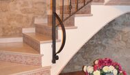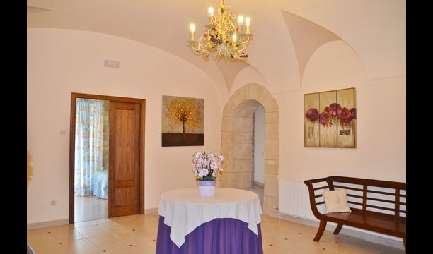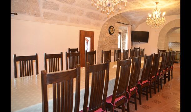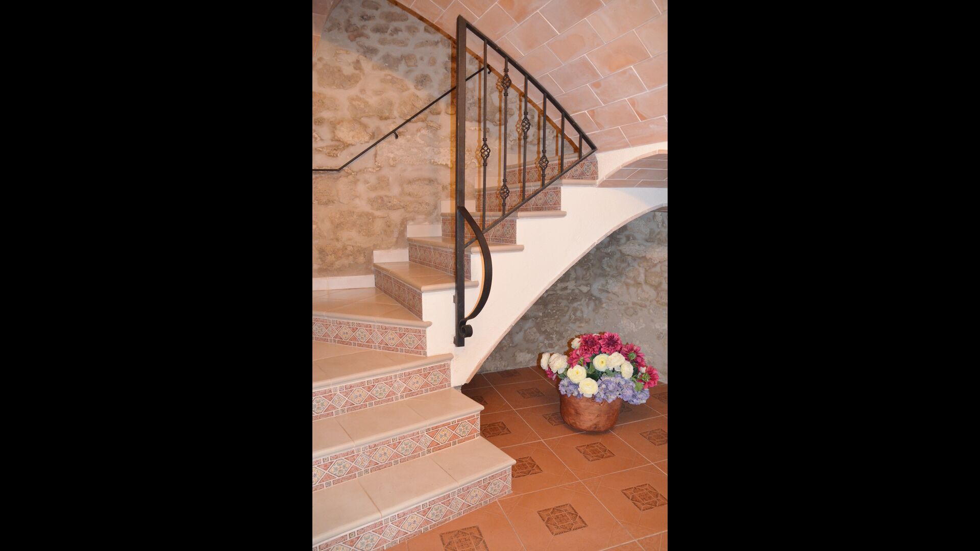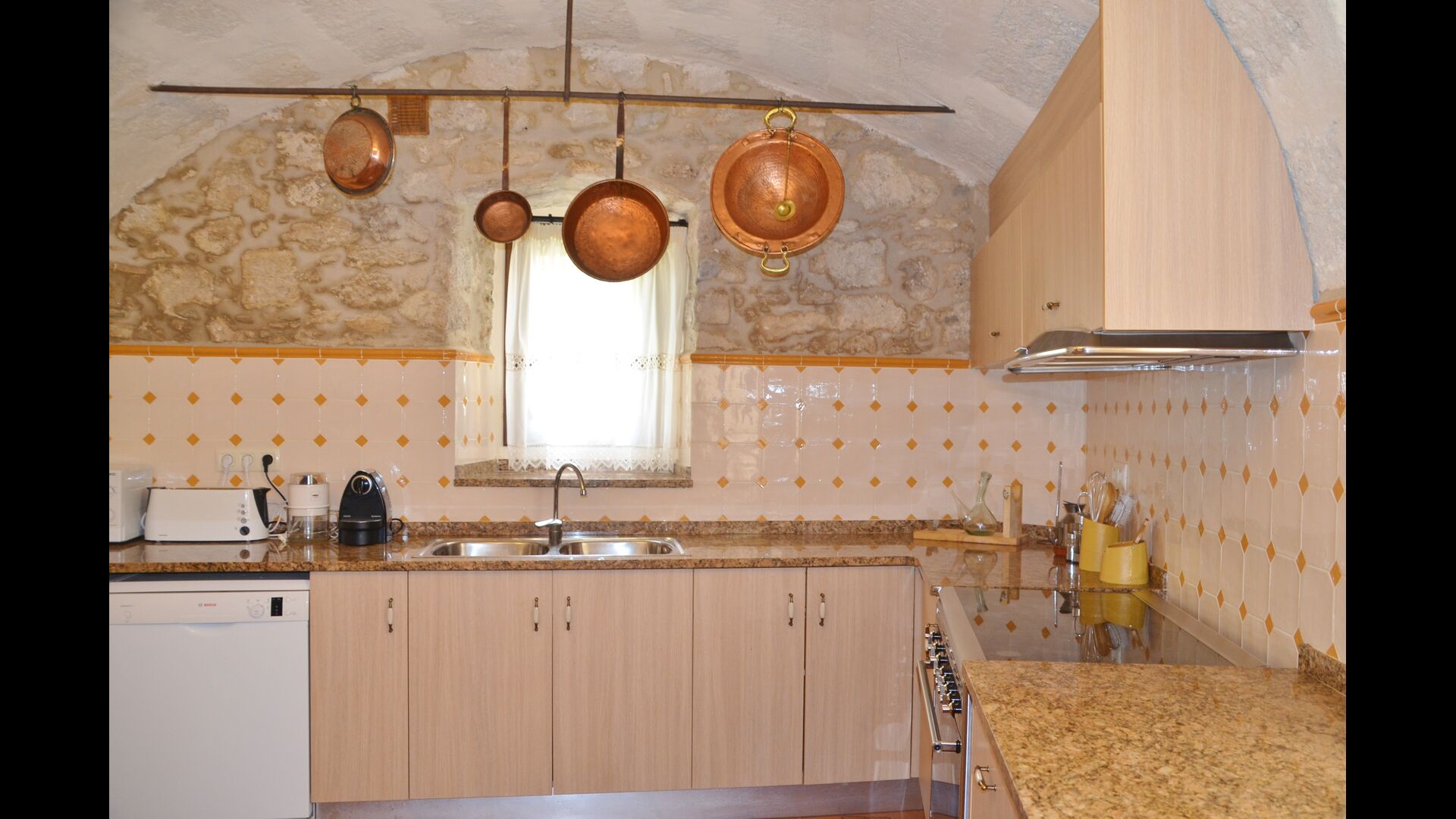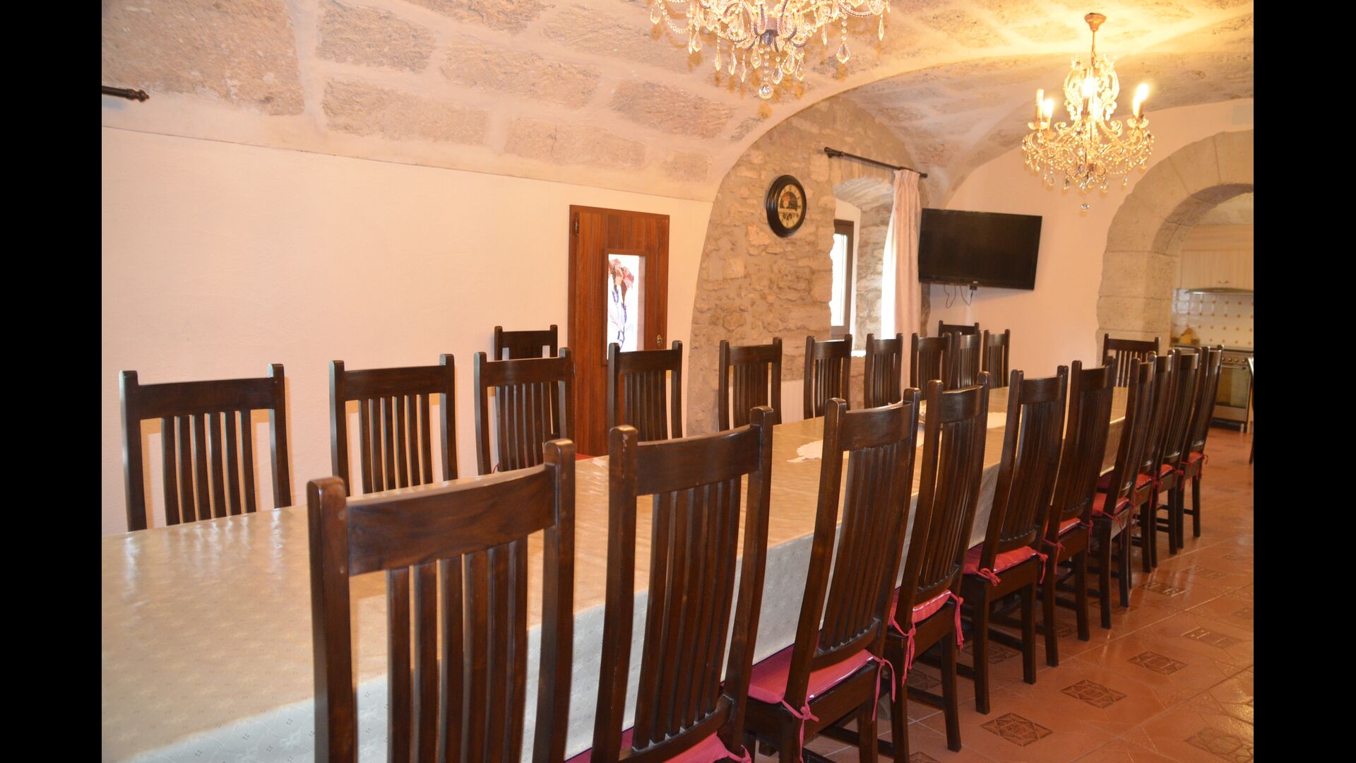 La maison est située à côté de la grande église de la ville et vous entrez dans la maison de vacances directement depuis la magnifique place de l'église. Lorsque vous entrez dans la Masia de las Flores, qui mesure 710 m2, vous rencontrez un beau salon avec de grands canapés confortables et une télévision à écran plat. L'intérieur de la maison est très beau: le plafond incurvé et les belles portes cintrées créent une atmosphère agréable et spacieuse. Ici, au rez-de-chaussée, il y a aussi une cuisine et une longue table à manger.