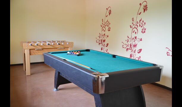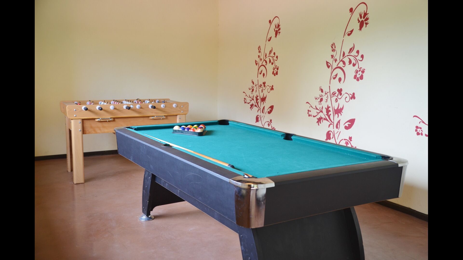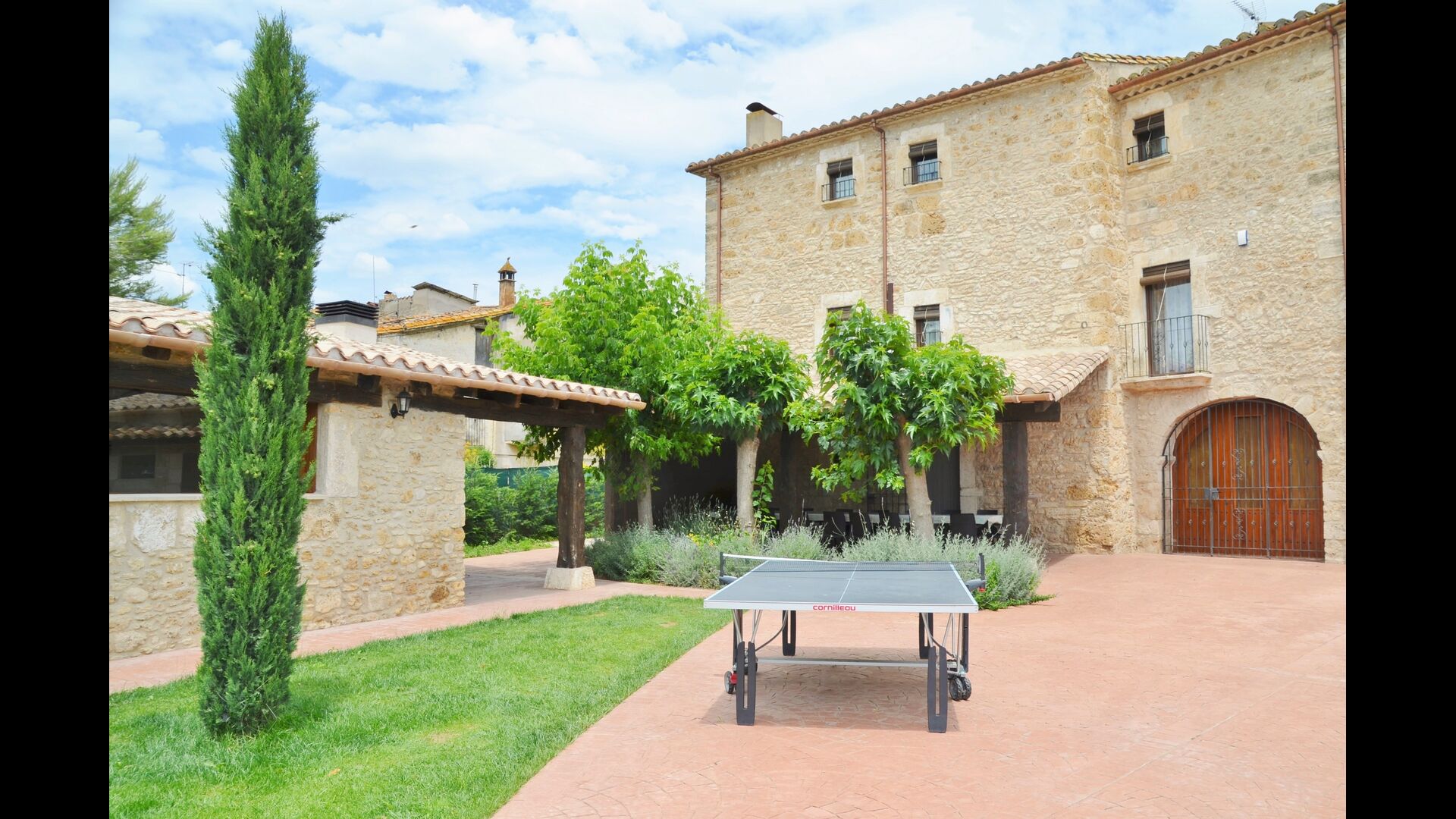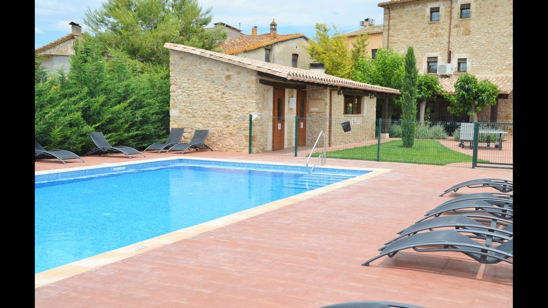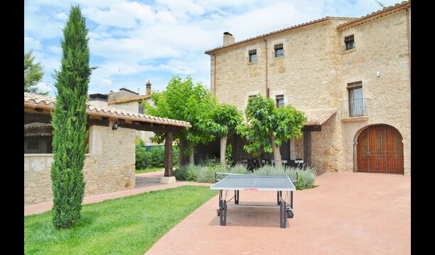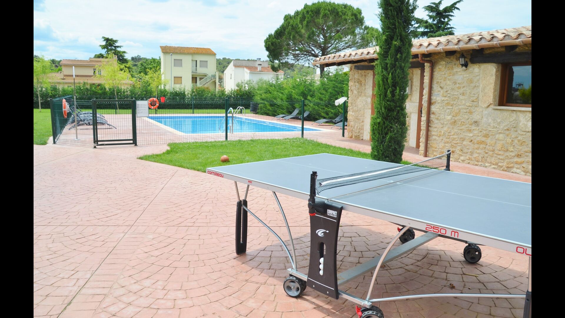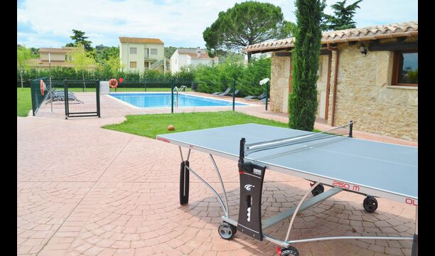 L'unique particularité de cette maison de vacances est la combinaison de la ville et du jardin avec piscine, qui offre de nombreuses activités: dans la piscine de 72 m2 et clôturée, vous pouvez nager, jouer ou simplement vous rafraîchir dans la chaleur et vous pourrez vous détendre sur les chaises longues à côté. Sur la grande pelouse, vous pouvez jouer à des jeux de ballon, il y a des balançoires pour les plus petits du groupe de vacances et vous pouvez jouer au tennis de table. De plus, au rez-de-chaussée, il y a une petite salle de jeux avec billard et baby-foot. Plus loin, dans la rue, il y a une boulangerie, des supermarchés et des bars. À Masia de las Flores, vous pouvez rester avec de jolies installations dans la cour et des magasins à proximité de la porte d’entrée. Ce n’est pas chose courante.