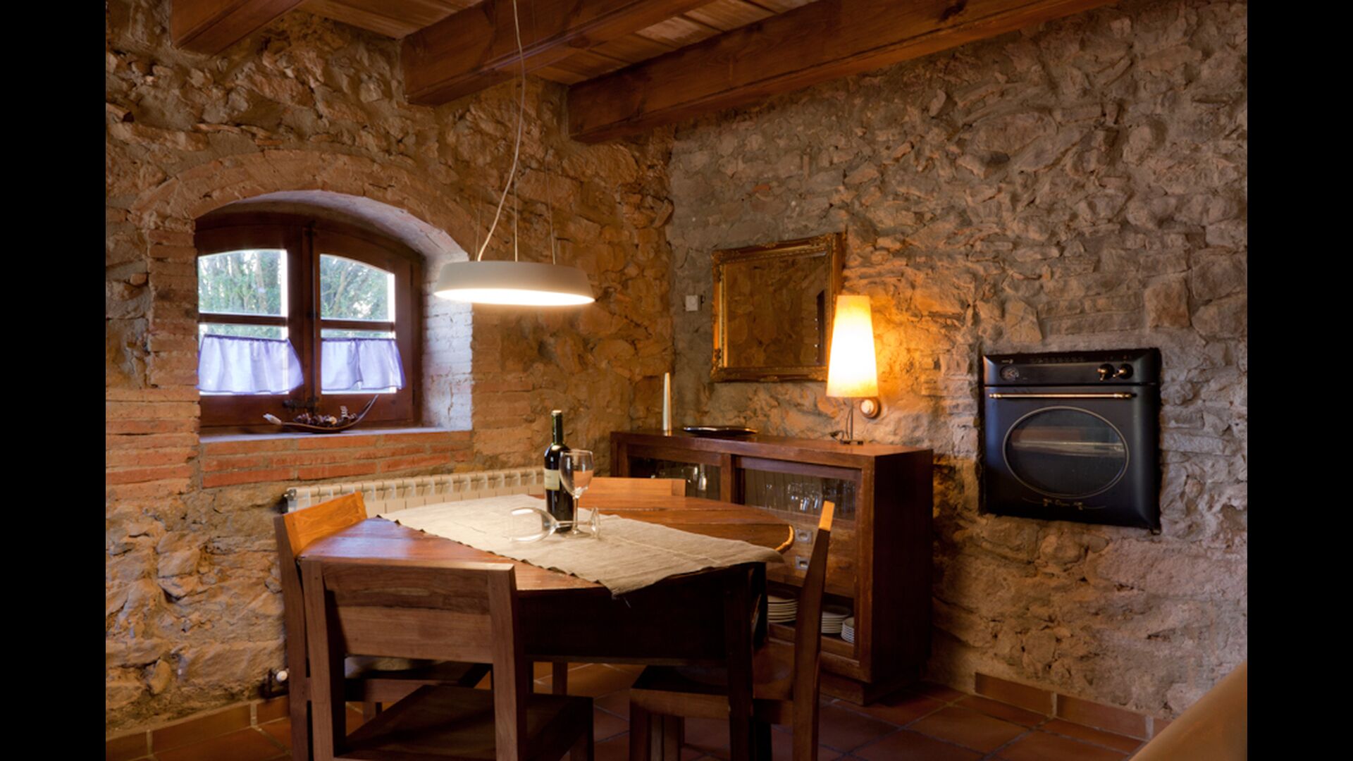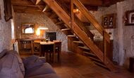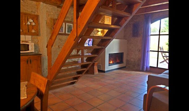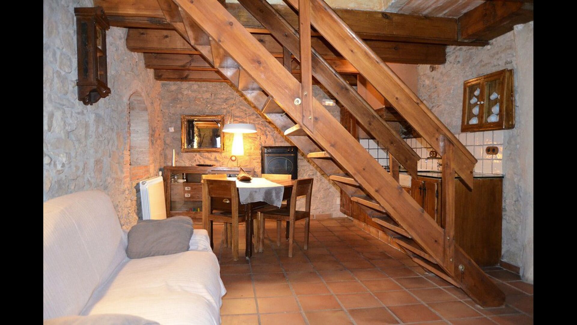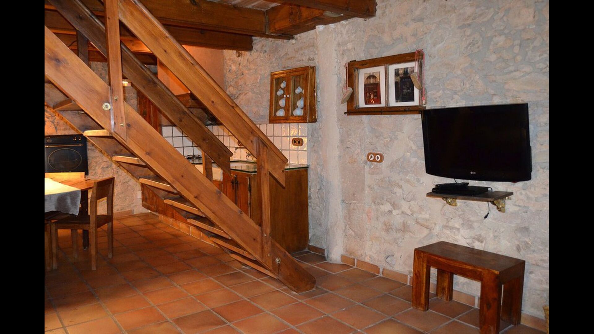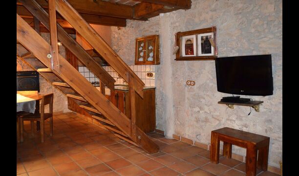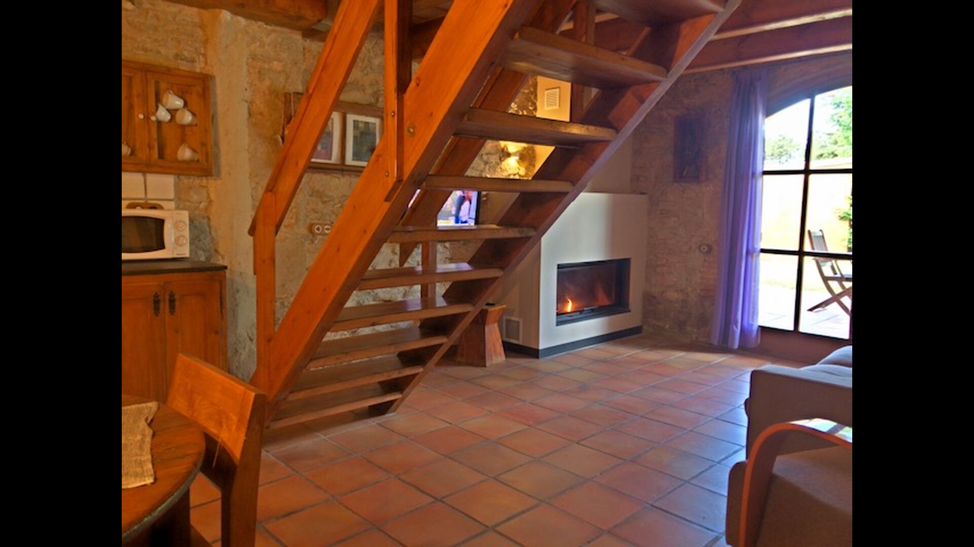 In this apartment, Piso Establo, there is room for 4 people. There are 2 double bedrooms with double beds, which is a perfect base for a family. All bedrooms have their own modern bathroom (en suite). This apartment is furthermore 90 m2. Generally is it that it is decorated very authentic with great respect for the original materials and structures. This, combined with a lot of rural details, creates a true Catalan atmosphere. The apartment has a nice kitchen with oven, stove, dishwasher and similar equipment. There is also a washing machine. In addition there is a small lounge area with a soft couch and a TV. In the same room is a staircase that goes up to the apartment's second floor, where two spacious and beautifully decorated bedrooms are located.