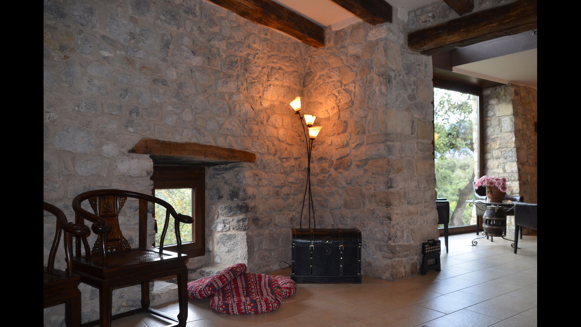 Ferieboligen er af meget høj standard og kvalitet med fx traditionelle catalanske stenvægge, der giver et meget smukt og autentisk look. Huset er som nævnt fem "enheder", der er blevet slået sammen, hvilket betyder, at man til hver en tid kan trække sig lidt tilbage til sin egne, private bolig og slappe af. Der er i alt 13 soveværelser, heraf 11 dobbeltværelser og 2 enkeltværelser. Med til værelserne hører selvfølgelig 11 moderne badeværelser.