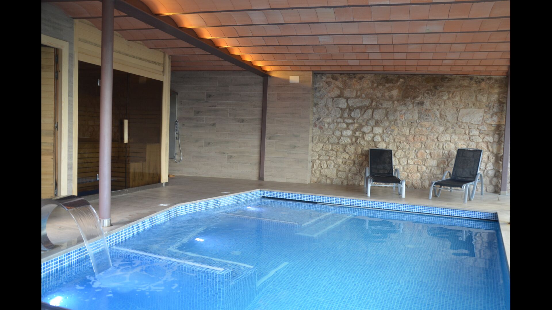 Hvis du er på udkig efter et luksuriøst feriehus, som ligger meget tæt på en lille, autentisk catalansk by, men som stadig er omgivet af fantastisk natur, så er Vila Mas Vistador det perfekte sted for dig. Feriehuset er sammensat af fem skønne enheder, der sammensat kan huse 24 (+12) personer. Husets højdepunkt er de lækre faciliteter og udendørsområder, som bl.a. omfatter både en indendørs og udendørs pool, en sauna, en legeplads, paddle tennisbane og to fantastiske chill out områder med bænke og borde.