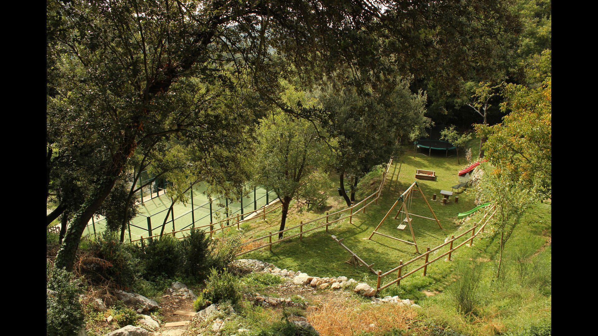 Vila Mas Vistador har også en fantastisk udsigt, grundet den høje placering. Ferieboligen har udsigt til den autentiske lille by, som ligger ved foden af grunden. Den hyggelige by har to restauranter, en bager, en lokal kirke, en stor legeplads og en fodboldbane, og kan nås til fods inden for 2-3 minutter. Haven er opdelt i fire forskellige niveauer, et niveau med tennisbanen, et med en legeplads, et med chill-out områder og sidst men ikke mindst det vidunderlige poolområde. Den grønne have er utrolig skøn, og vi forestiller os at man vil tilbringe mange timer her.