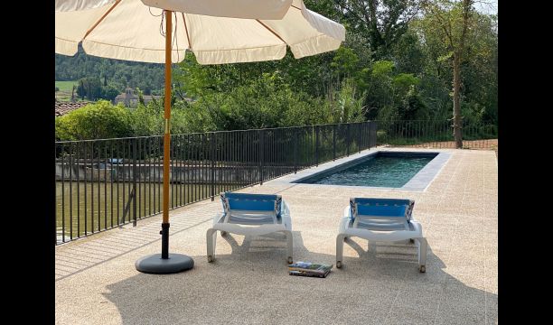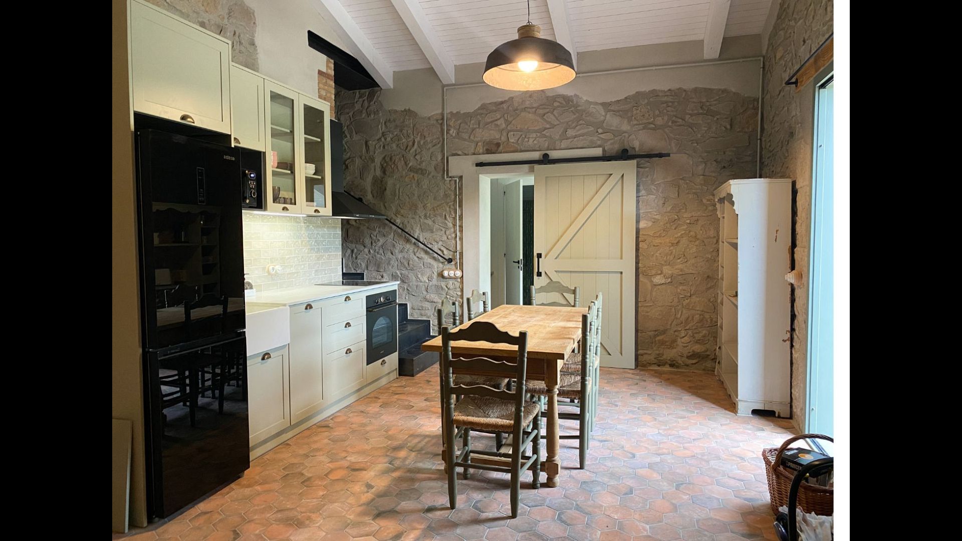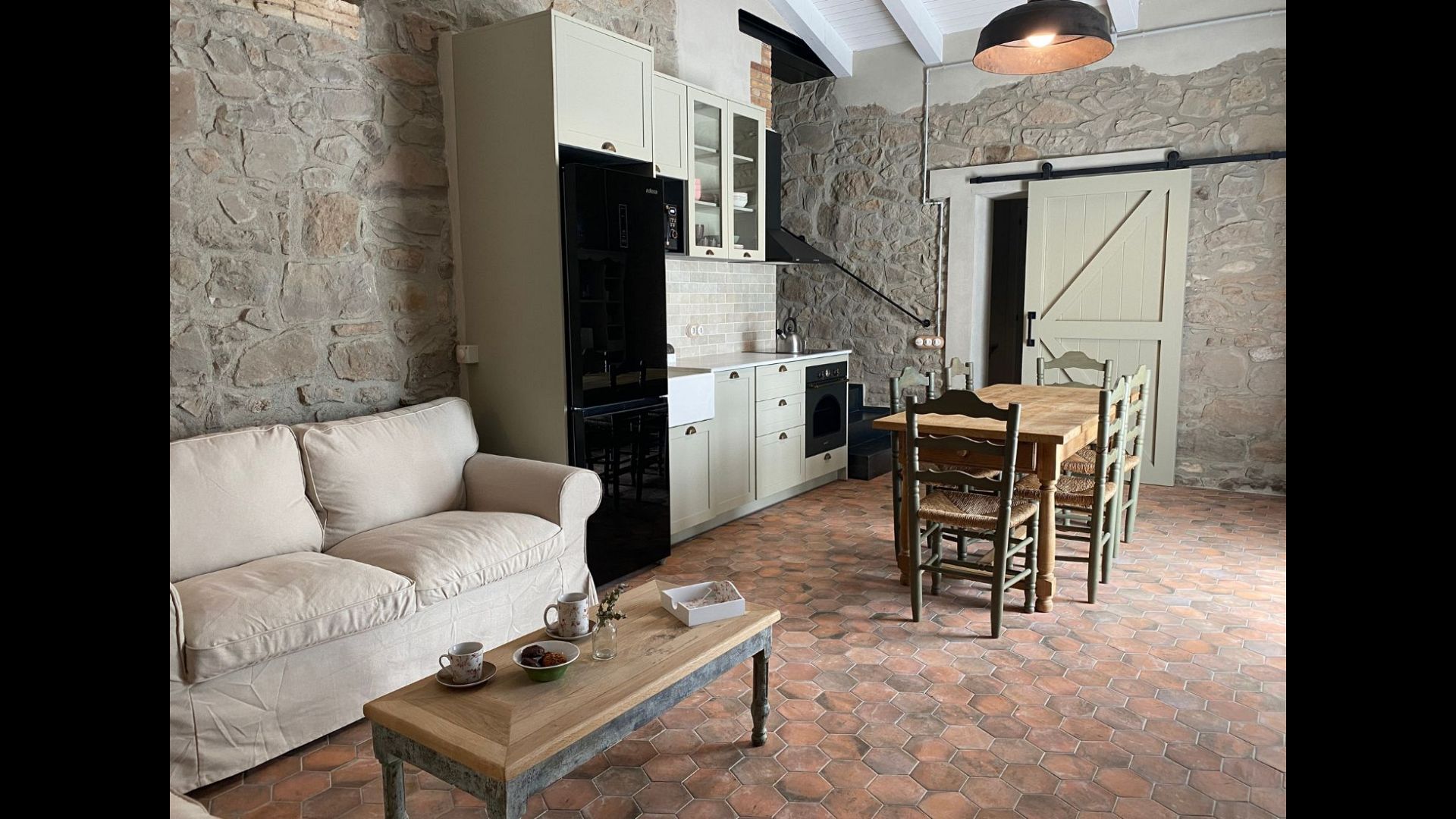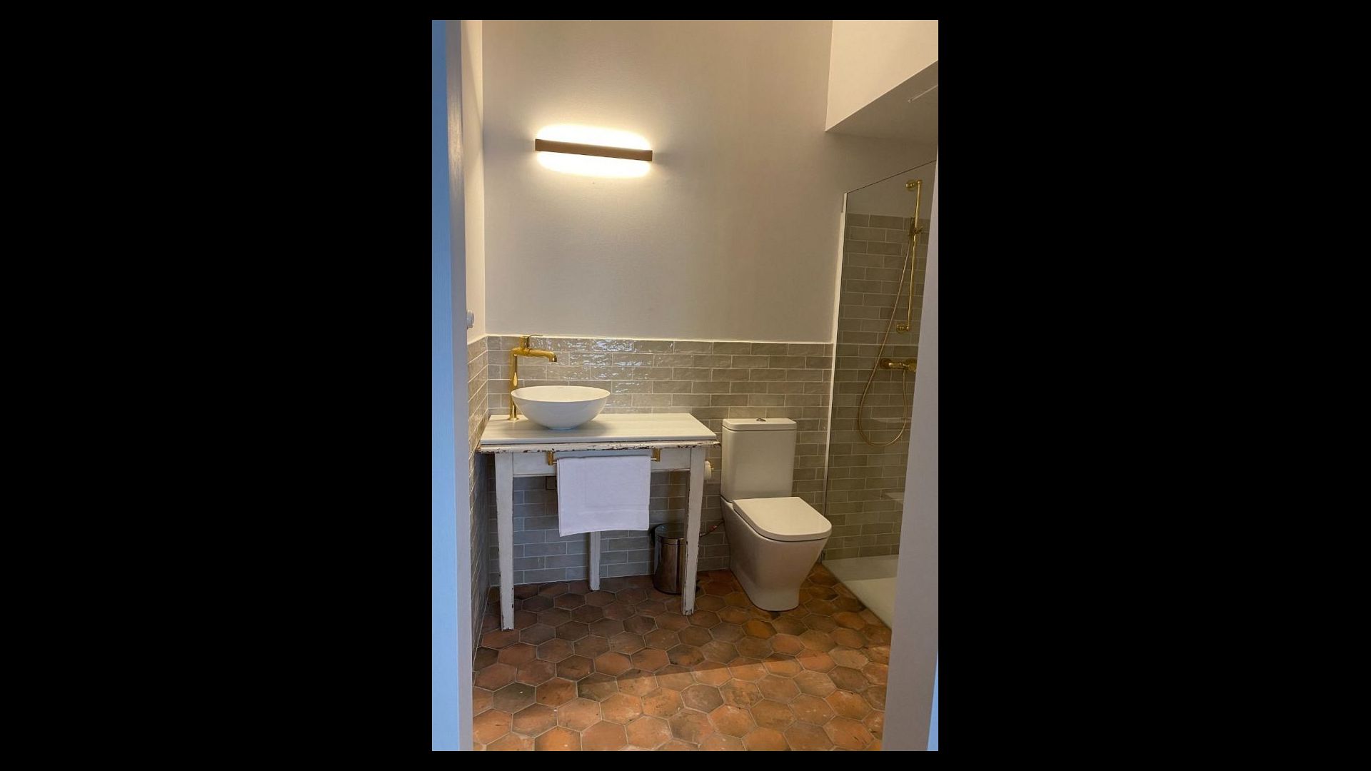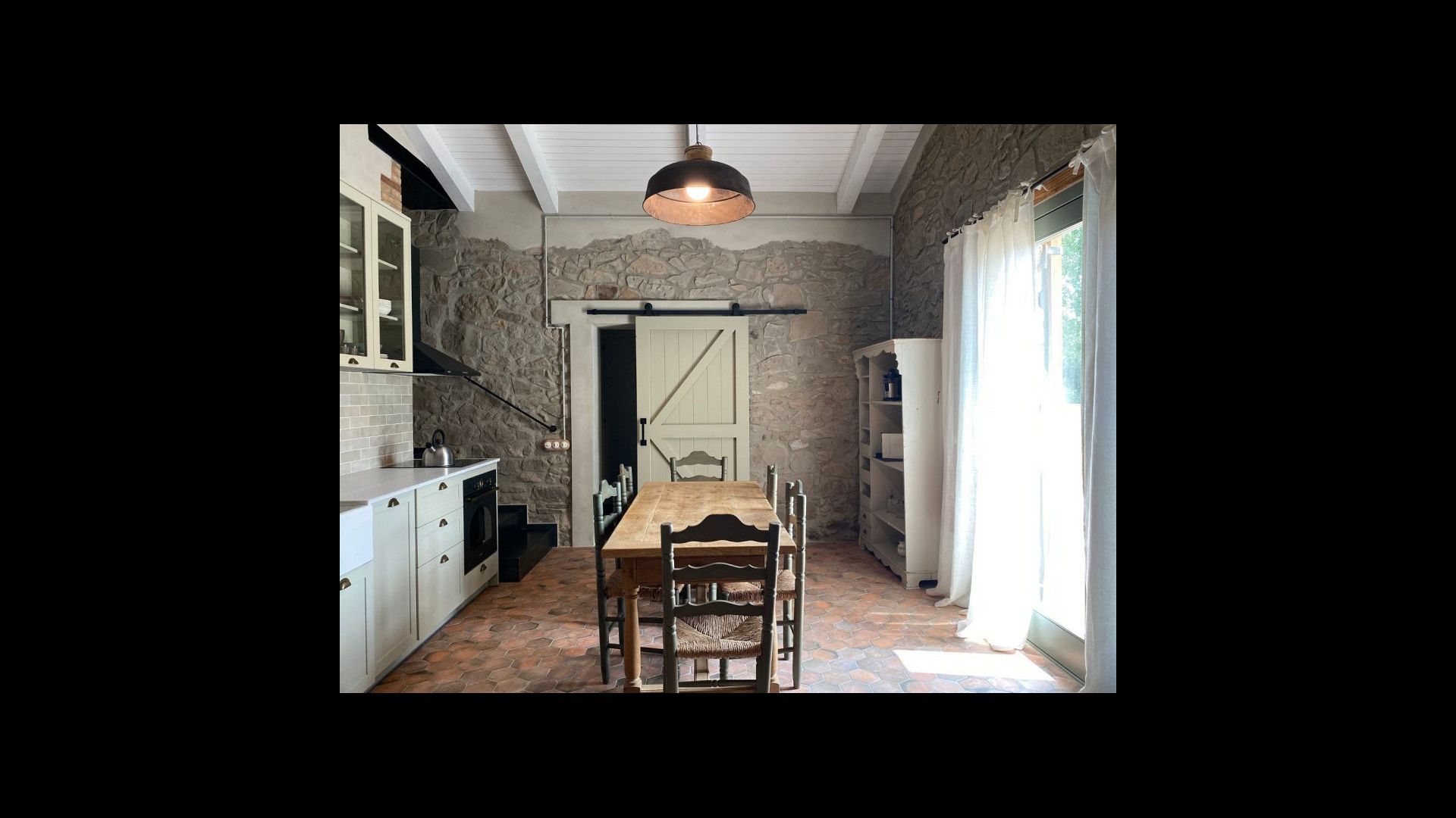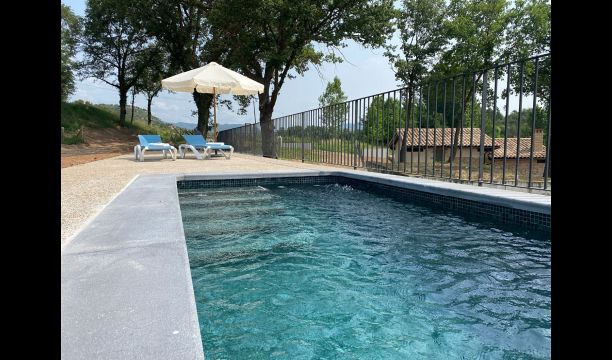 La jolie terrasse est directement reliée à la maison et vous offre à la fois des endroits ensoleillés pour profiter de l'été catalan et des endroits ombragés s'il fait trop chaud pendant la journée. Et puis vous pourrez bien sûr vous rafraîchir dans la piscine privée. La terrasse dispose également de chaises longues, d'une table de terrasse et d'un barbecue.