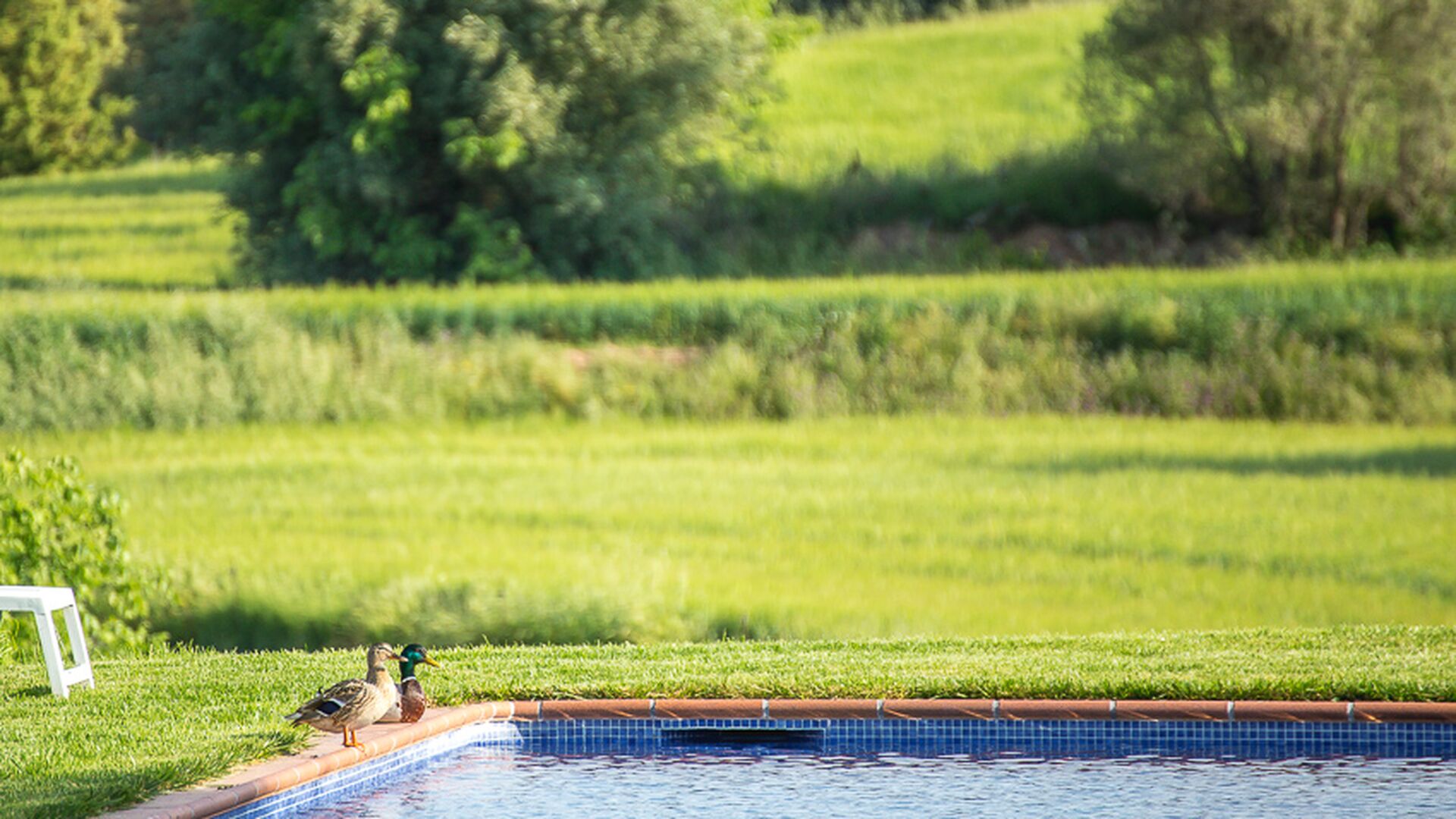 La maison de vacances dispose d'une cour fermée avec une terrasse couverte, où vous pourrez vous détendre avec un plat de viande au barbecue ou faire une partie de ping-pong, si vous ne vous relaxez pas dans l'espace piscine avec la grande piscine de 8 x 4 mètres. . La piscine est clôturée pour la protection des petits enfants. Balançoires et toboggan. À côté de la piscine, à l'ombre d'un chêne, il y a une table pour les repas au bord de la piscine.