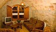 Sur la gauche de la maison, les sympathiques propriétaires retraités habitent et, si vous avez de la chance, ils viendront avec des légumes frais ou du lait, car ils ont gardé une vache après leur retraite.
