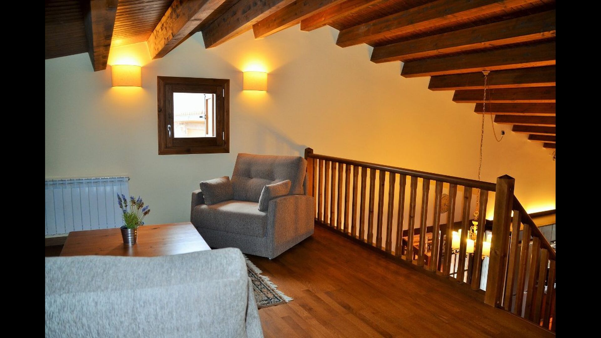 Au dernier étage se trouve un salon confortable, qui est situé à côté de la chambre triple, qui dispose de trois lits simples. La chambre est idéale pour les enfants et le petit salon sera excellent pour que les enfants profitent d’un coin confortable dans la soirée.