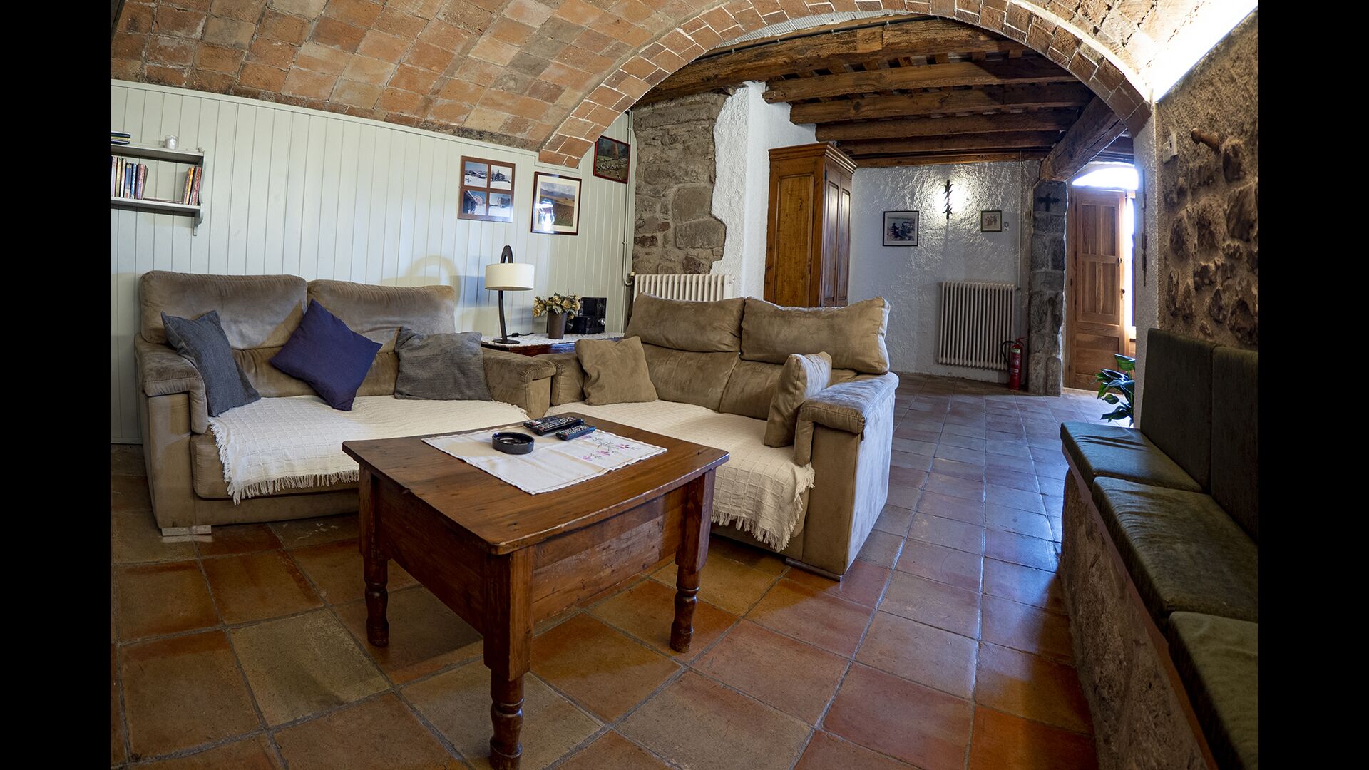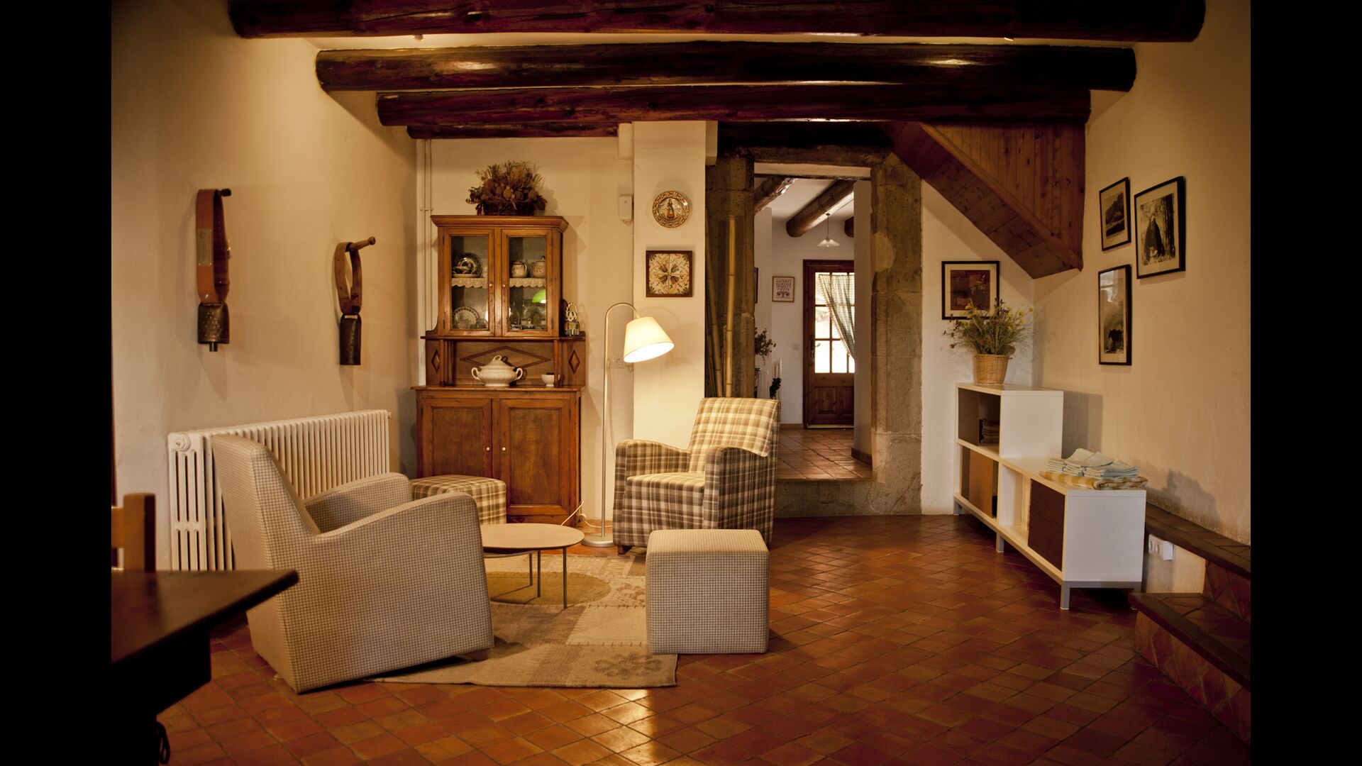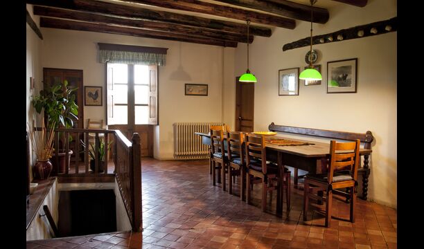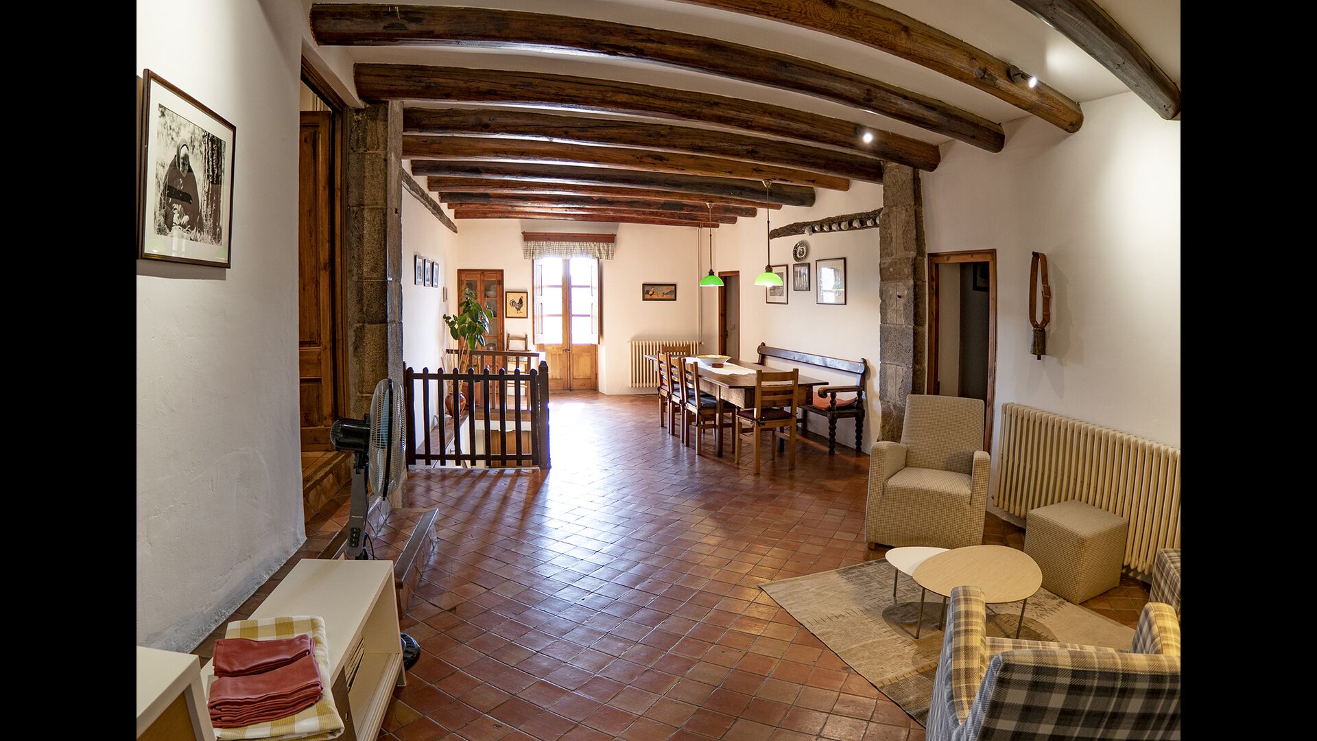 Casa Romira a un total de trois étages. À l'entrée principale, vous trouverez une petite table à manger et des canapés avec une télévision. Cette chambre est joliment décorée avec quelques pièces de vieux outils de ferme catalans. De là, vous trouverez un escalier qui monte au premier étage, qui a une taille de 250 m2. Ici vous pouvez trouver une salle à manger, la cuisine, une petite salle confortable avec cheminée, 5 chambres à coucher, 3 salles de bain et accès à la terrasse, où vous pouvez voir dans la ferme susmentionnée.