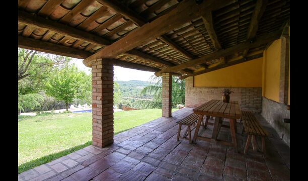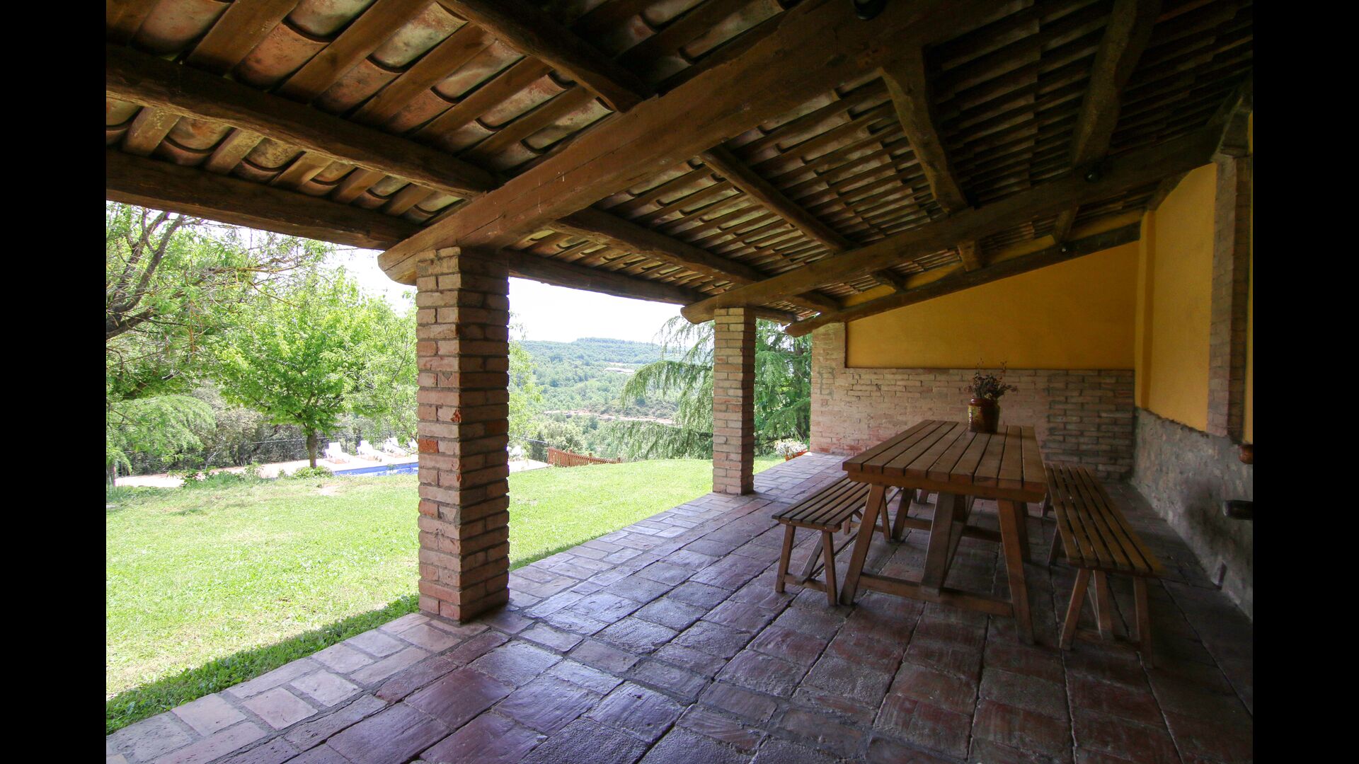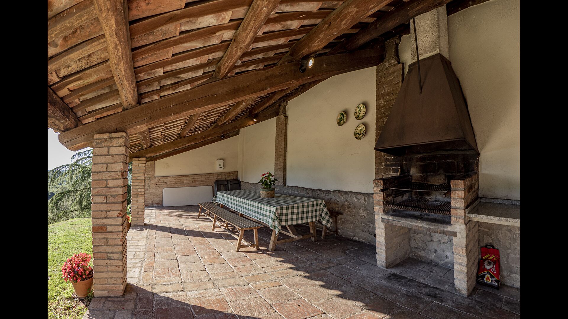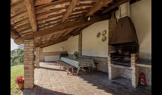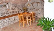 Il y a aussi une belle terrasse couverte avec une longue table à manger, où il y a des sièges pour tous les invités. Il y a aussi un barbecue. Ici, vous pourrez préparer vos propres repas maison et les savourer lors des chaudes soirées.