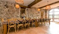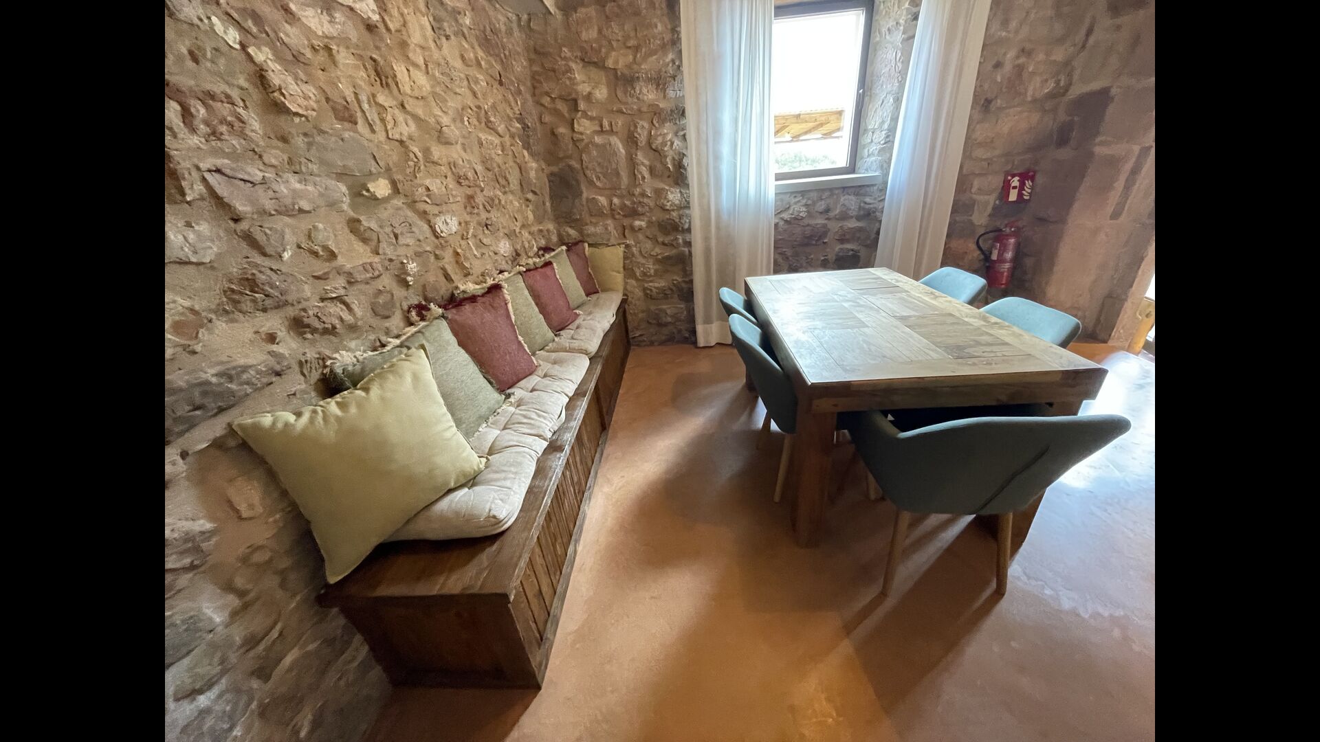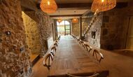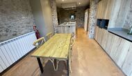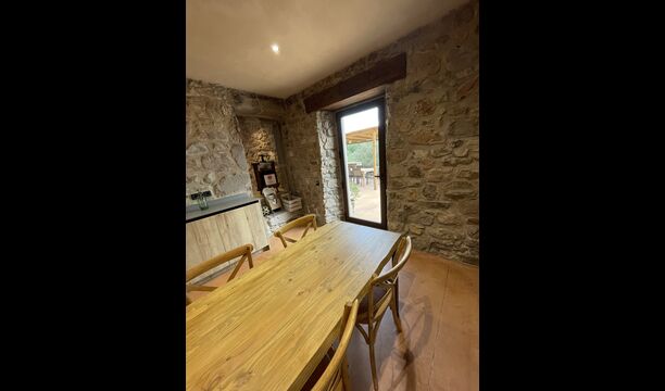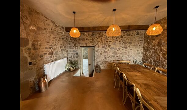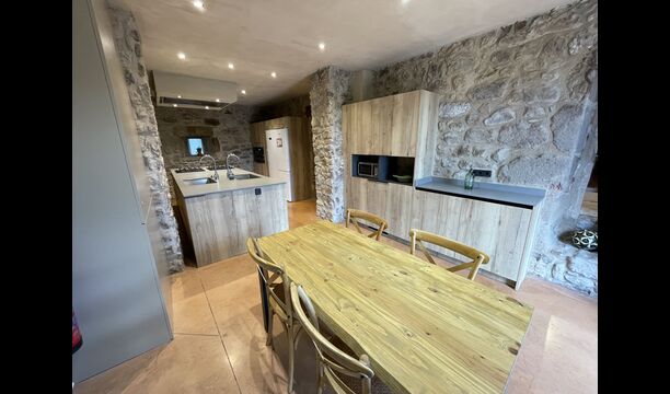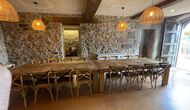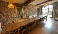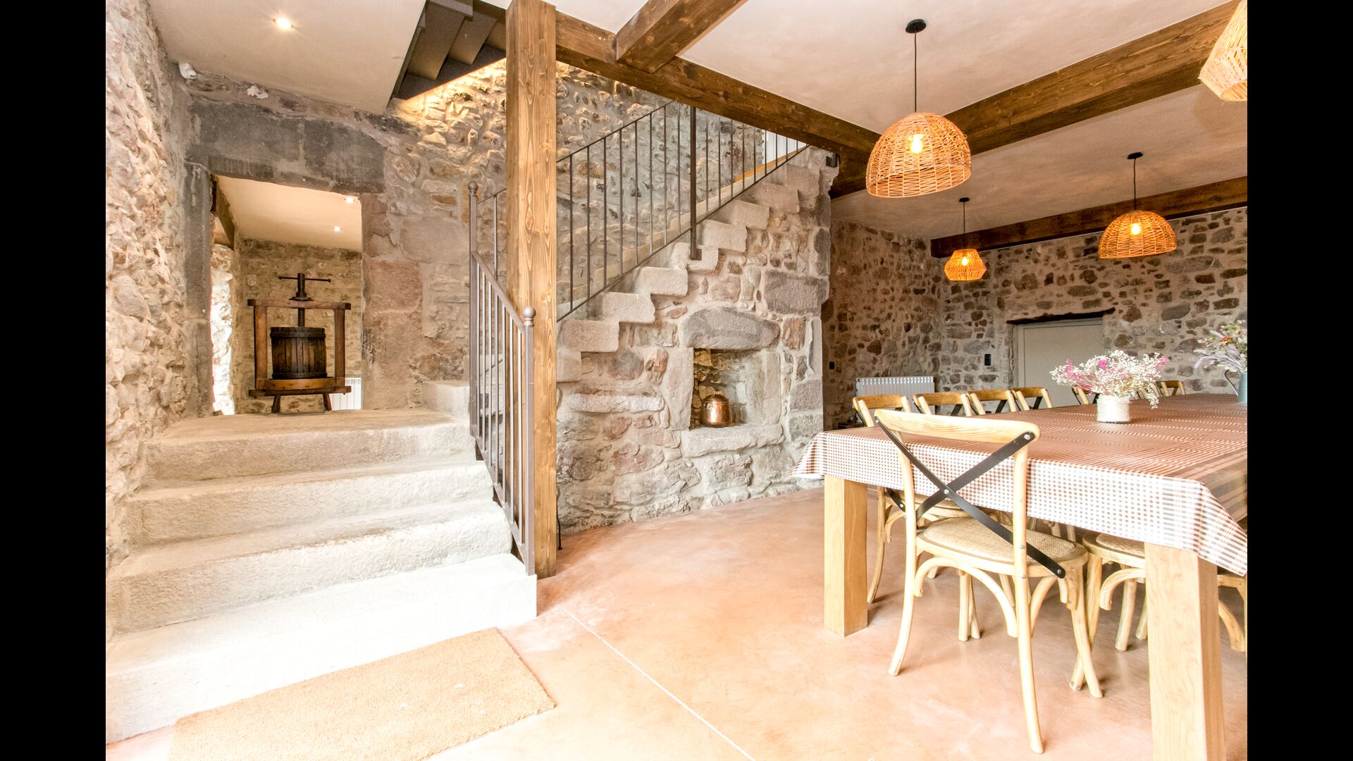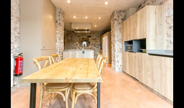 De la terrasse extérieure, dotée d'un barbecue, d'un espace pour manger et de transats pour se détendre, on entre directement dans la grande salle à manger du Mas. Celui-ci agit comme le cœur de la maison, reliant les deux petits salons du rez-de-chaussée à la grande cuisine. La cuisine est entièrement équipée avec 2 plaques de cuisson au gaz, 2 lave-vaisselle, 2 réfrigérateurs avec congélateur, four, micro-onde et cafetière, ainsi qu'une petite table de petit-déjeuner.