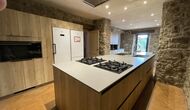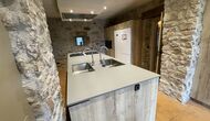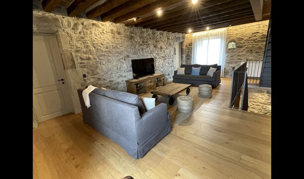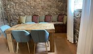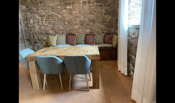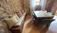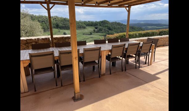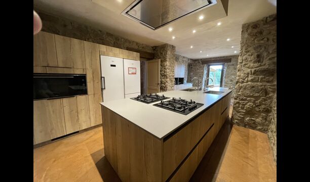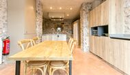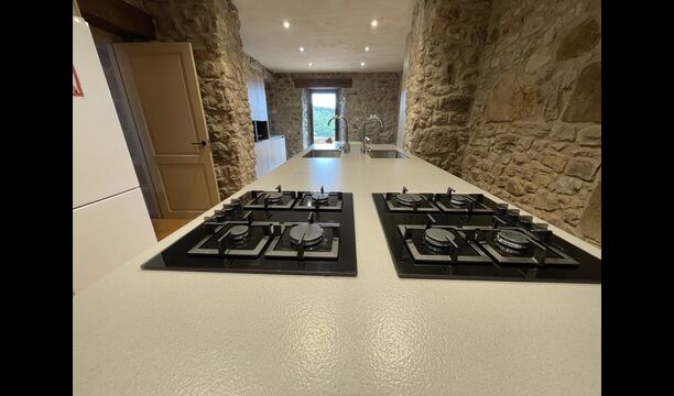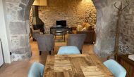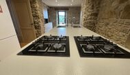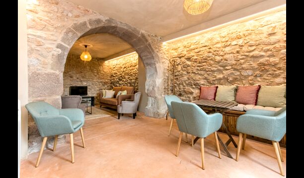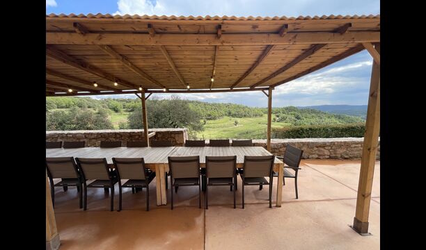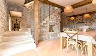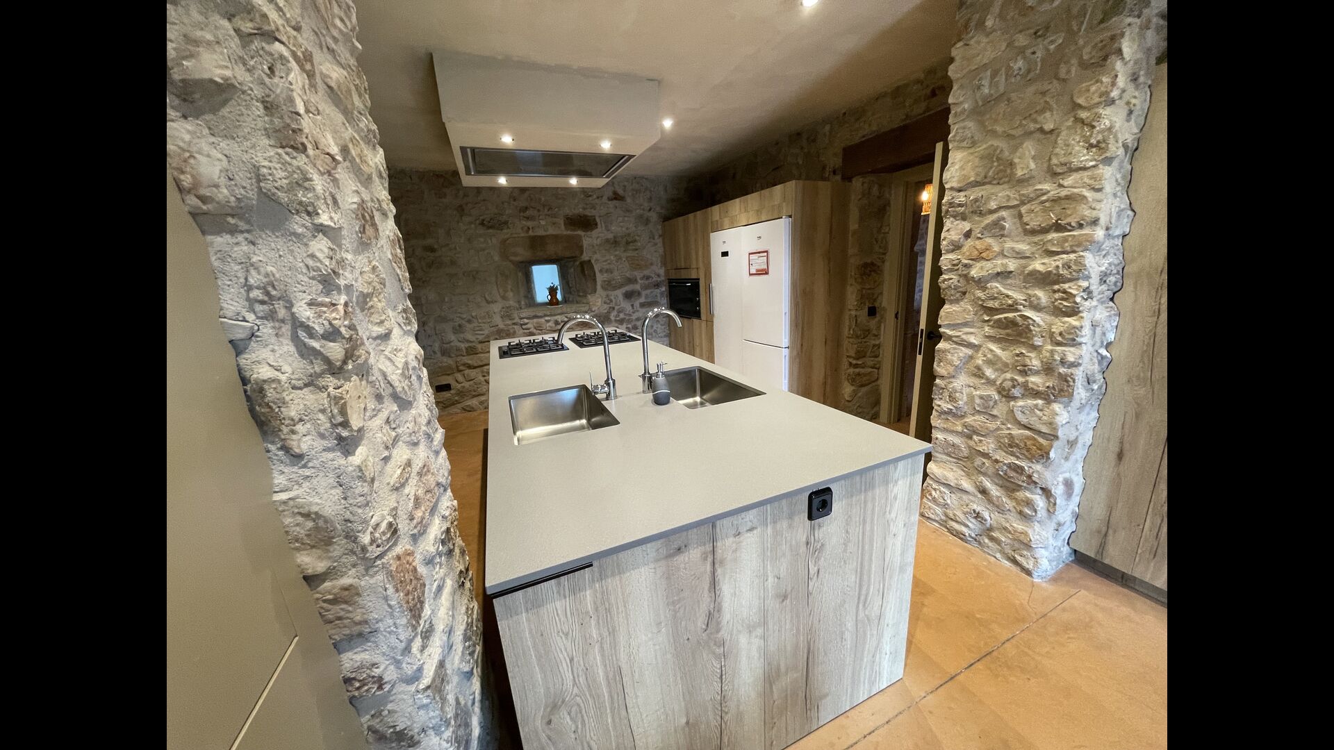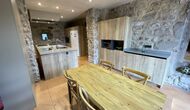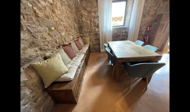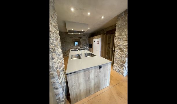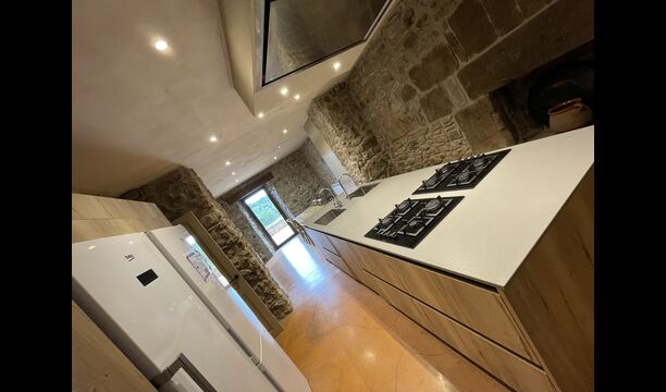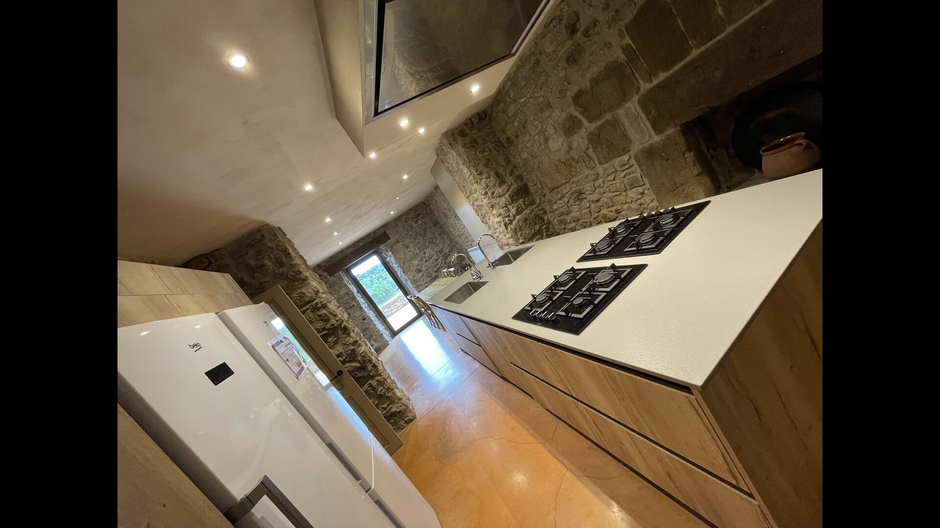 De la terrasse extérieure, dotée d'un barbecue, d'un espace pour manger et de transats pour se détendre, on entre directement dans la grande salle à manger du Mas. Celui-ci agit comme le cœur de la maison, reliant les deux petits salons du rez-de-chaussée à la grande cuisine. La cuisine est entièrement équipée avec 2 plaques de cuisson au gaz, 2 lave-vaisselle, 2 réfrigérateurs avec congélateur, four, micro-onde et cafetière, ainsi qu'une petite table de petit-déjeuner.