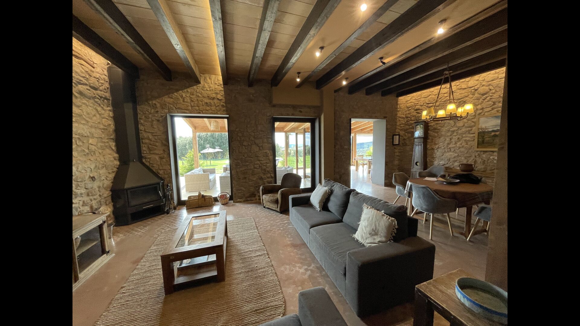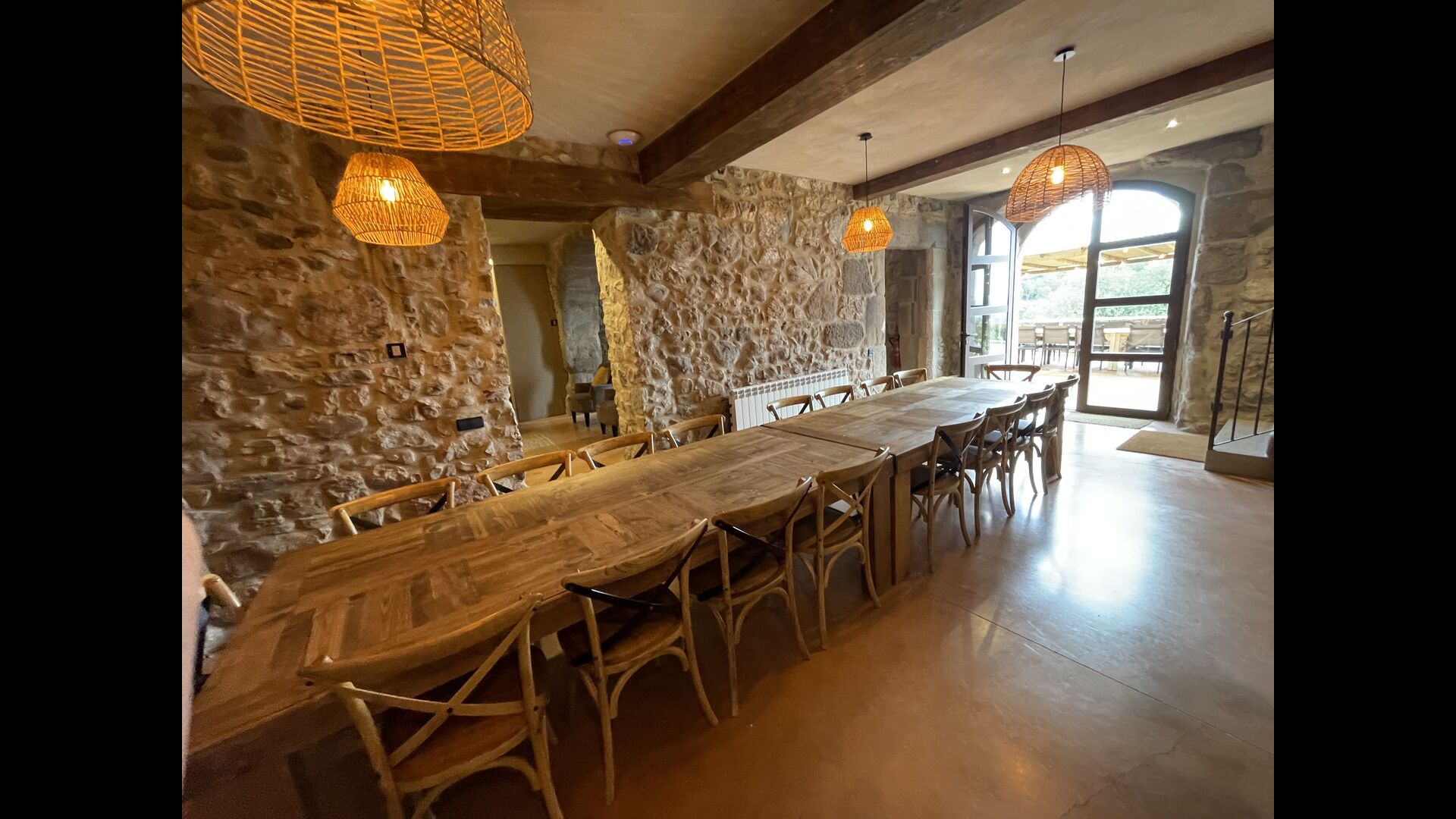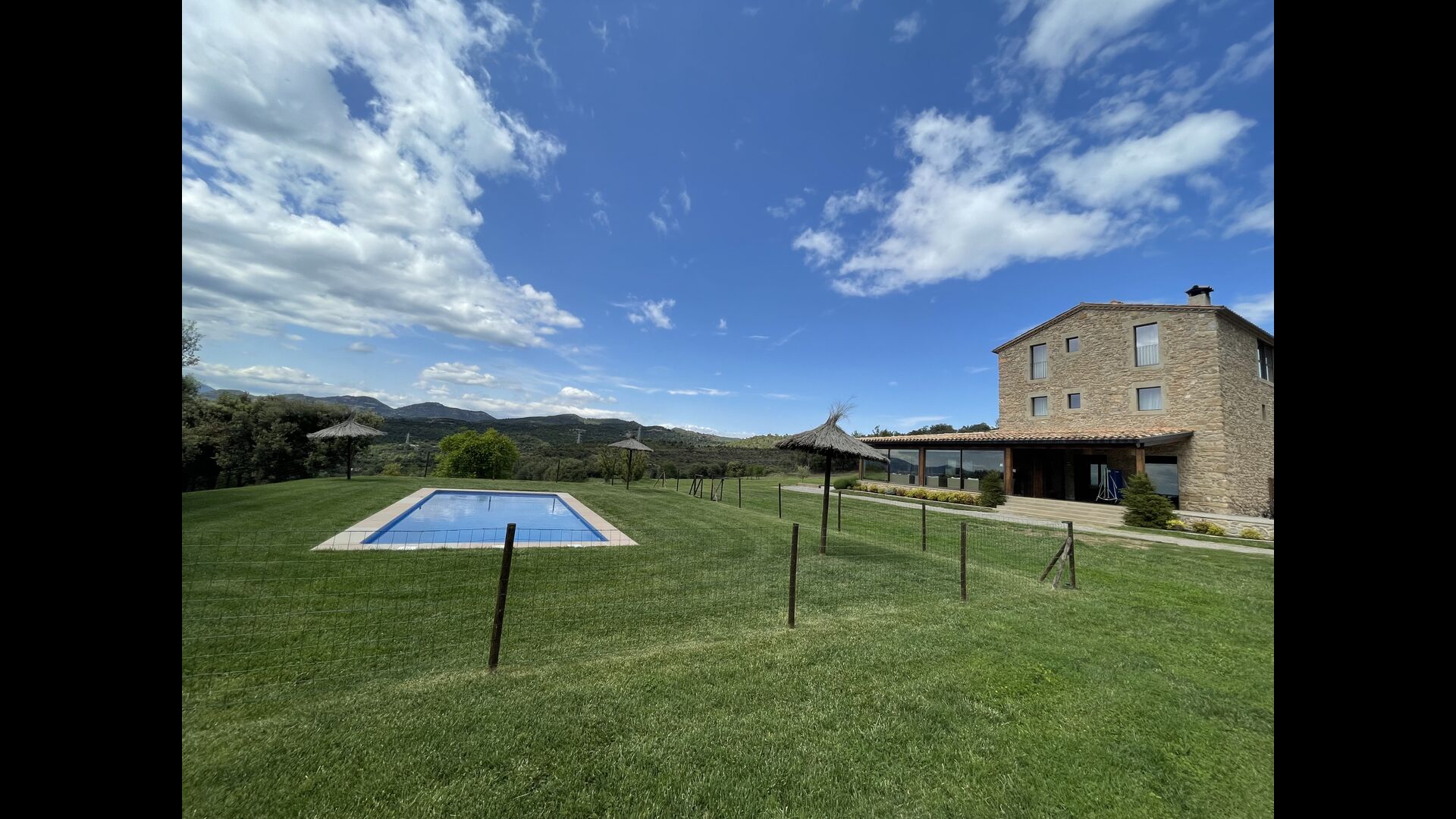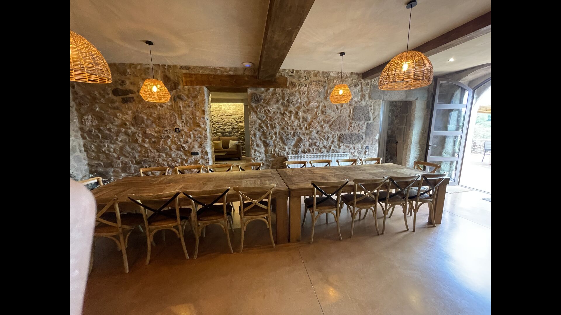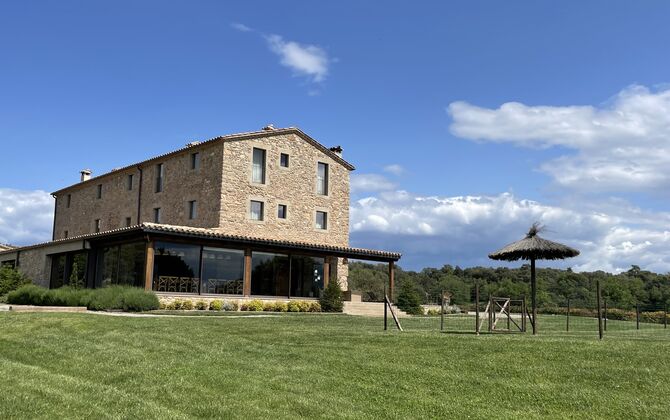 Une maison spectaculaire conçue pour les grands groupes qui souhaitent profiter de vacances luxueuses, pleines de détails de la construction originale, encadrées de meubles en bois et de tissus chaleureux. Il a de superbes vues sur les montagnes des Pré-pyrénées. Il est situé à un peu plus d'1h de Barcelone et de Gérone. Sur le terrain de 185 hectares, 2 maisons voisines sont louées, totalement séparées et indépendantes. Chacun avec sa propre terrasse et son terrain attenant. La piscine, le terrain de foot et le terrain de volley sont partagés par les 3 maisons.