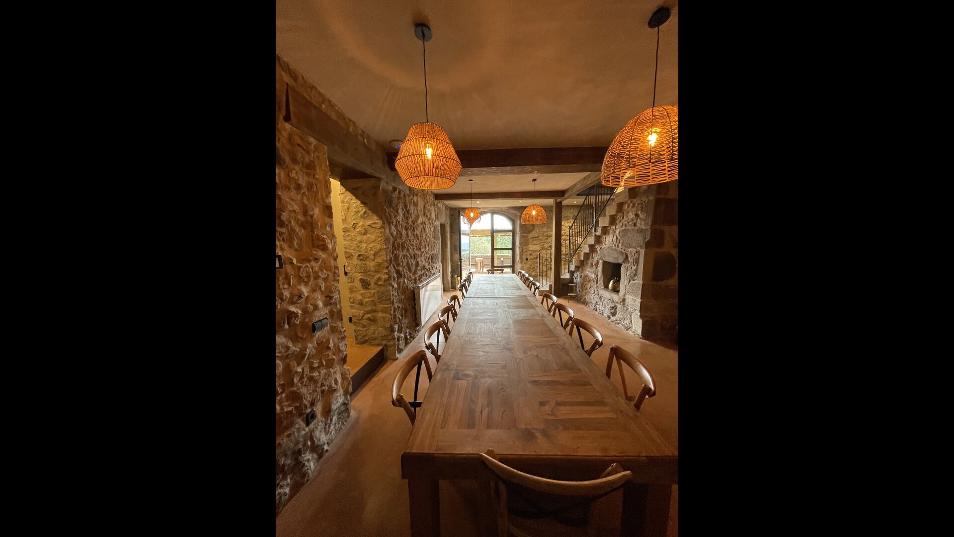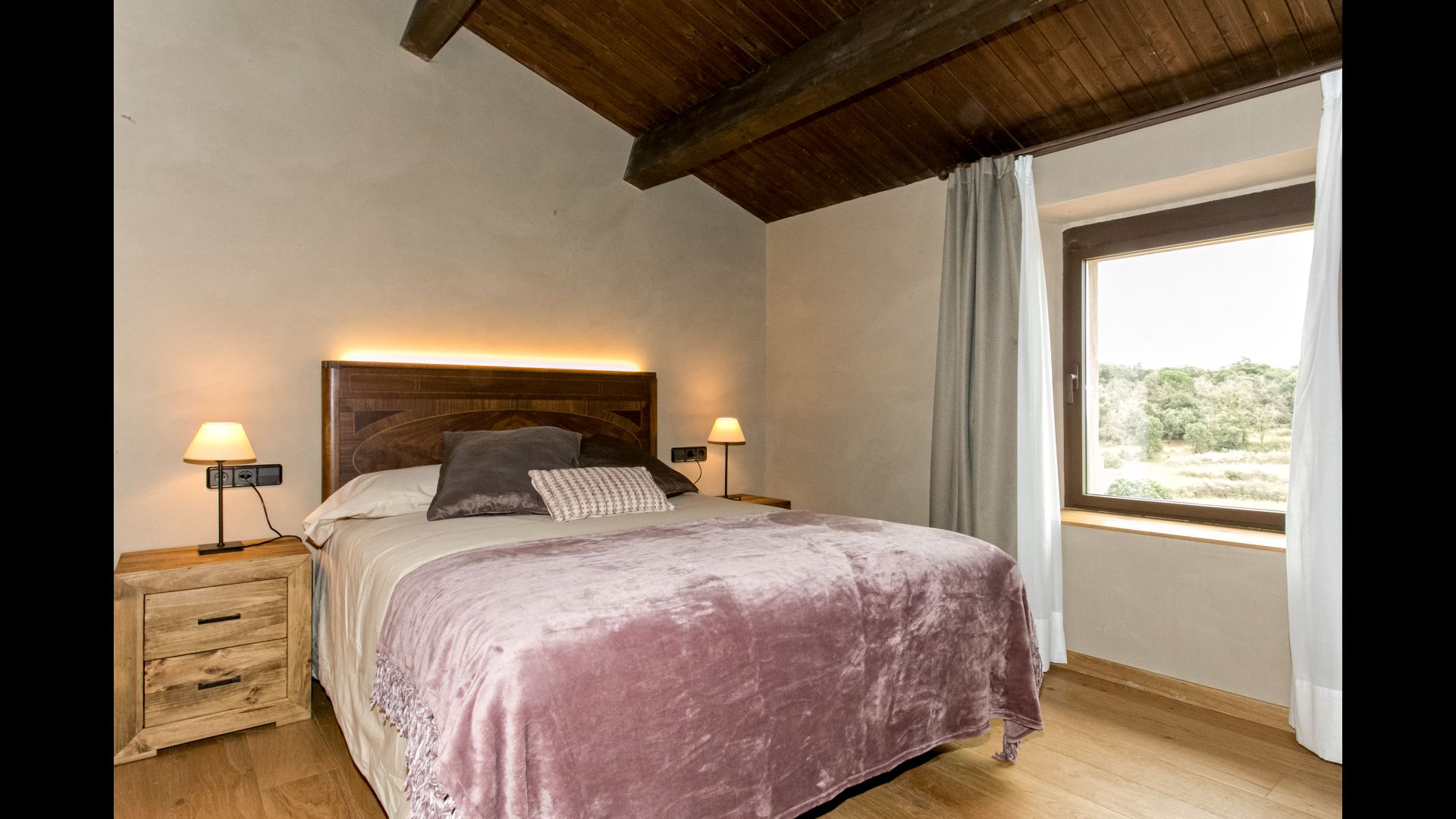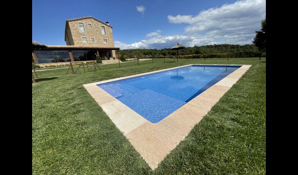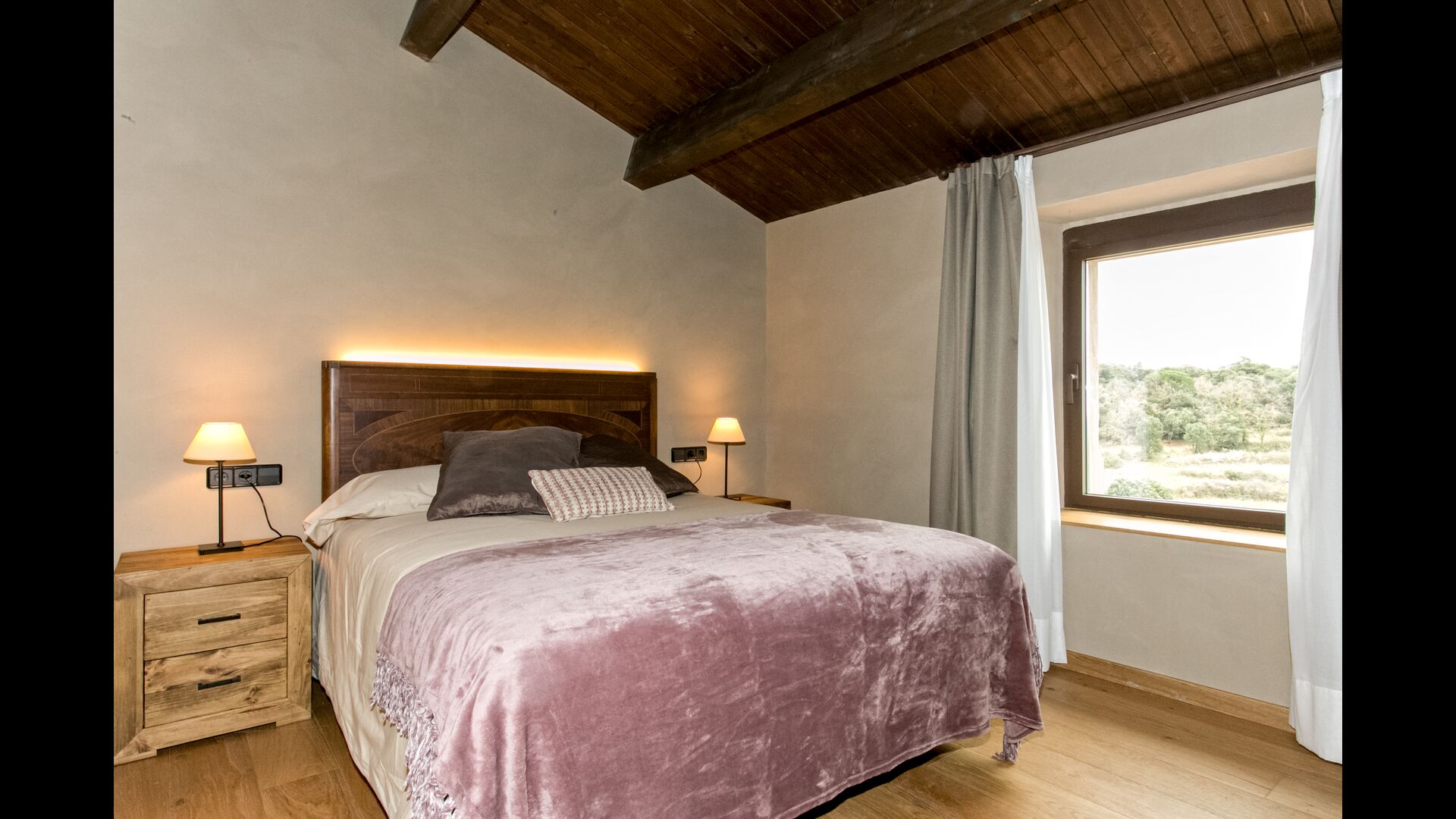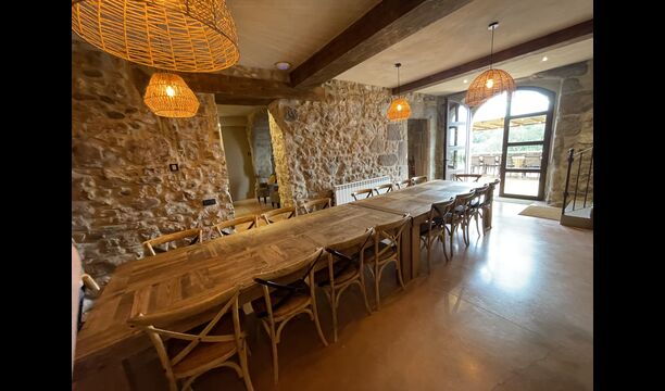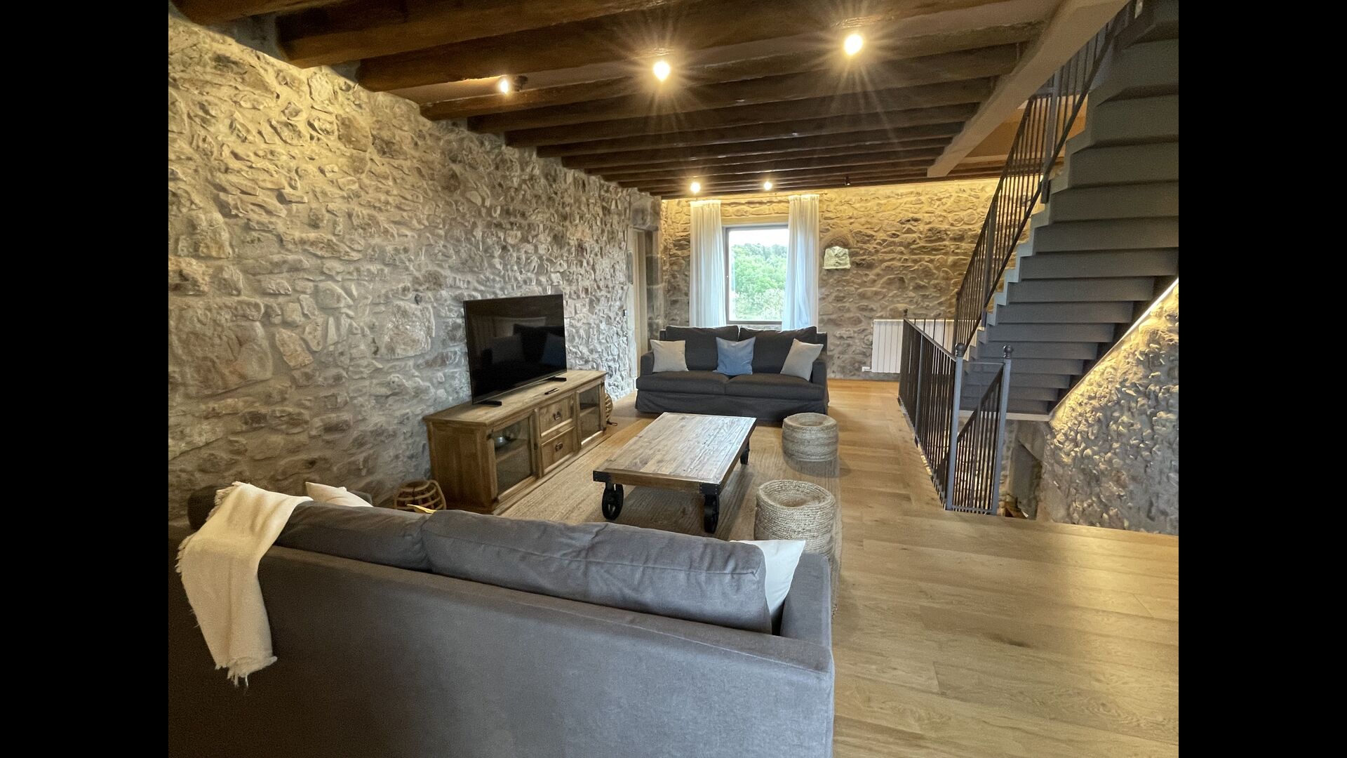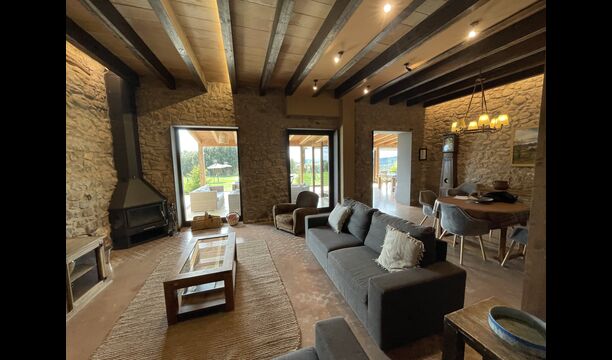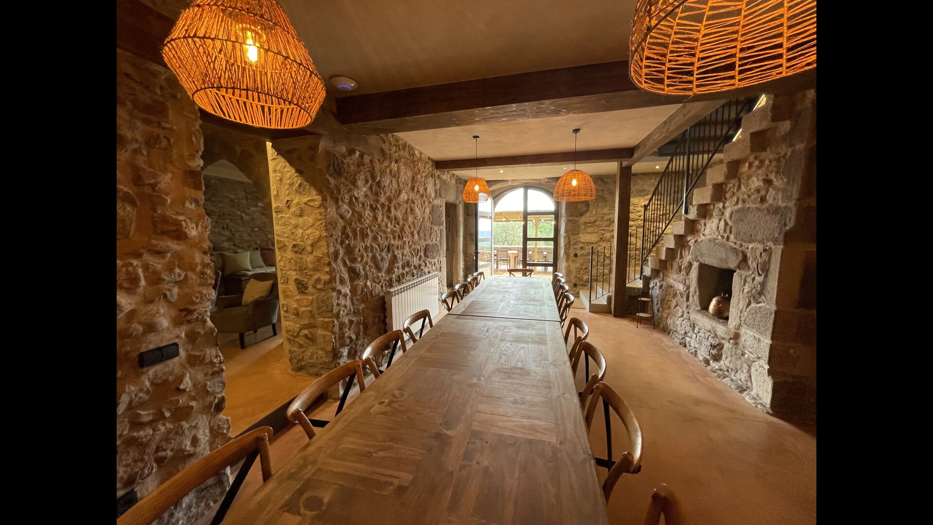 Une maison spectaculaire conçue pour les grands groupes qui souhaitent profiter de vacances luxueuses, pleines de détails de la construction originale, encadrées de meubles en bois et de tissus chaleureux. Il a de superbes vues sur les montagnes des Pré-pyrénées. Il est situé à un peu plus d'1h de Barcelone et de Gérone. Sur le terrain de 185 hectares, 2 maisons voisines sont louées, totalement séparées et indépendantes. Chacun avec sa propre terrasse et son terrain attenant. La piscine, le terrain de foot et le terrain de volley sont partagés par les 3 maisons.