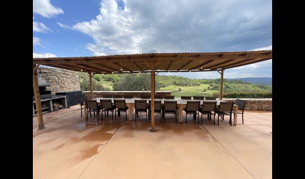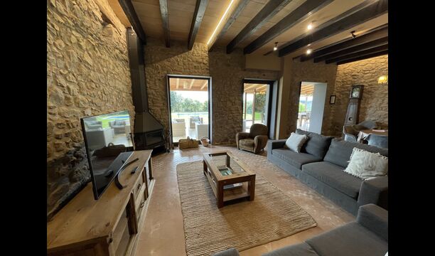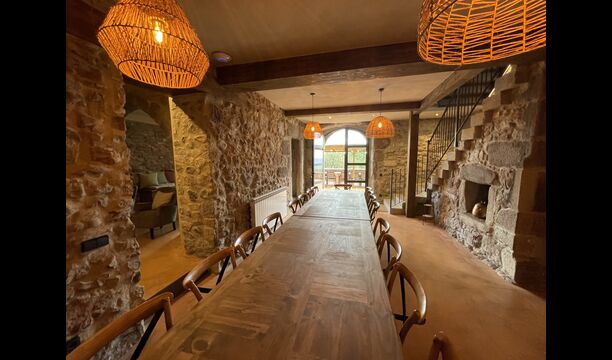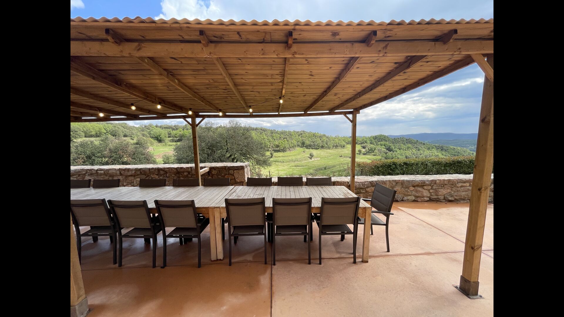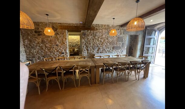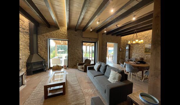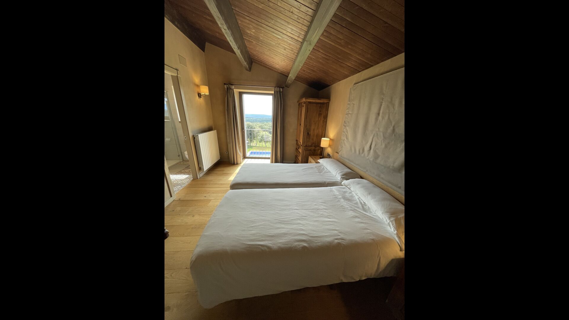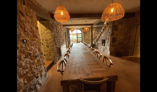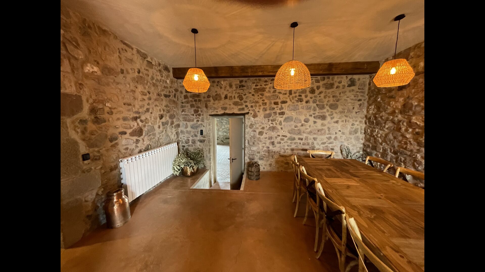 Une maison spectaculaire conçue pour les grands groupes qui souhaitent profiter de vacances luxueuses, pleines de détails de la construction originale, encadrées de meubles en bois et de tissus chaleureux. Il a de superbes vues sur les montagnes des Pré-pyrénées. Il est situé à un peu plus d'1h de Barcelone et de Gérone. Sur le terrain de 185 hectares, 2 maisons voisines sont louées, totalement séparées et indépendantes. Chacun avec sa propre terrasse et son terrain attenant. La piscine, le terrain de foot et le terrain de volley sont partagés par les 3 maisons.