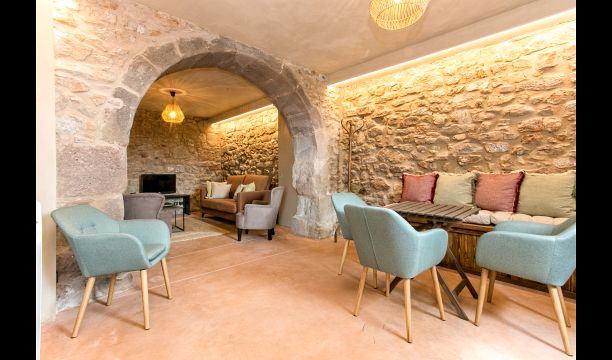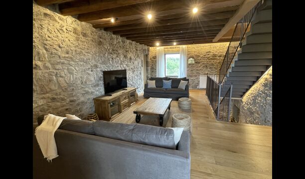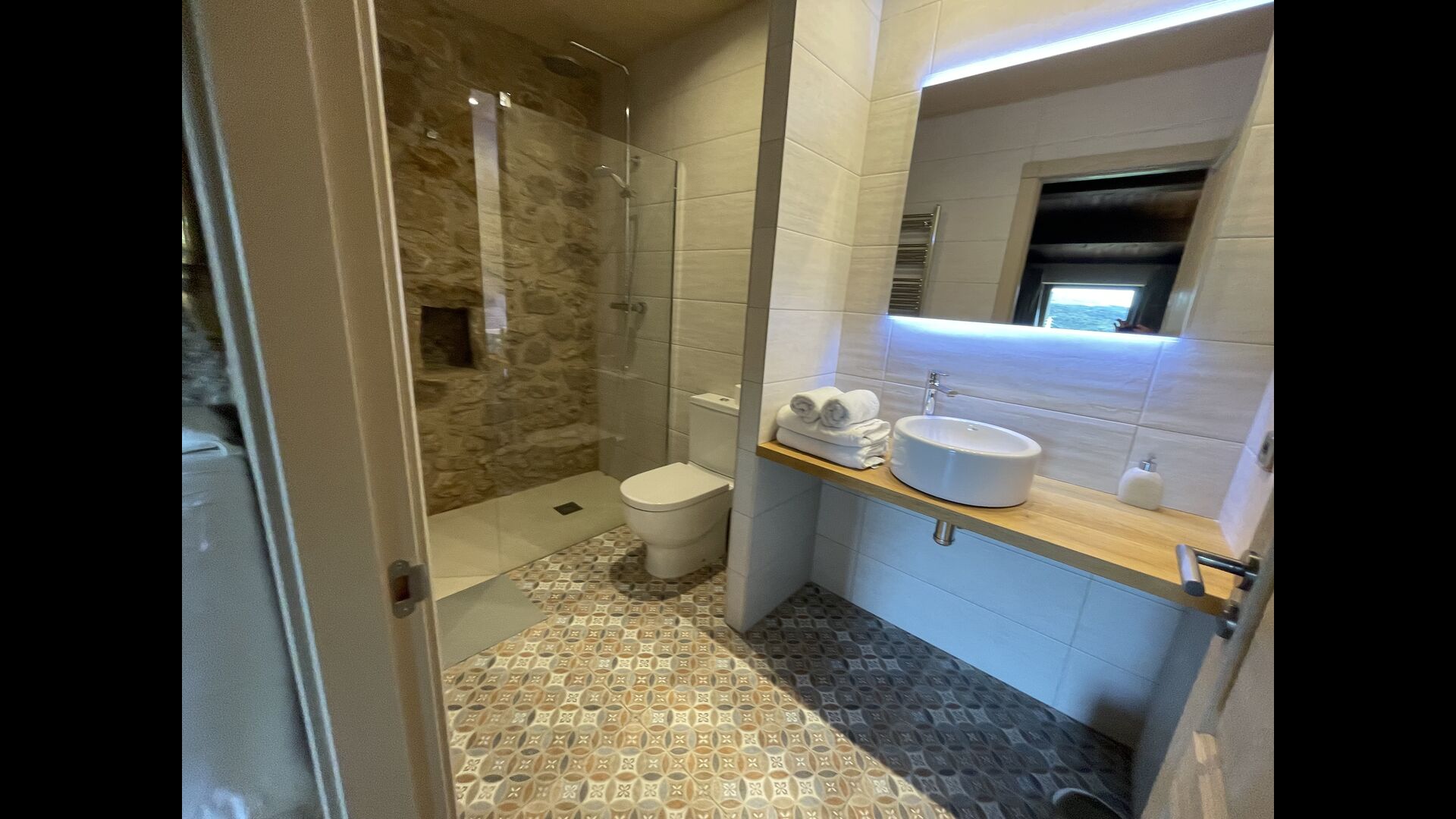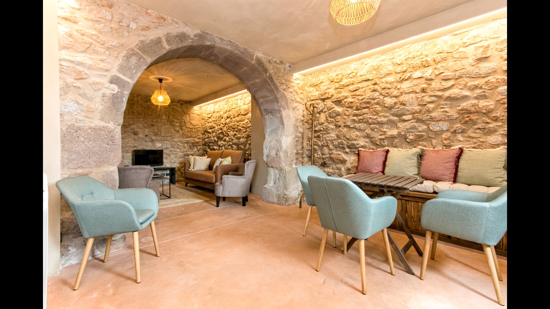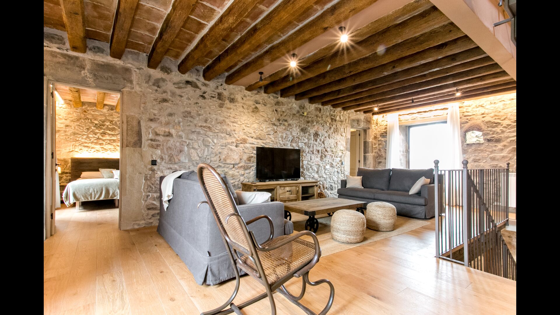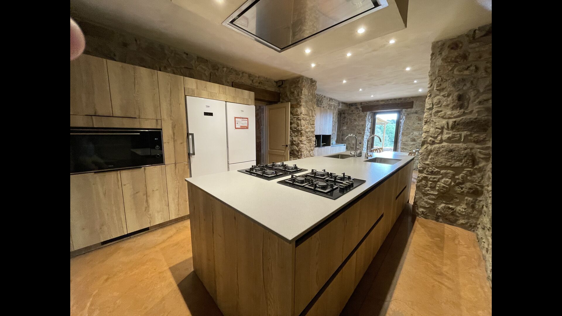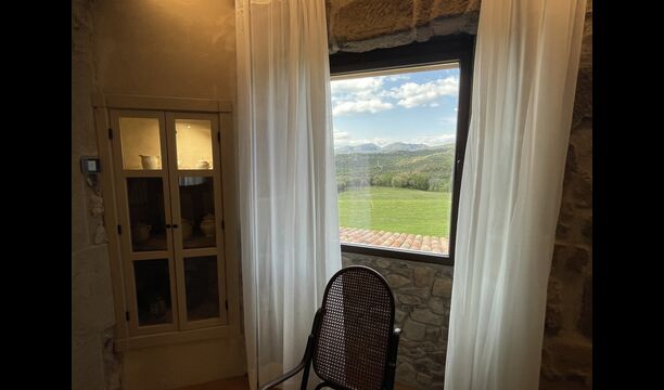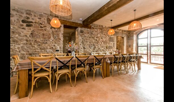 Une maison spectaculaire conçue pour les grands groupes qui souhaitent profiter de vacances luxueuses, pleines de détails de la construction originale, encadrées de meubles en bois et de tissus chaleureux. Il a de superbes vues sur les montagnes des Pré-pyrénées. Il est situé à un peu plus d'1h de Barcelone et de Gérone. Sur le terrain de 185 hectares, 2 maisons voisines sont louées, totalement séparées et indépendantes. Chacun avec sa propre terrasse et son terrain attenant. La piscine, le terrain de foot et le terrain de volley sont partagés par les 3 maisons.
