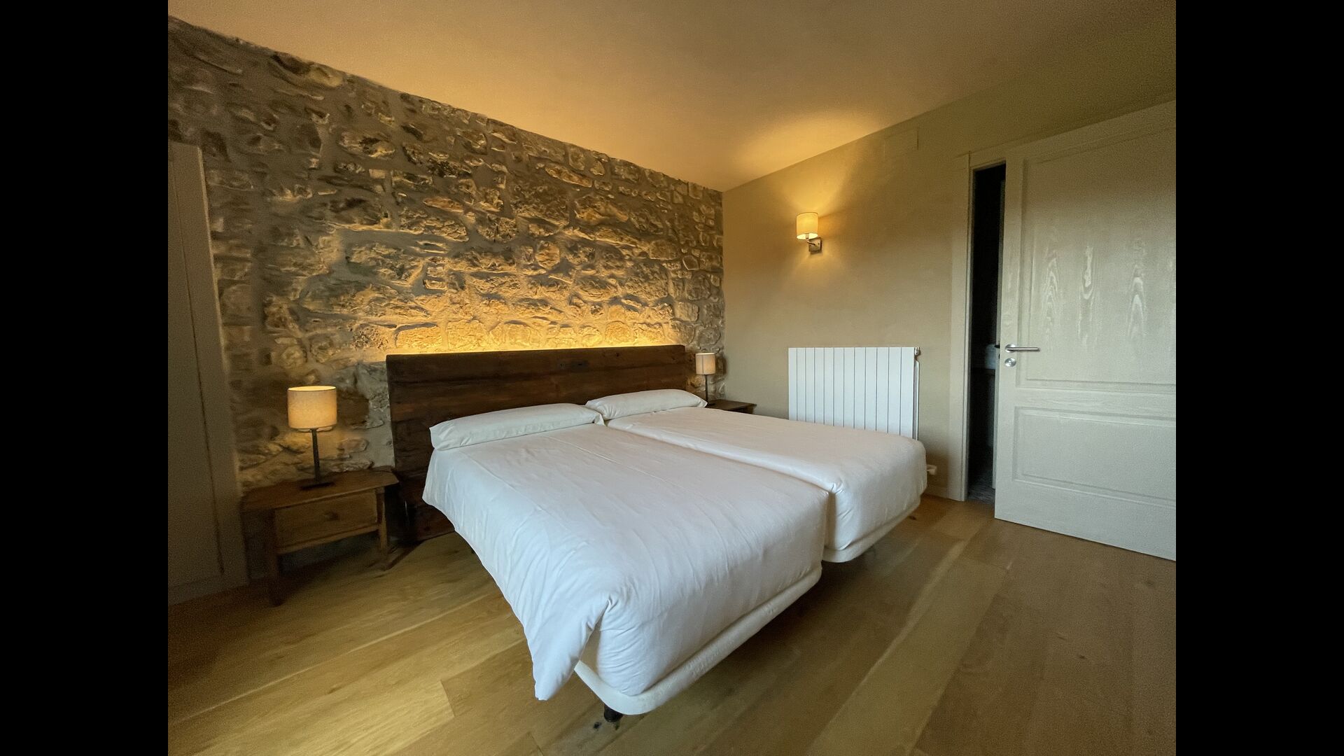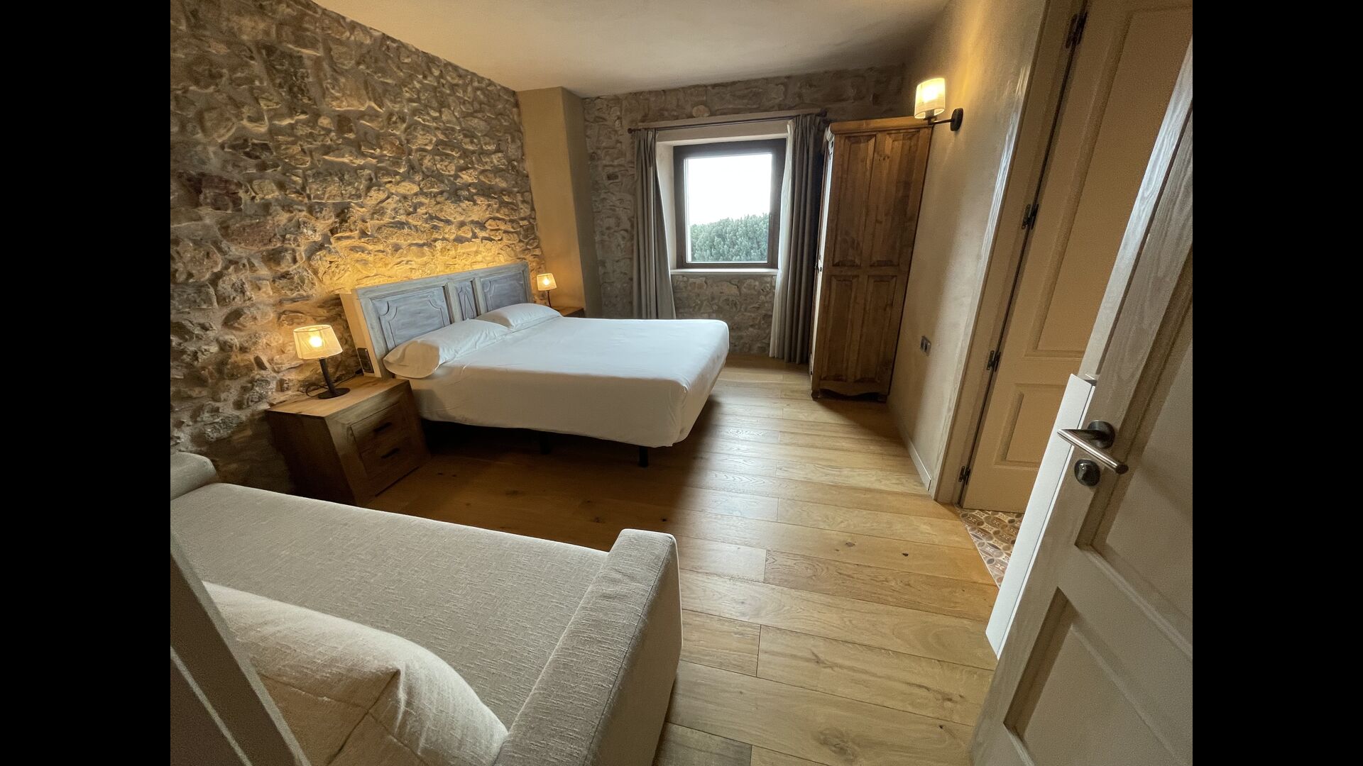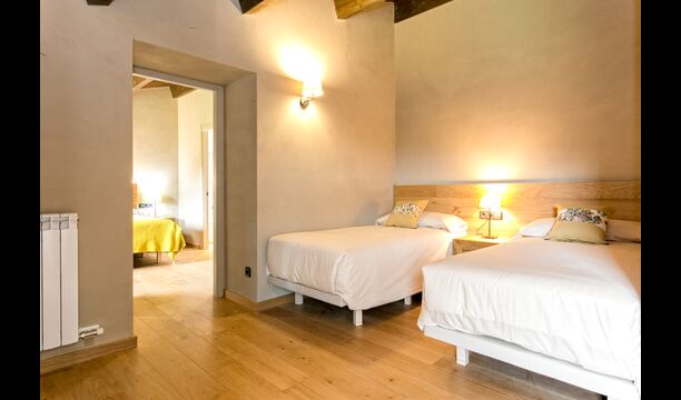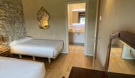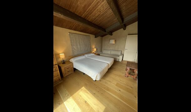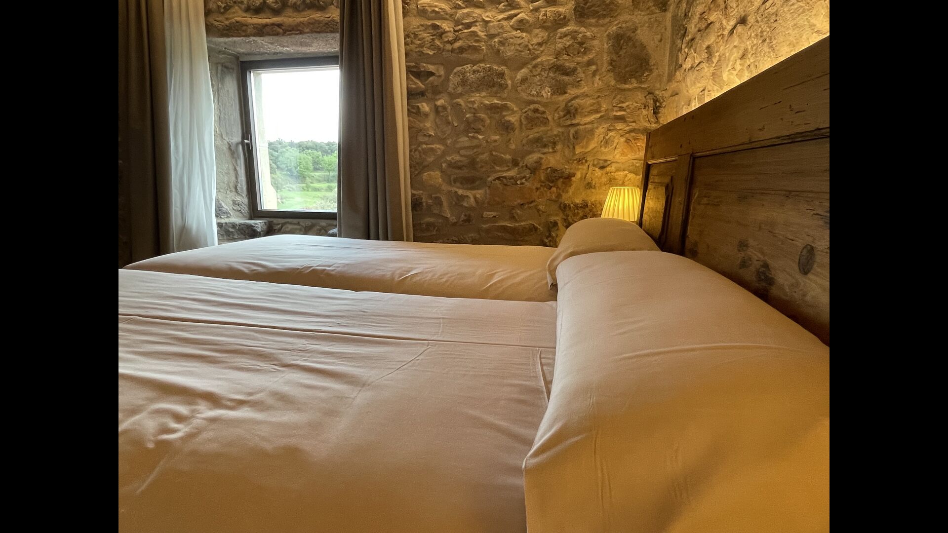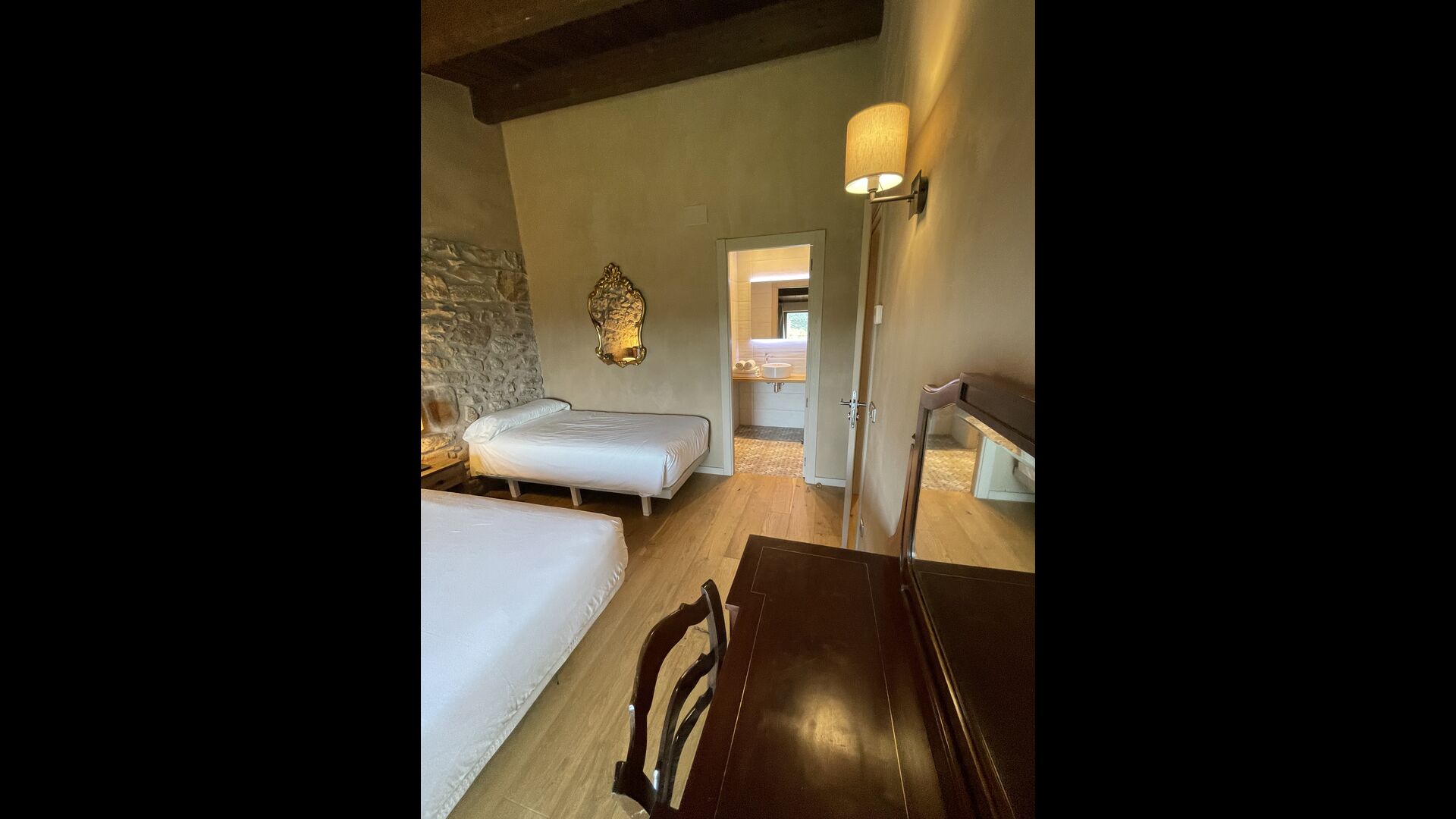 Au premier étage, vous trouverez 6 grandes chambres doubles avec vue sur la nature, toutes avec salle de bain privée. Au deuxième étage, nous trouvons 2 autres chambres doubles et 2 chambres quadruples (avec deux lits simples et un lit double, séparés par une porte). Ceux-ci ont également toutes les fenêtres extérieures et une salle de bain privée complète.