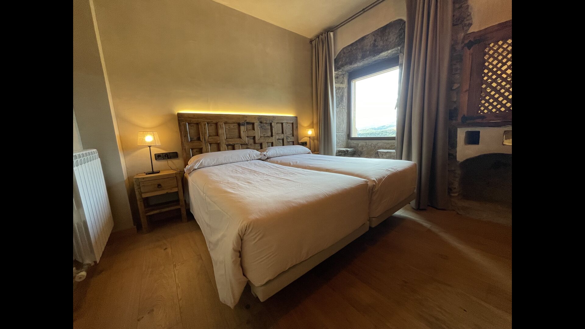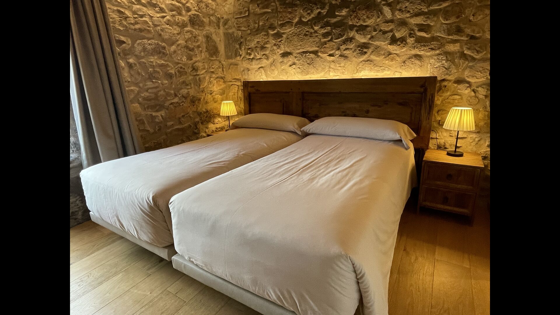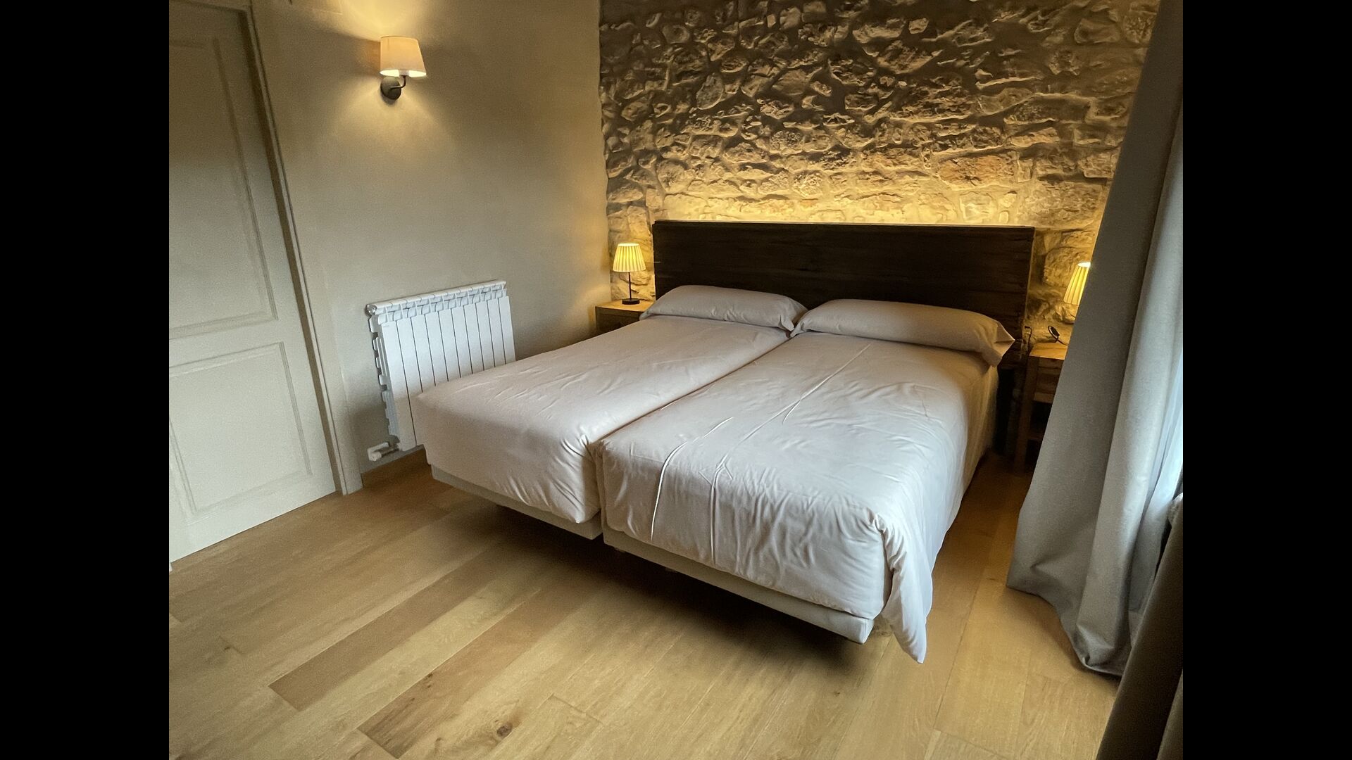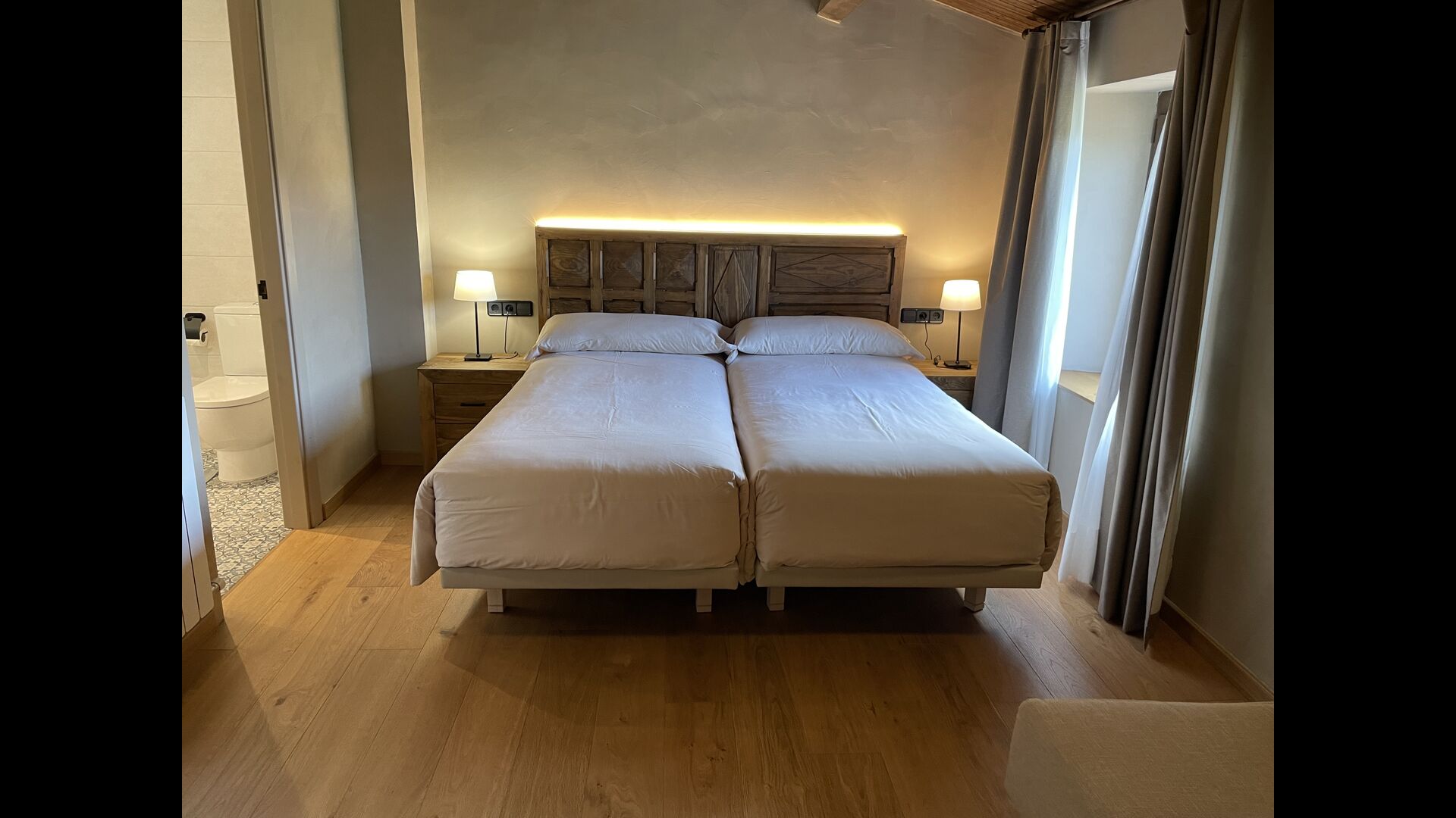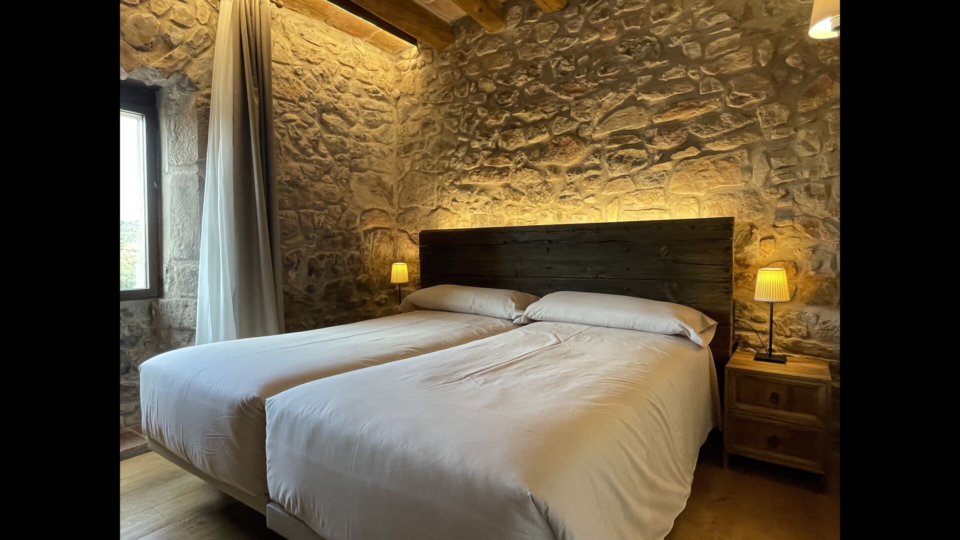 Au premier étage, vous trouverez 6 grandes chambres doubles avec vue sur la nature, toutes avec salle de bain privée. Au deuxième étage, nous trouvons 2 autres chambres doubles et 2 chambres quadruples (avec deux lits simples et un lit double, séparés par une porte). Ceux-ci ont également toutes les fenêtres extérieures et une salle de bain privée complète.