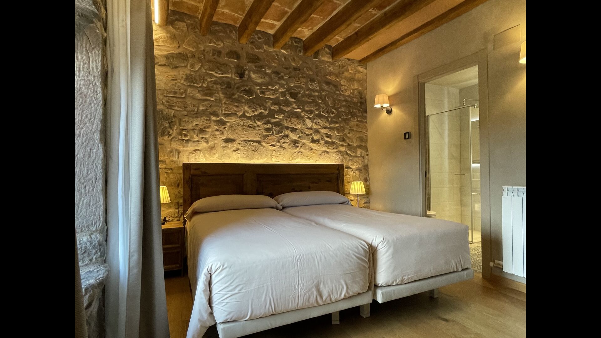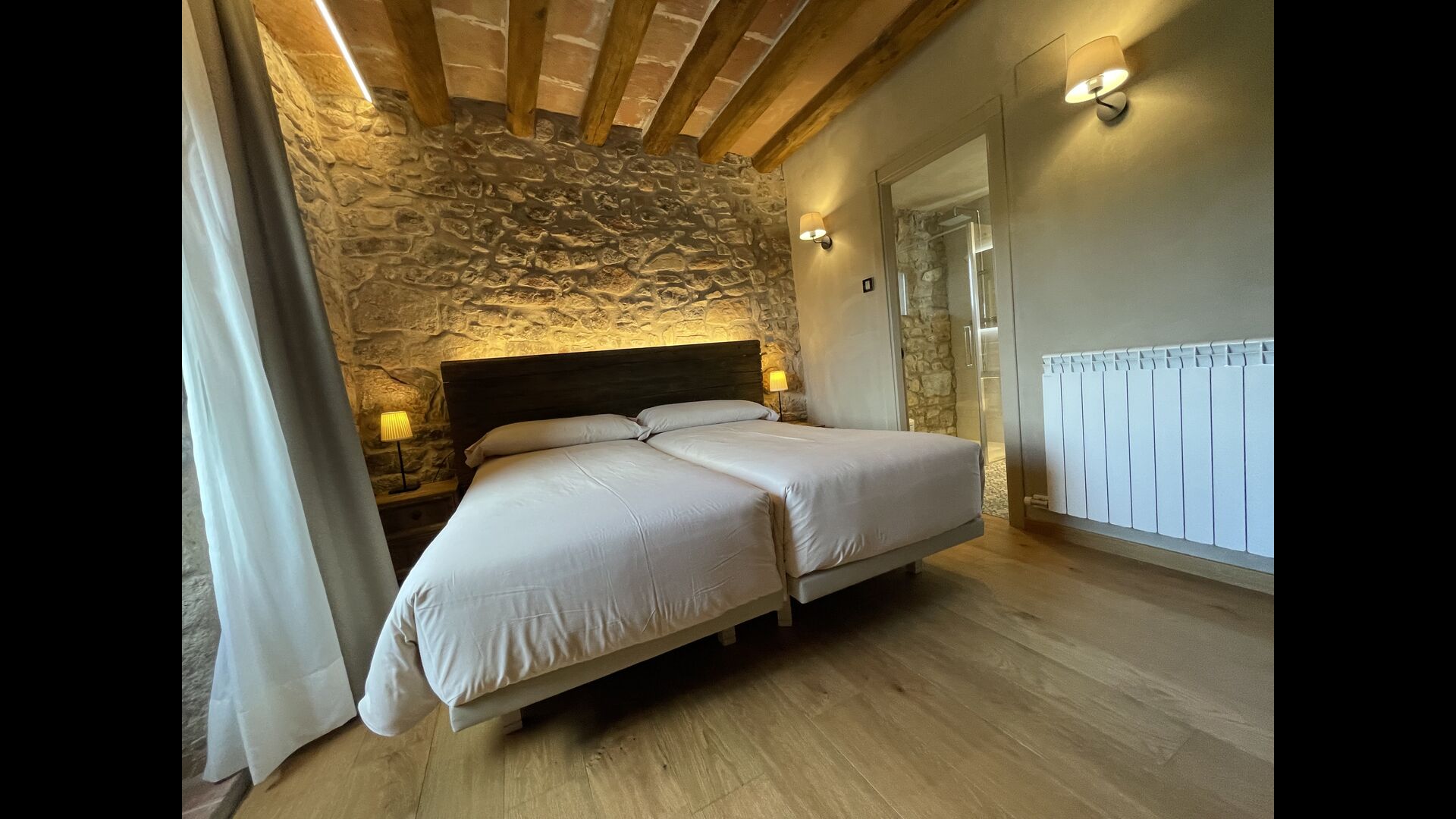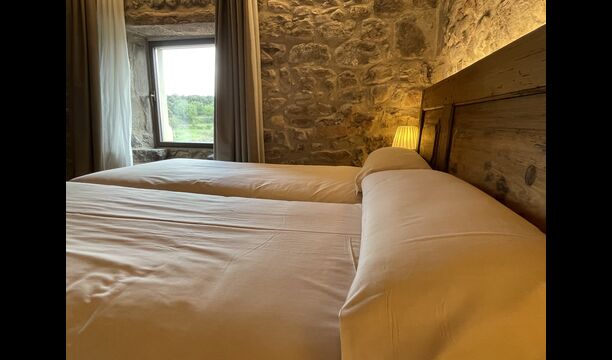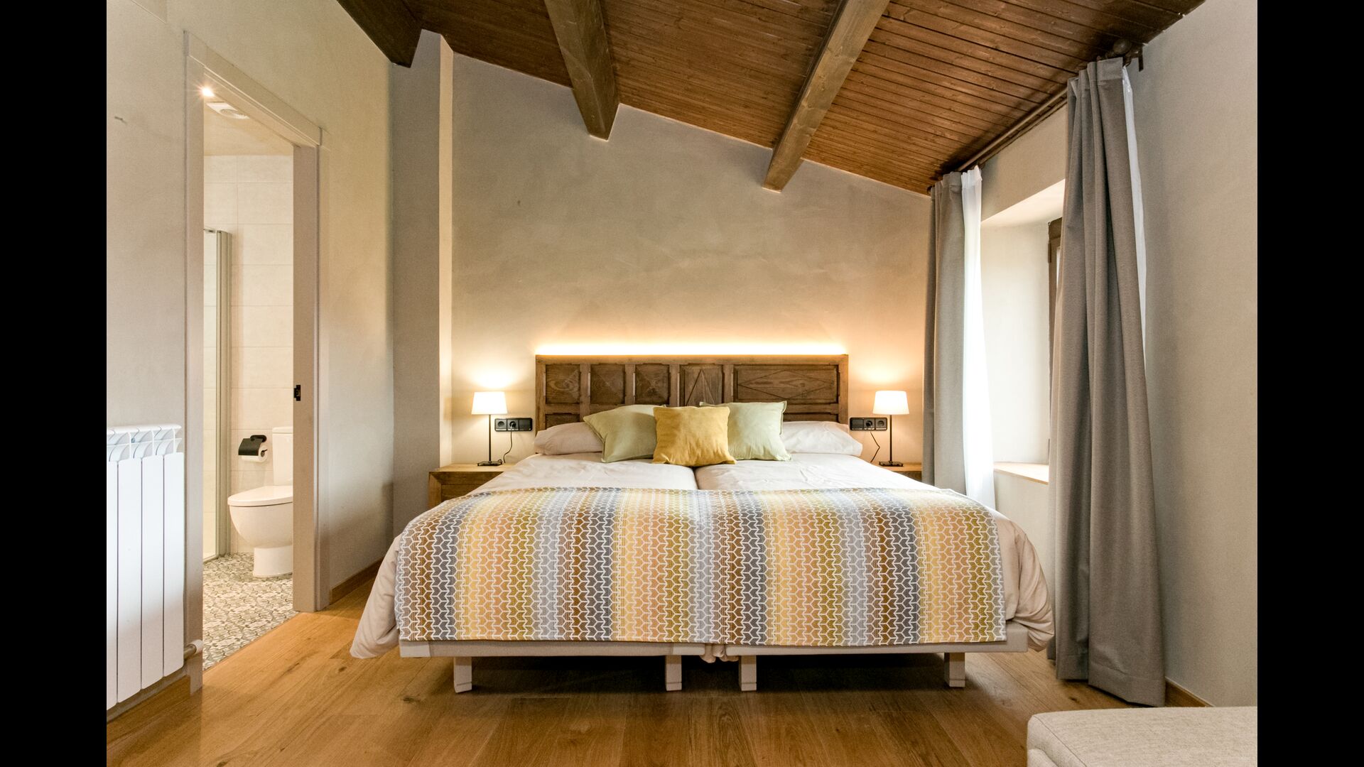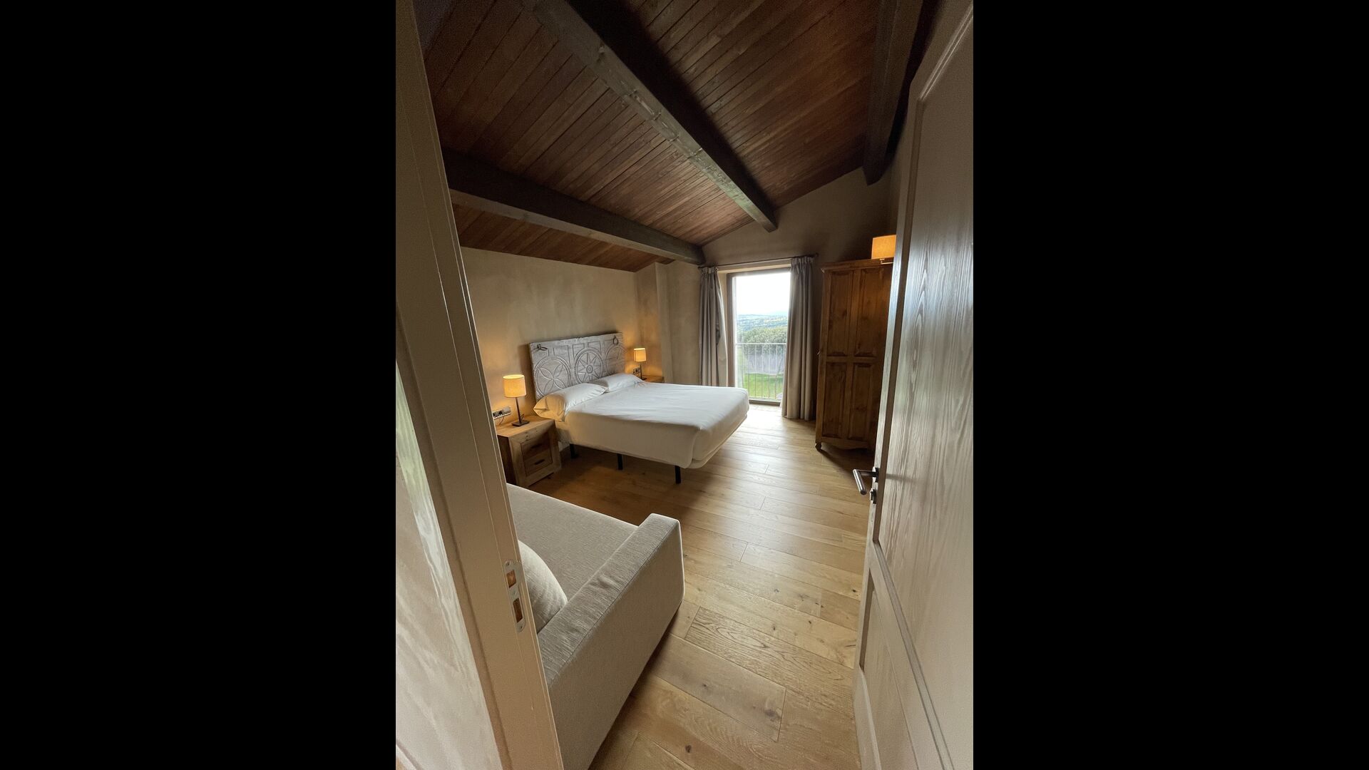 Au premier étage, vous trouverez 6 grandes chambres doubles avec vue sur la nature, toutes avec salle de bain privée. Au deuxième étage, nous trouvons 2 autres chambres doubles et 2 chambres quadruples (avec deux lits simples et un lit double, séparés par une porte). Ceux-ci ont également toutes les fenêtres extérieures et une salle de bain privée complète.