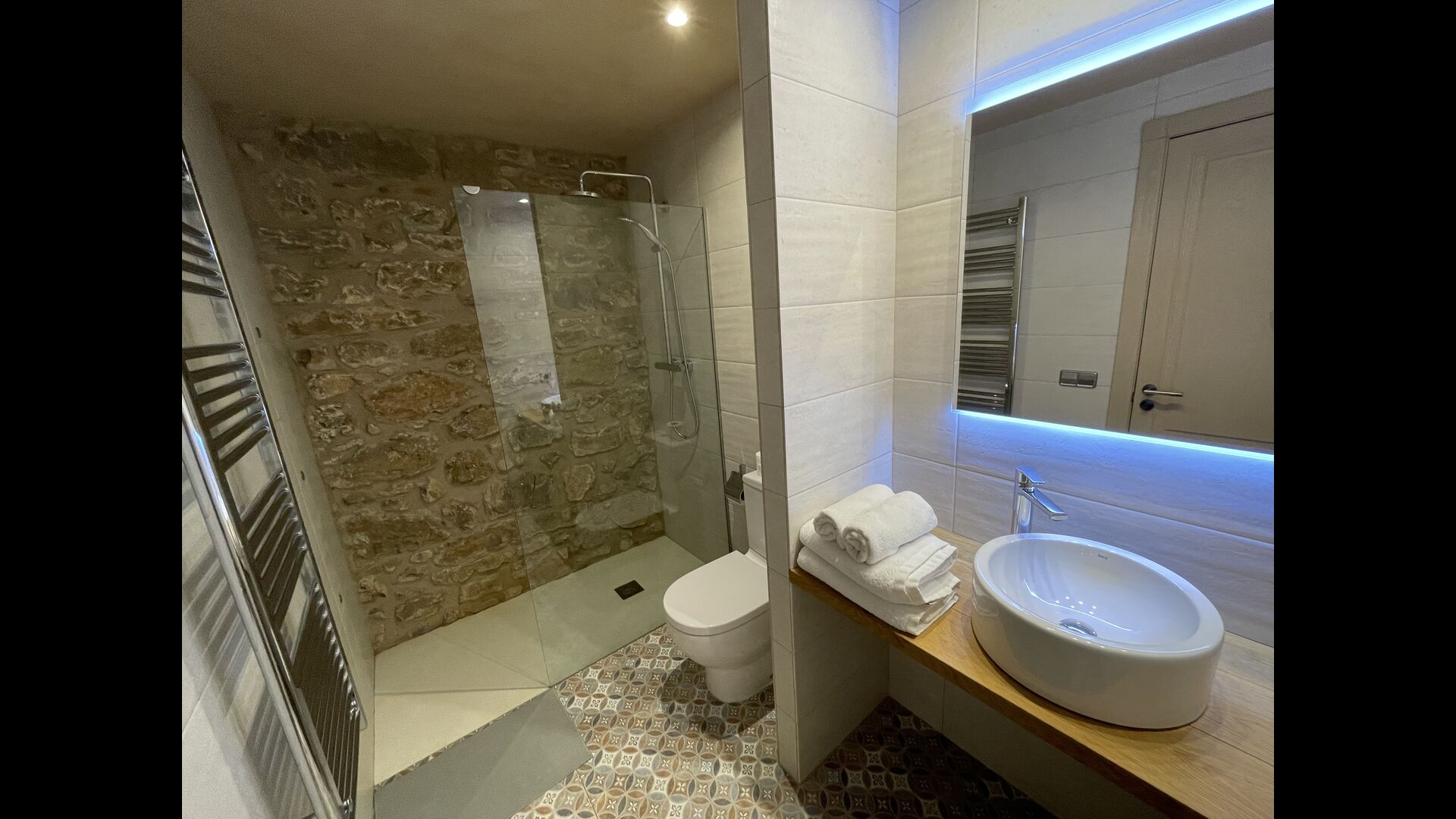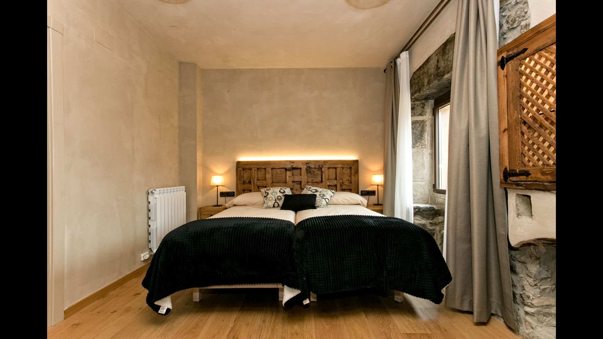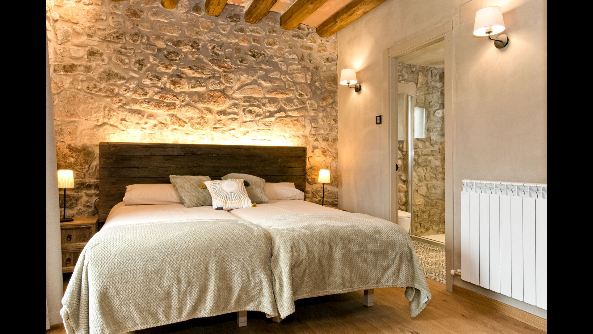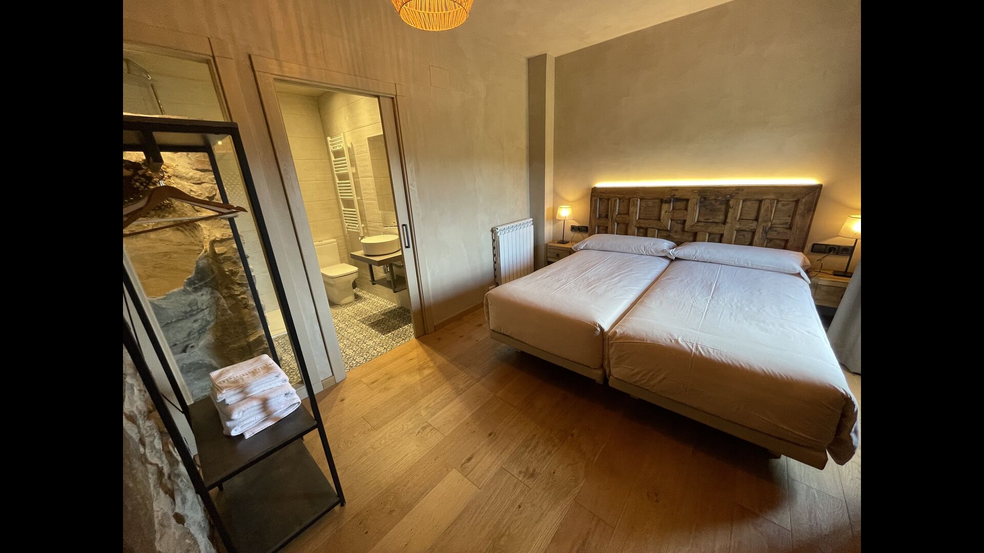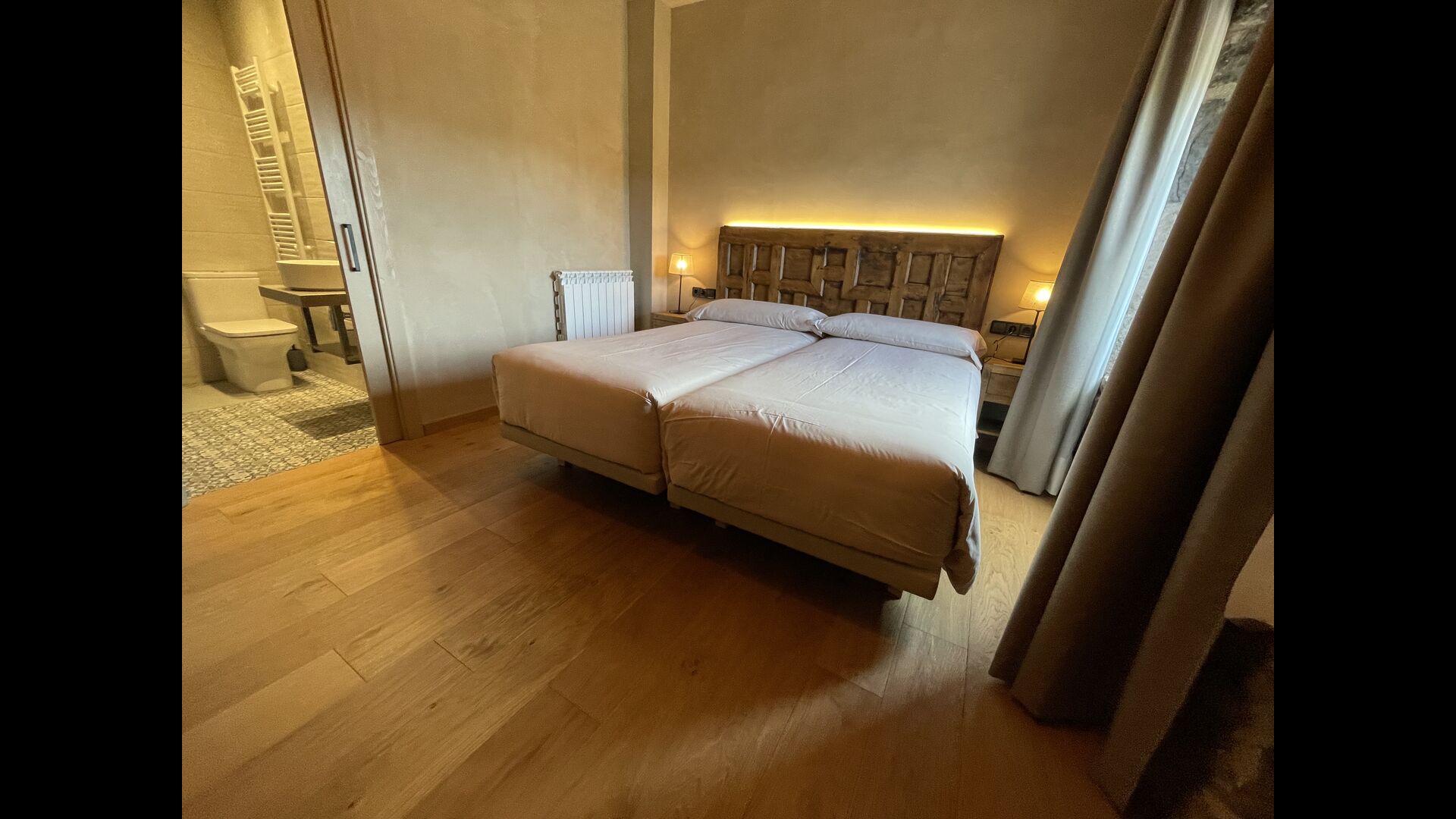 Au premier étage, vous trouverez 6 grandes chambres doubles avec vue sur la nature, toutes avec salle de bain privée. Au deuxième étage, nous trouvons 2 autres chambres doubles et 2 chambres quadruples (avec deux lits simples et un lit double, séparés par une porte). Ceux-ci ont également toutes les fenêtres extérieures et une salle de bain privée complète.