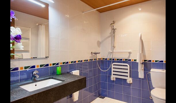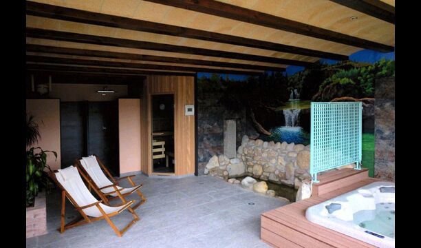 Contre supplément pour couvrir les frais, vous pouvez utiliser l'espace bien-être et sauna avec un grand spa avec vue sur le paysage à travers la fenêtre panoramique. Ensuite, il y a un «bassin de massage aux pierres». C'est un bassin d'eau froide, où la pierre ronde au fond masse vos pieds tout en marchant. À l'autre bout de la pièce, il y a une douche froide avant d'entrer dans le sauna. (2018-prix: 3 heures d'accès: 100 Euros)