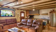 Au premier étage, il y a quatre chambres à coucher, cuisine et salle commune avec TV et DVD. Il y a 3 chambres doubles, 2 avec lits doubles et une superbe chambre avec quatre lits, parfait si, par exemple, les enfants aiment dormir ensemble. Une chambre a sa propre salle de bain et les trois autres partagent deux salles de bain supplémentaires. Cette partie a également un accès direct à la terrasse du premier étage avec une vue magnifique.