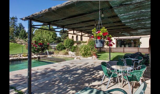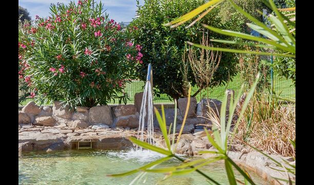 La piscine, qui totalise 84 m², est divisée en deux parties. Une partie inférieure, parfaite pour les petits enfants et une plus profonde, parfaite pour la natation. La piscine est protégée par une clôture afin que les jeunes enfants ne puissent pas entrer sans surveillance.
