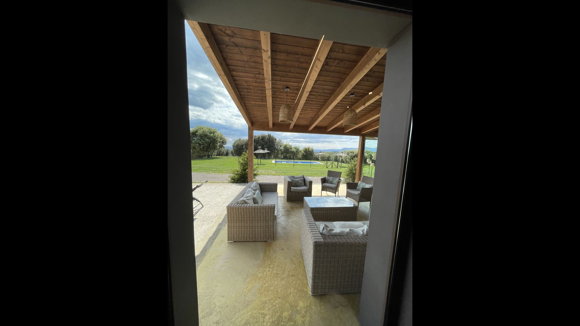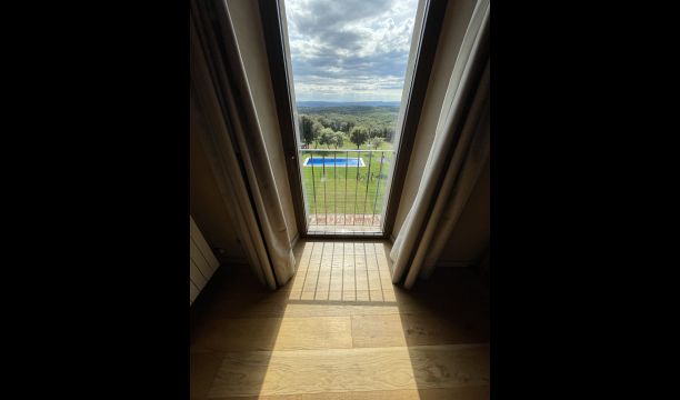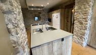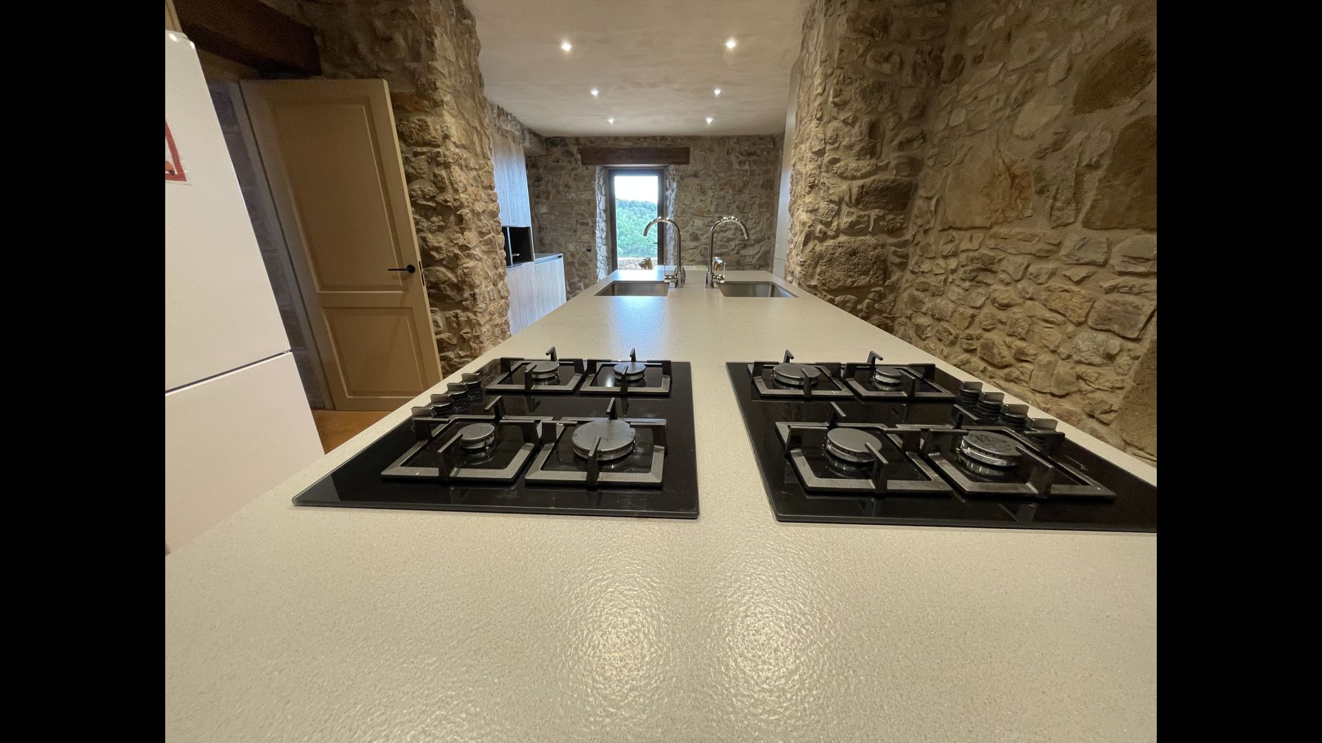 À l'entrée de la maison se trouve un porche situé en face de la piscine et offrant une vue spectaculaire sur les montagnes. Depuis le porche, vous pouvez accéder à la salle à manger, avec de grandes fenêtres ouvertes sur le jardin. Connecté à la salle à manger, nous trouvons la cuisine ouverte, avec des meubles en chêne, entièrement équipée. Thé 2 réfrigérateurs, 2 congélateurs, four, micro-ondes, cuisinière à gaz, lave-vaisselle, cafetière ... Dans la même pièce se trouve la cheminée, entourée d'une zone avec des canapés. À cet étage, il y a aussi une petite toilette gratuite.