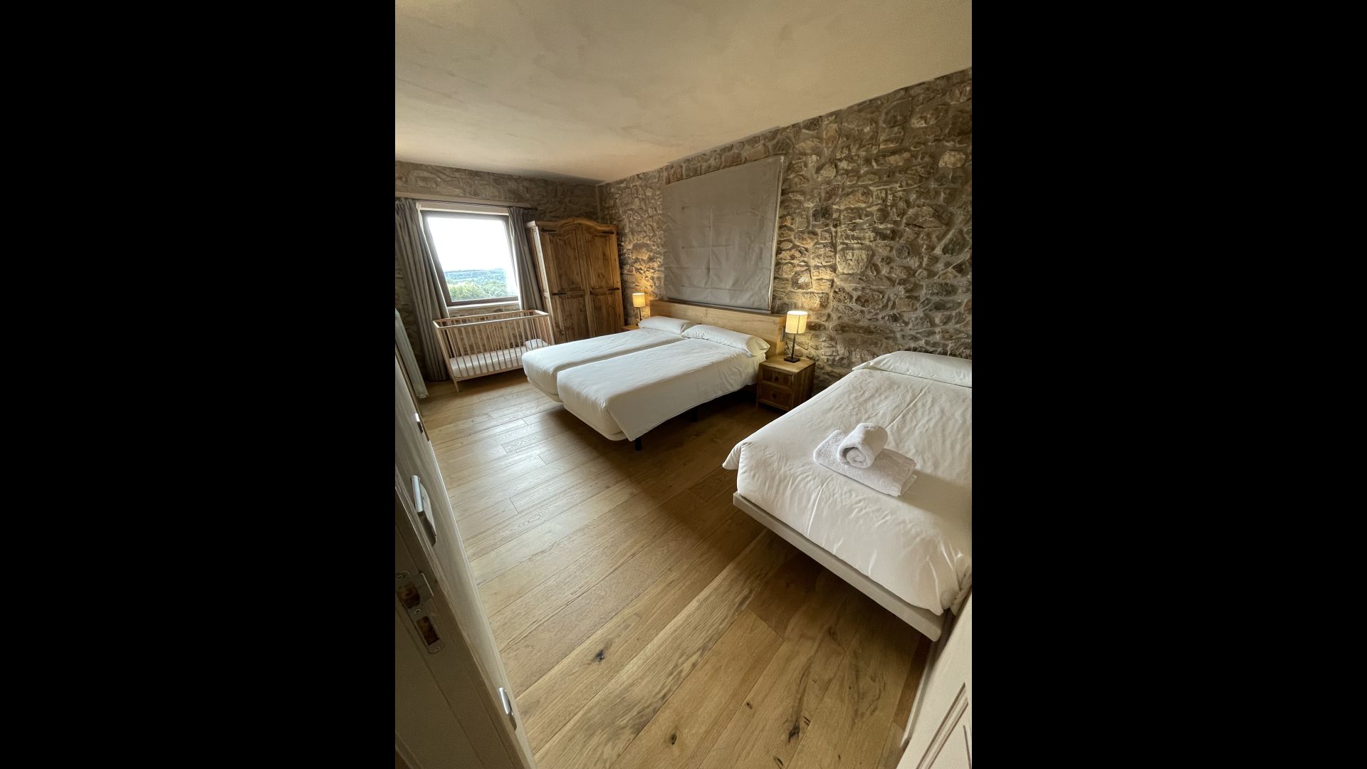 Aux étages supérieurs se trouvent les 6 chambres spectaculaires, toutes avec salle de bain. Chaque chambre dispose d'un canapé-lit, ce qui leur permet d'être triples ou quadruples selon leurs besoins.