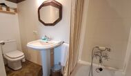 Piso Ballard is situated on the first floor in an independent building. The entrance is in level with the swimming pool, as the building is built on a slope. From the entrance, to the right you enter the 45m2 common room with kitchen corner, sofa corner, dining corner and not least panorama windows in the full length of the room. The kitchen is well-equipped with washing machine, dishwasher, ceramic hotplates, oven, microwave and toaster. To the left from the entrance you find the three large and beautifully decorated rooms, all with own bathrooms. Two of the rooms are double rooms; the third is a room with three beds.