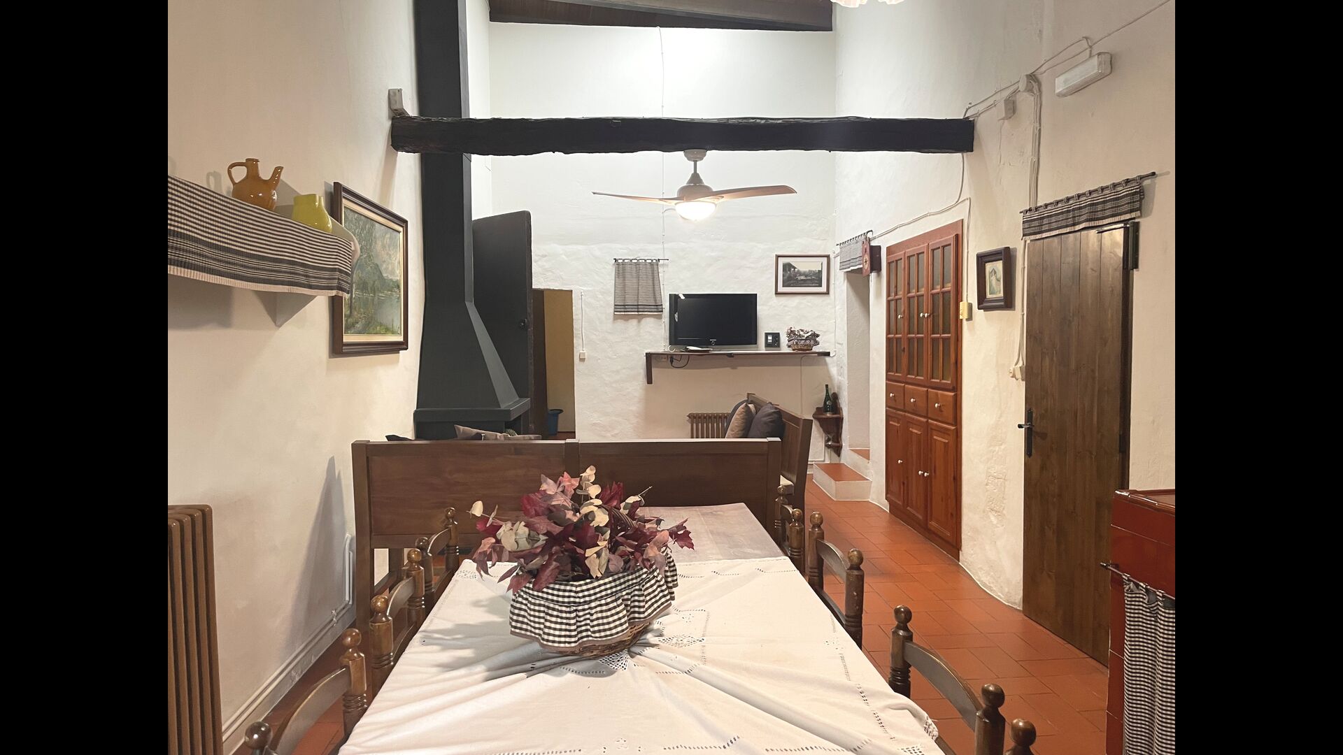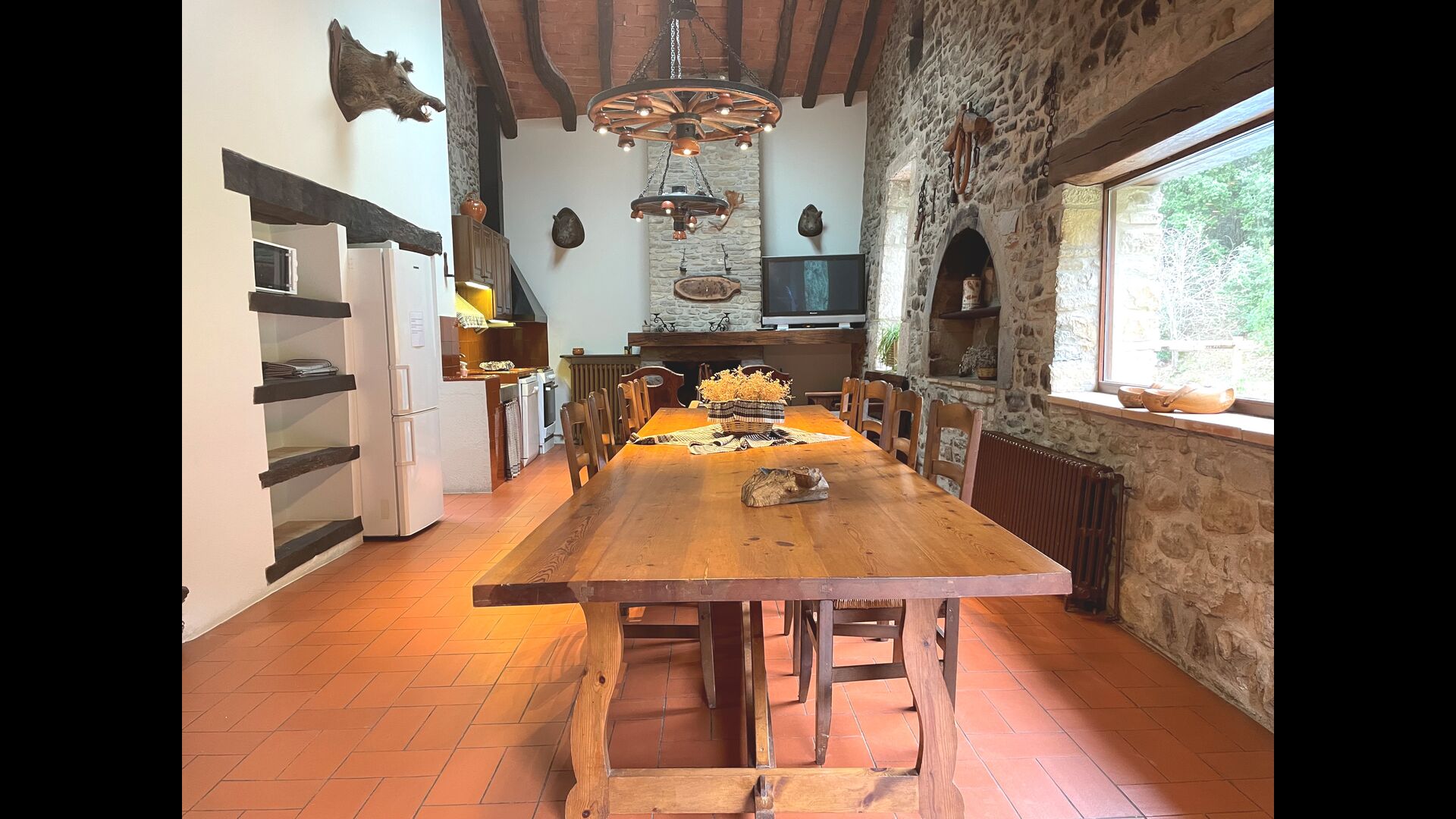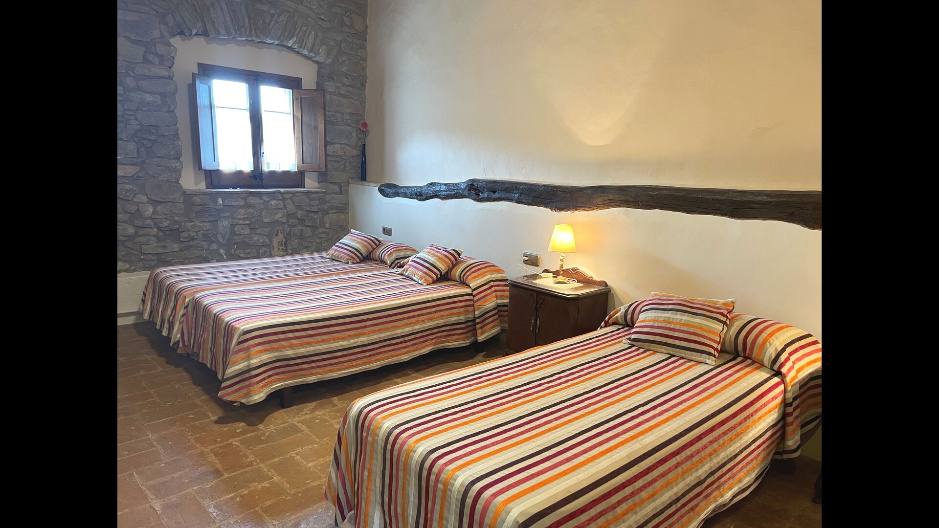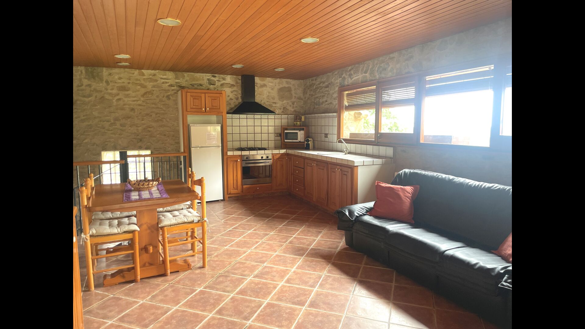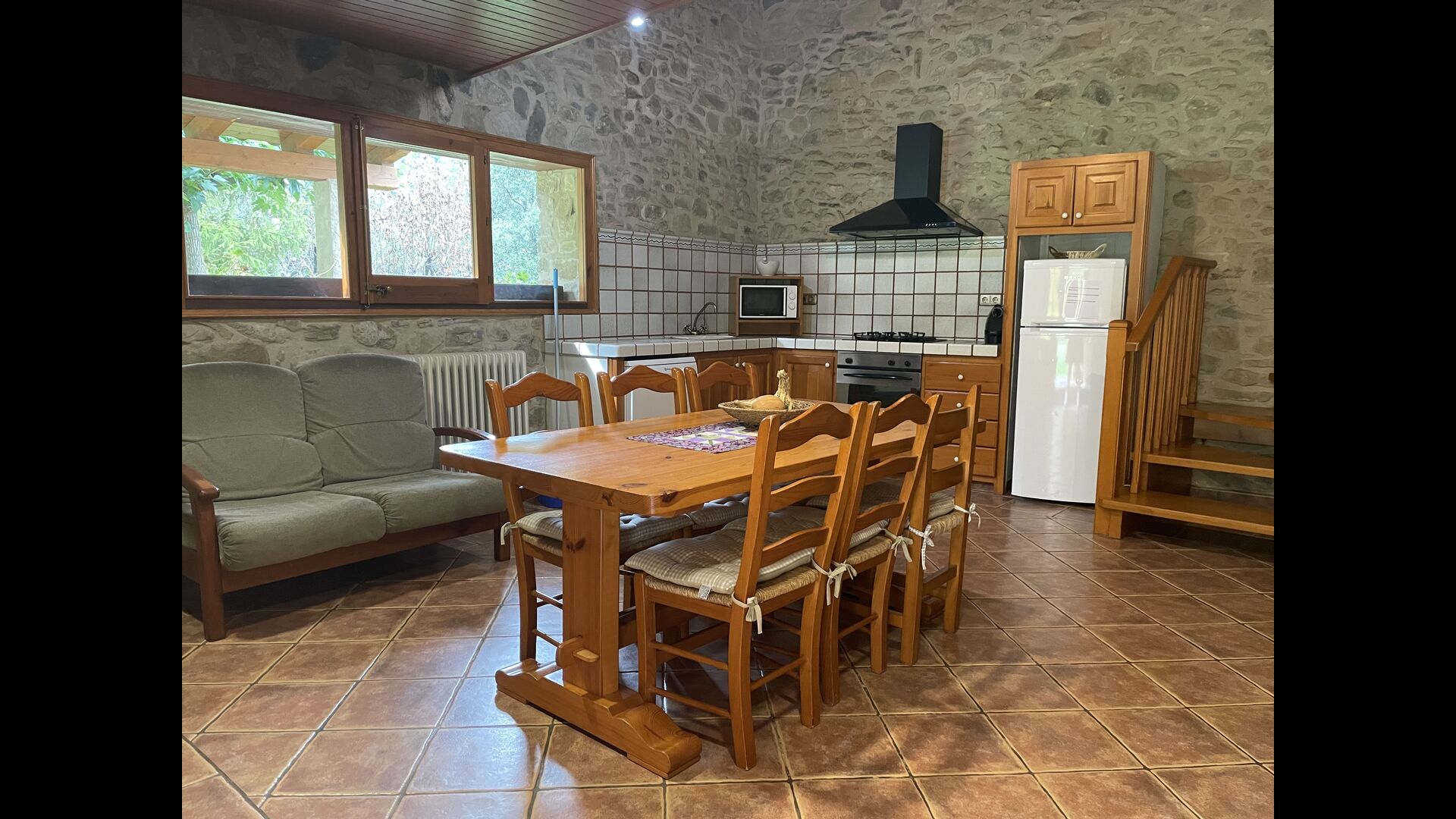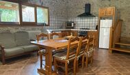 L'appartement Soler II est relié au Soler I ainsi qu'à la salle de jeux, et il a également une sortie directement sur le jardin. Vous trouverez ici deux grandes chambres, chacune avec 2 lits doubles, puis une chambre double avec un lit double. Ces trois chambres partagent 2 salles de bains. En outre, il y a une belle salle commune rustique avec coin repas, cuisine et coin salon.