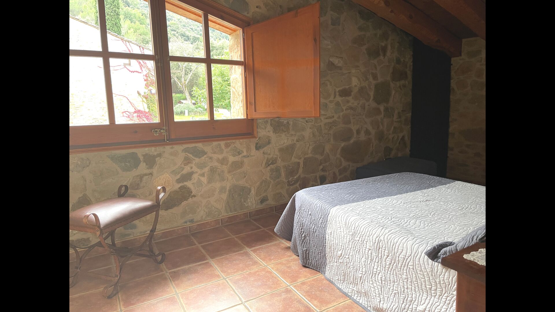 Vous cherchez un endroit complètement isolé mais toujours pas trop loin d'une belle ville avec des restaurants, Masia Sol de Marlant pourrait être l'endroit. Rester en montagne nécessite bien sûr d'arriver par une route de montagne, mais la route est bonne et seule la dernière partie sans trottoir, donc on peut arriver sans problème. La récompense est bluffante ! Quel endroit naturel entouré par la nature et avec vue sur la vallée en contrebas. La source d'énergie est les cellules solaires, ajoutant à la sensation naturelle et durable.