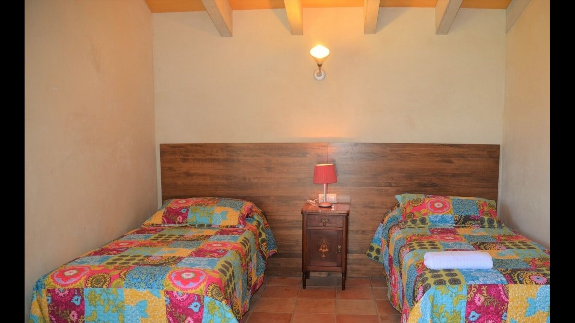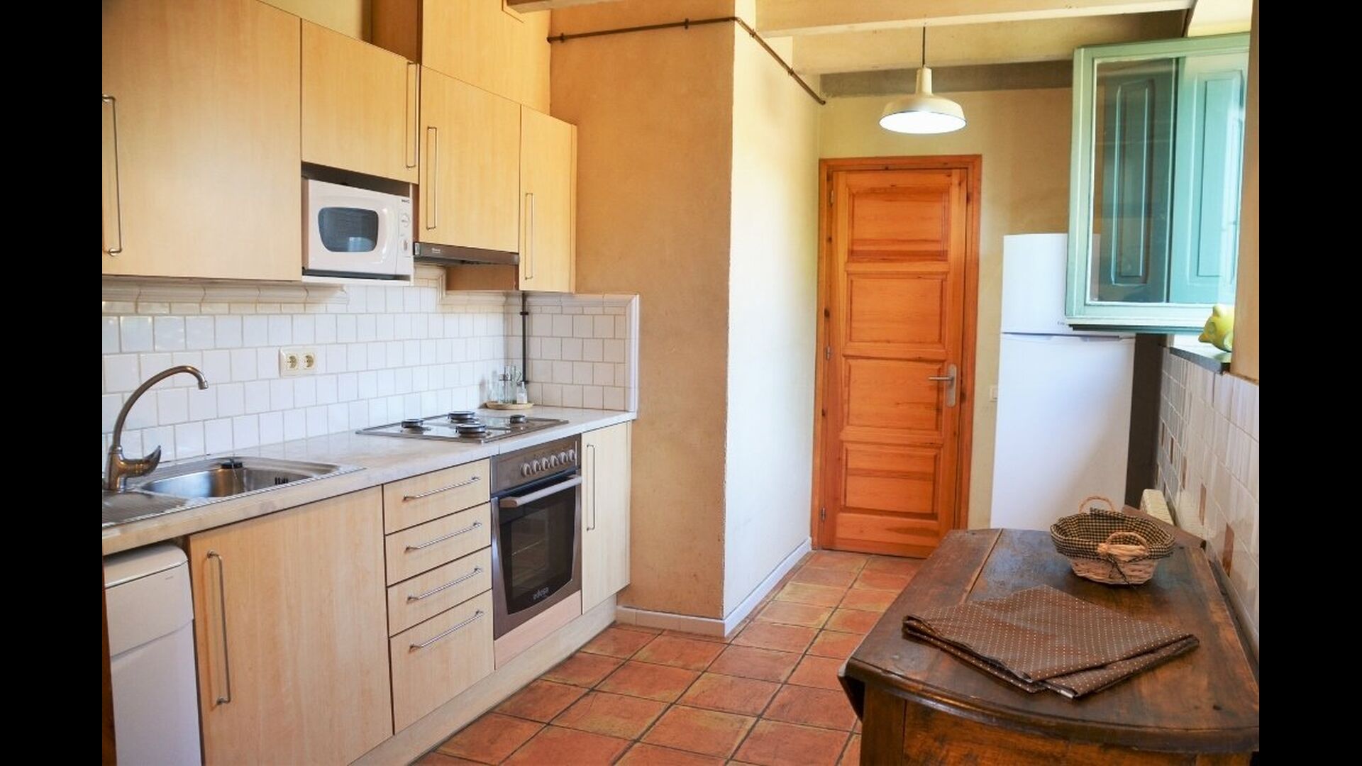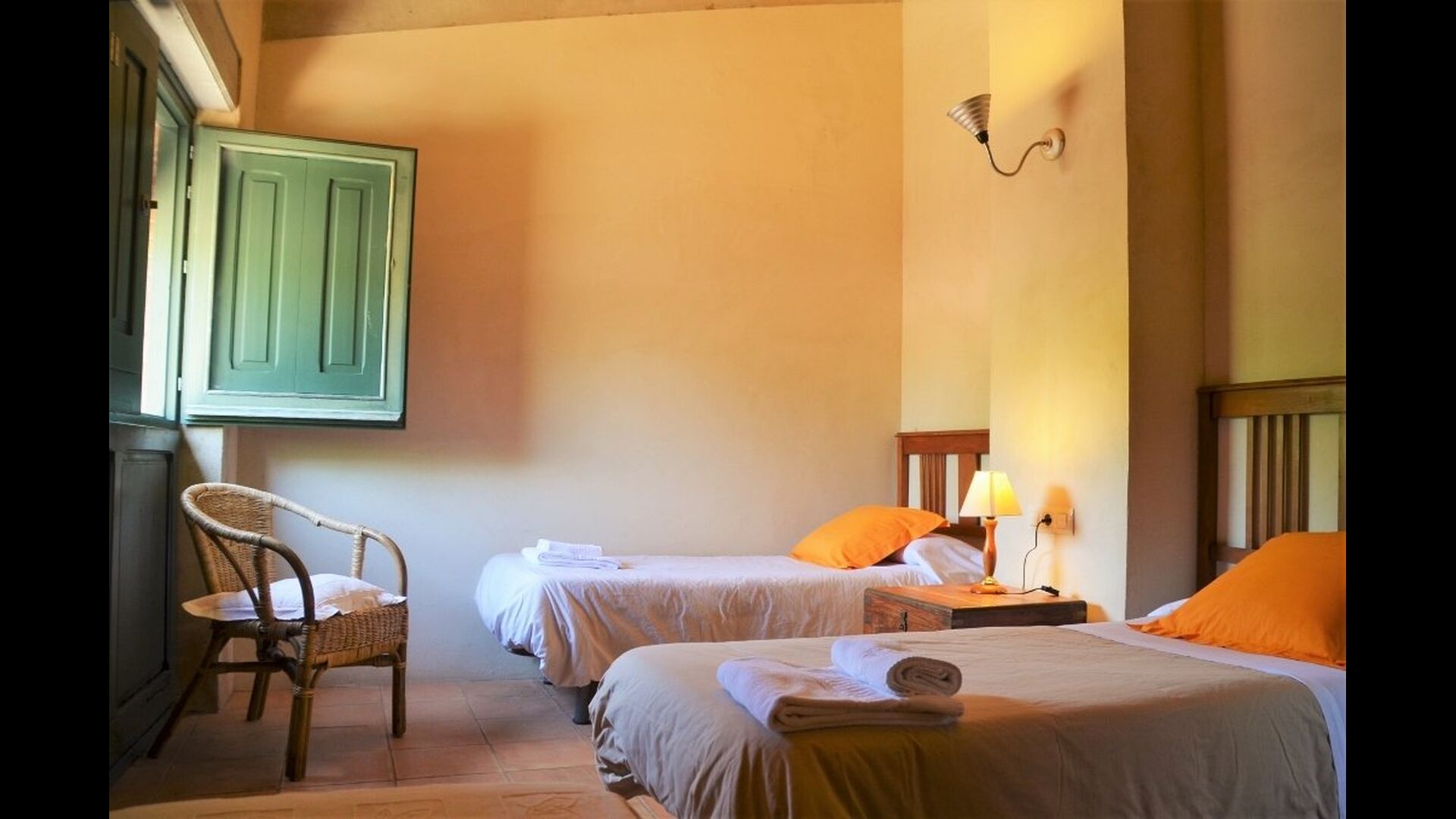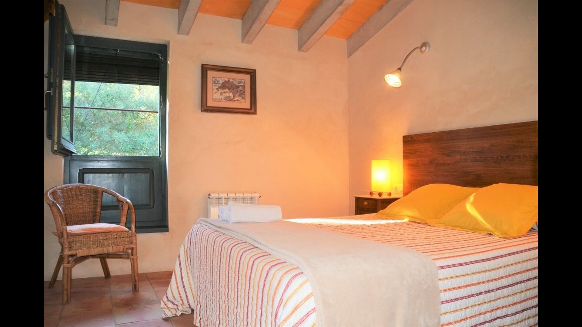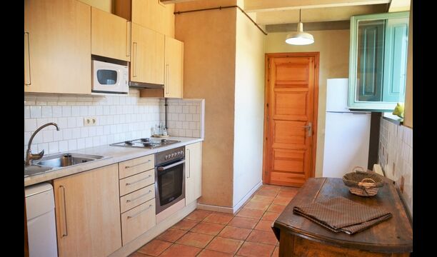 Appartement La Cabanya est le seul des 4 appartements Mas Margarita qui ne fait pas partie du bâtiment principal, mais est une maison privée à proximité. La maison joliment décorée offre de la place pour 8 personnes et avec la possibilité d'accueillir 2 personnes supplémentaires. La Cabanya est située sur une colline à un niveau plus élevé que les autres appartements. Les deux logements sont reliés par un pont comme dans les Châteaux.