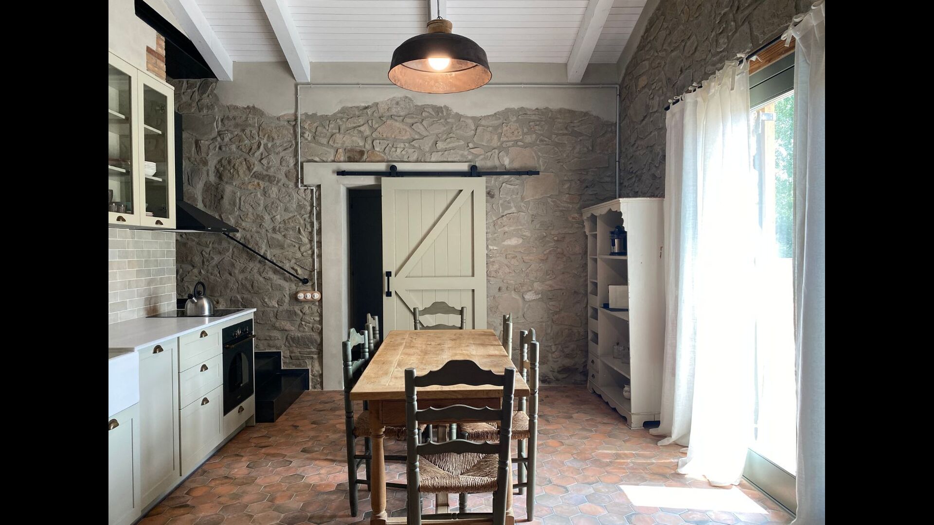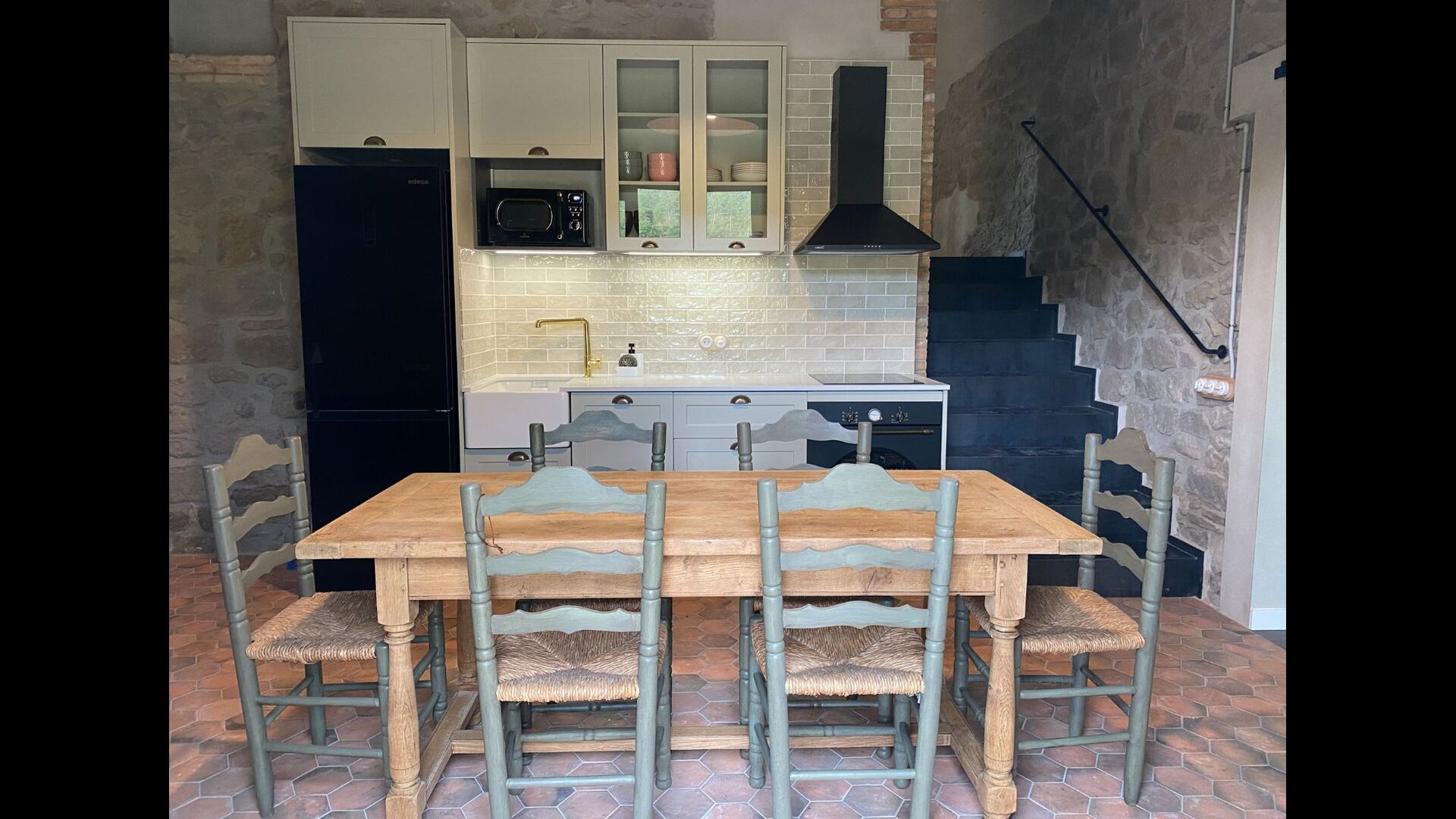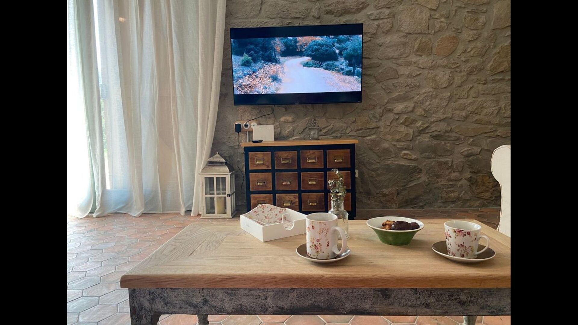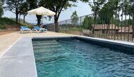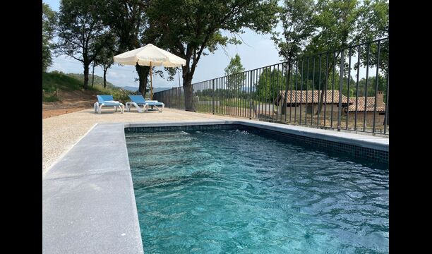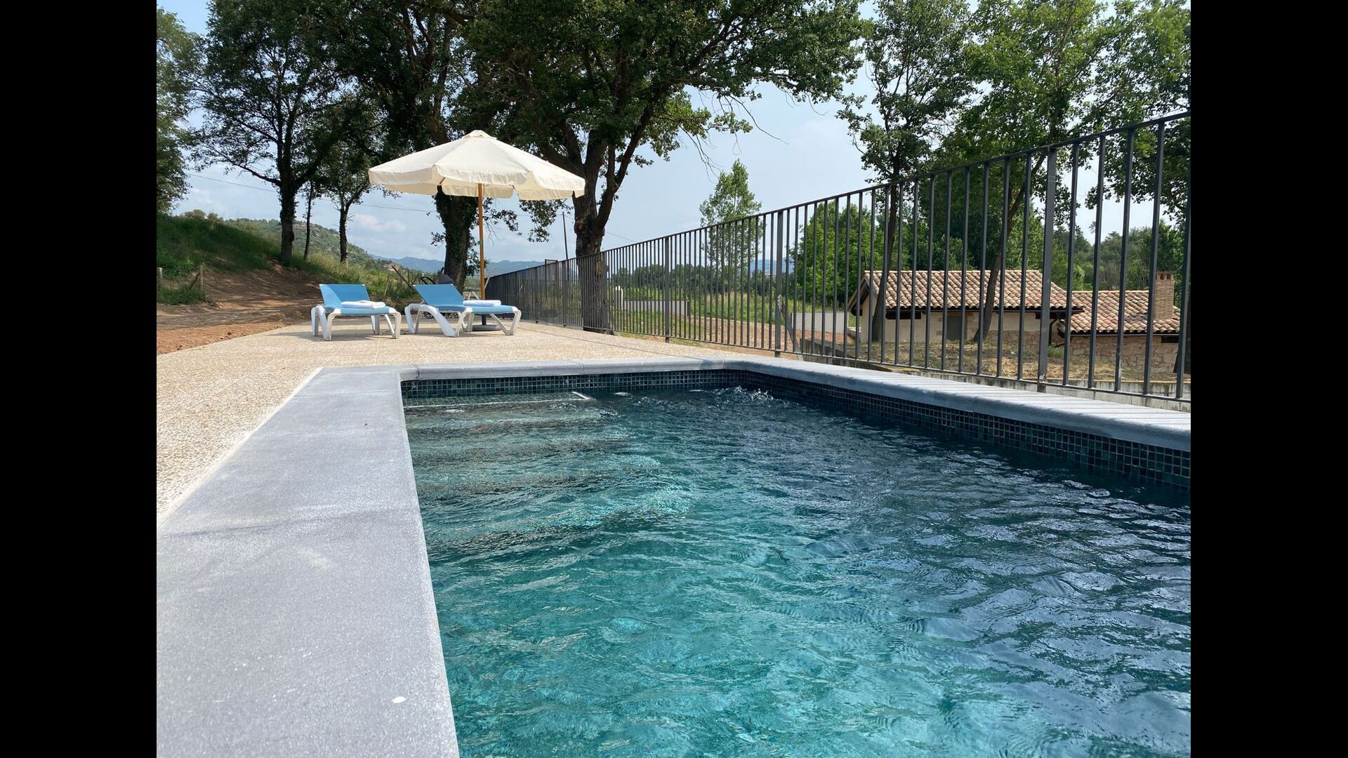 La jolie terrasse est directement reliée à la maison et vous offre à la fois des endroits ensoleillés pour profiter de l'été catalan et des endroits ombragés s'il fait trop chaud pendant la journée. Et puis vous pourrez bien sûr vous rafraîchir dans la piscine privée. La terrasse dispose également de chaises longues, d'une table de terrasse et d'un barbecue.