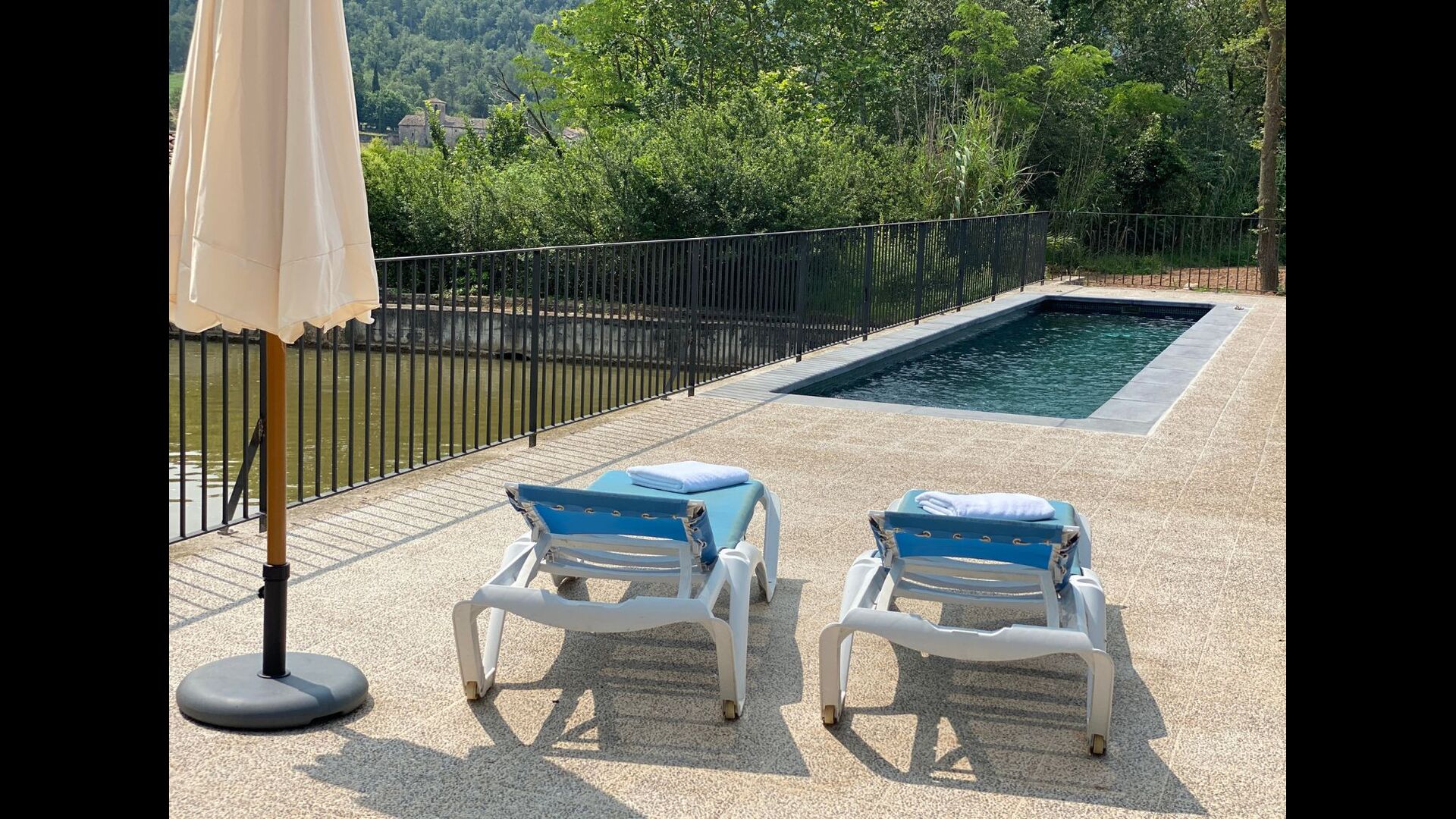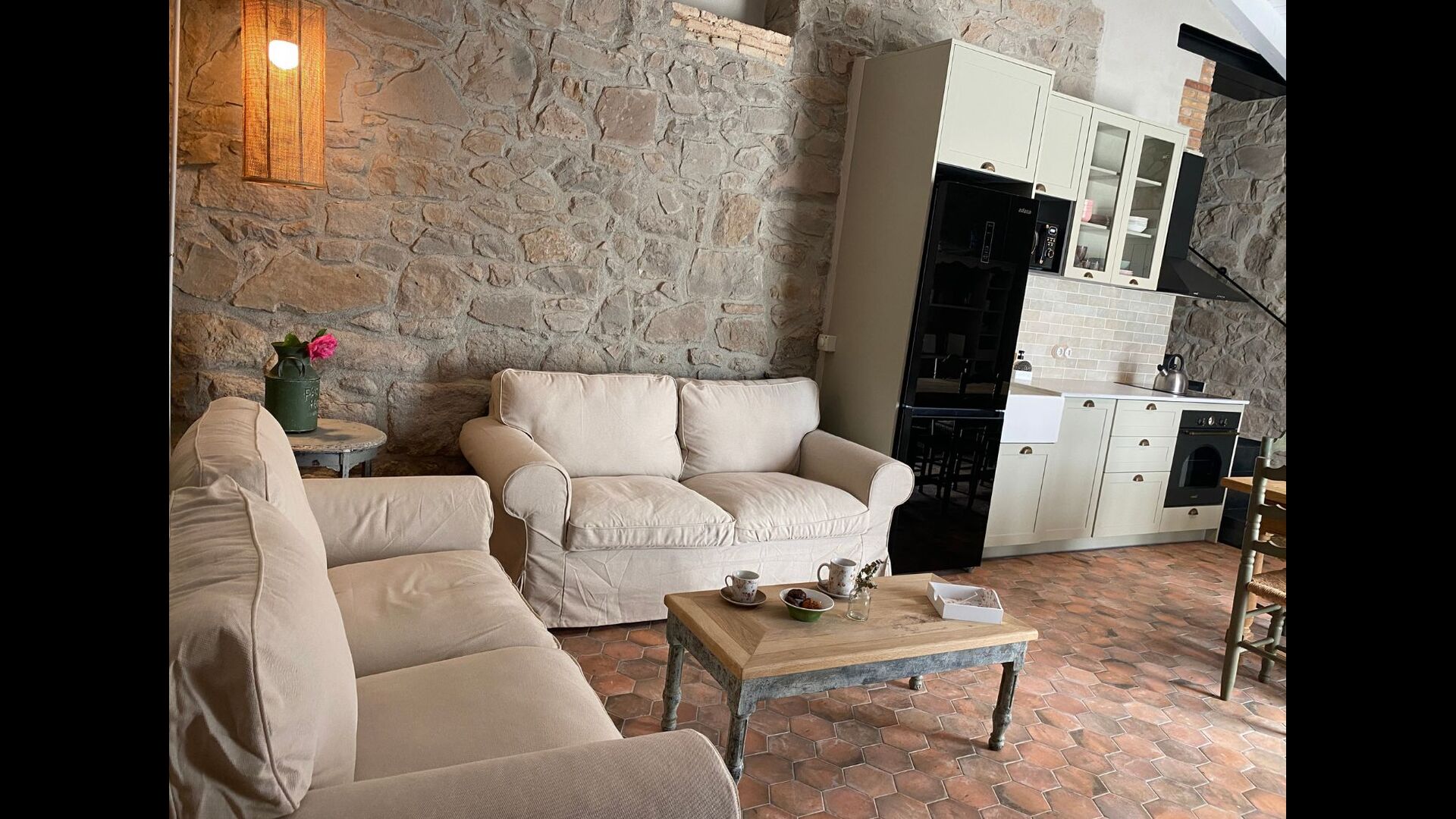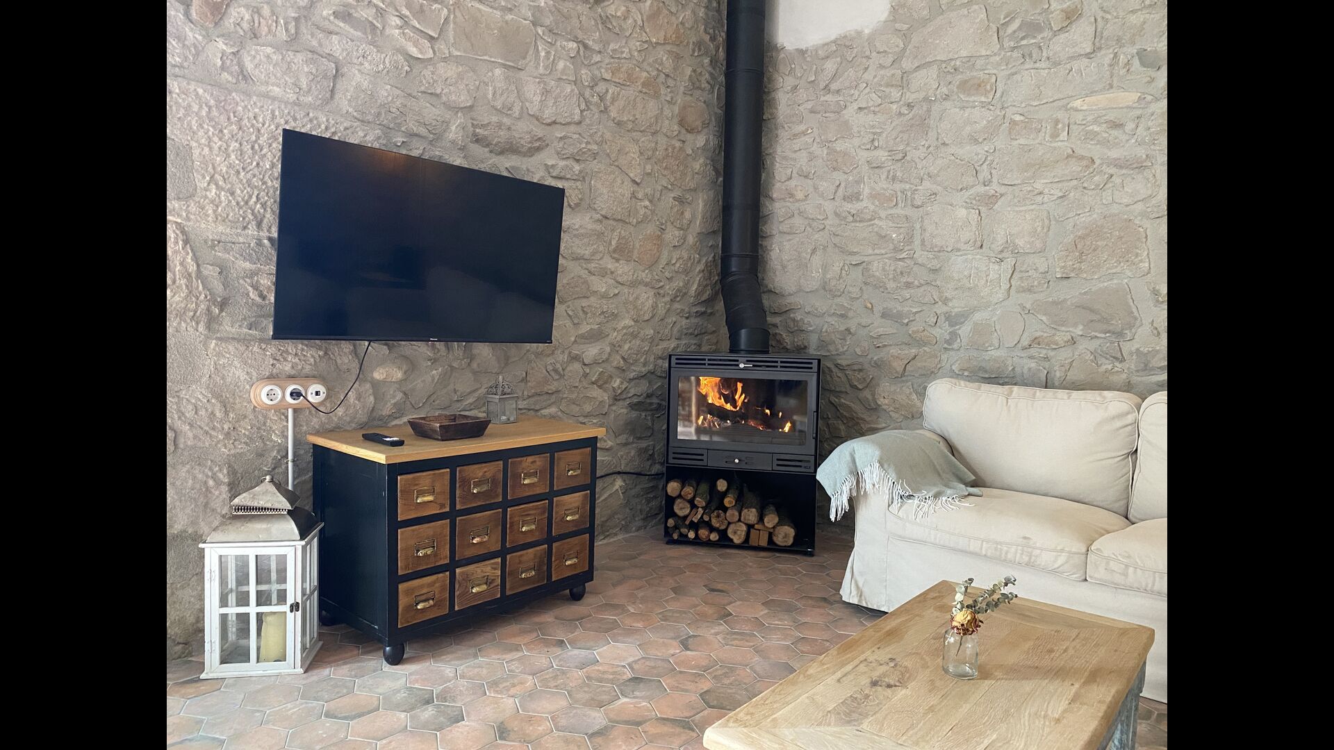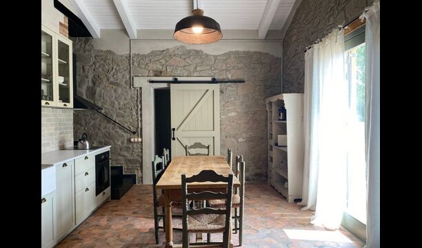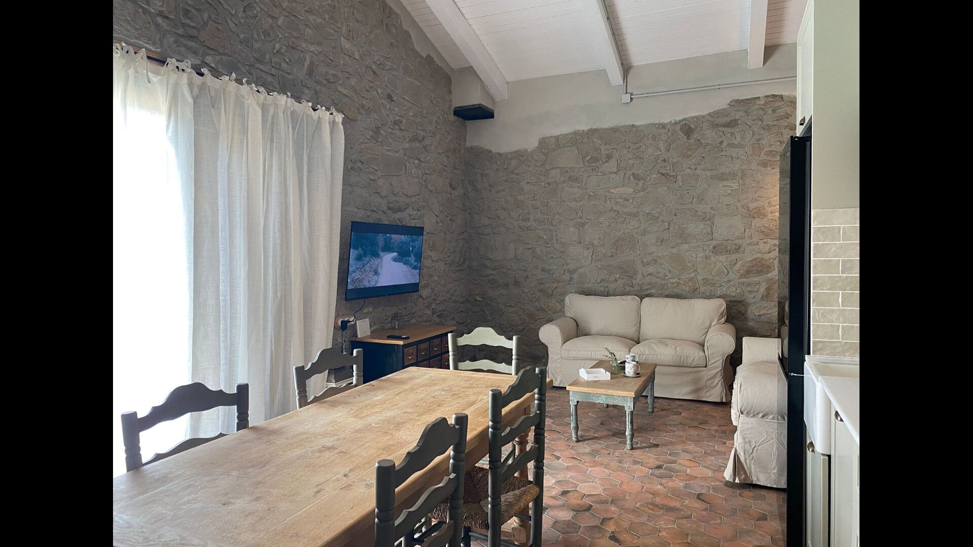 La jolie terrasse est directement reliée à la maison et vous offre à la fois des endroits ensoleillés pour profiter de l'été catalan et des endroits ombragés s'il fait trop chaud pendant la journée. Et puis vous pourrez bien sûr vous rafraîchir dans la piscine privée. La terrasse dispose également de chaises longues, d'une table de terrasse et d'un barbecue.