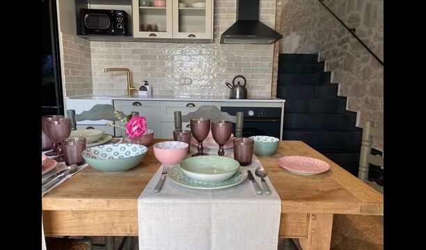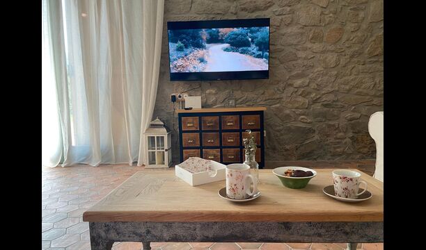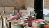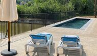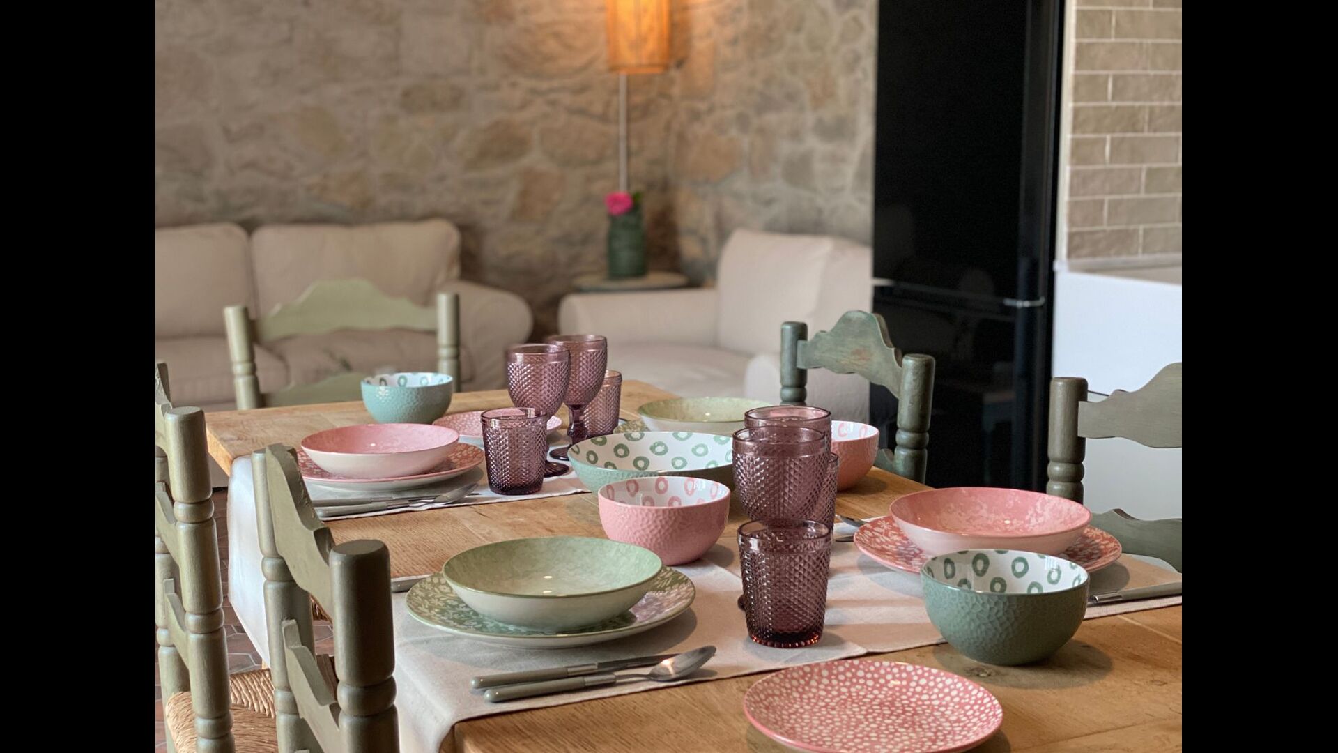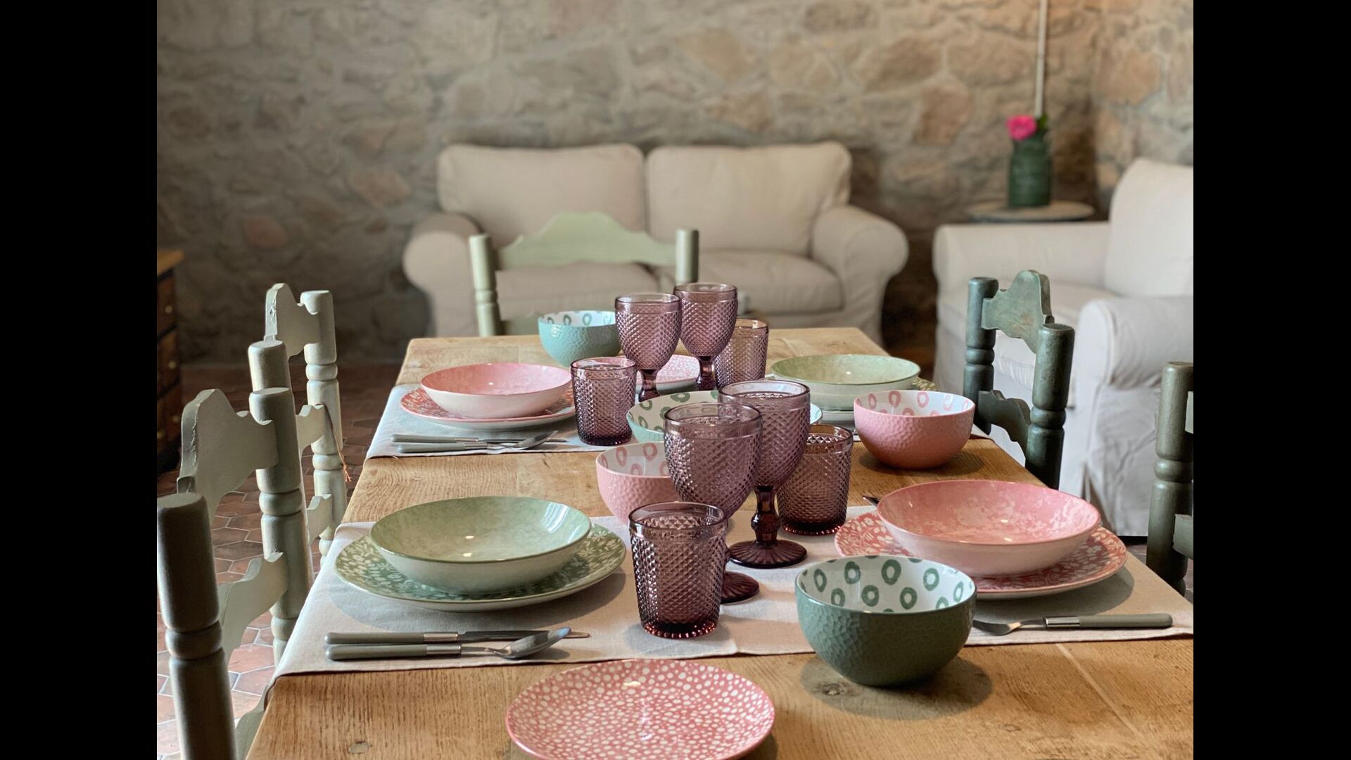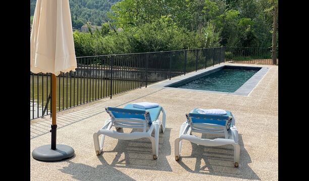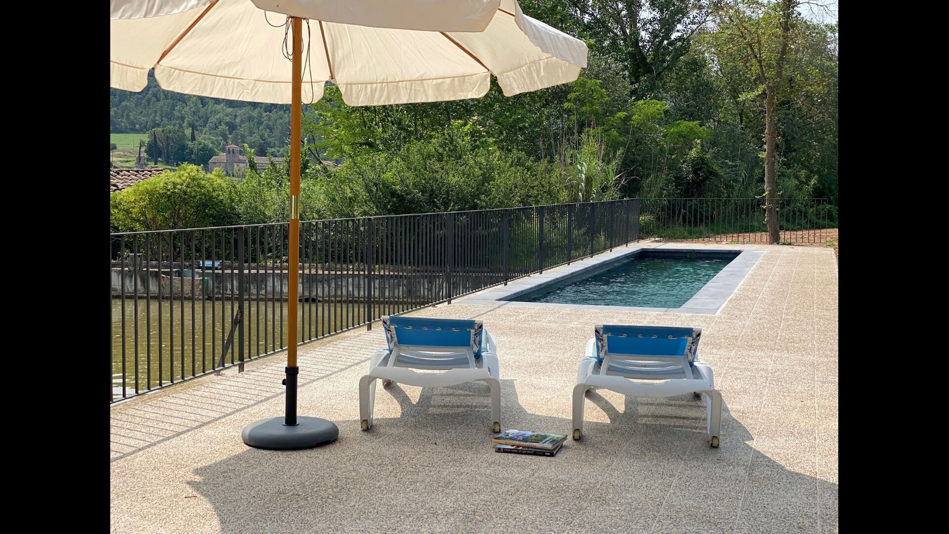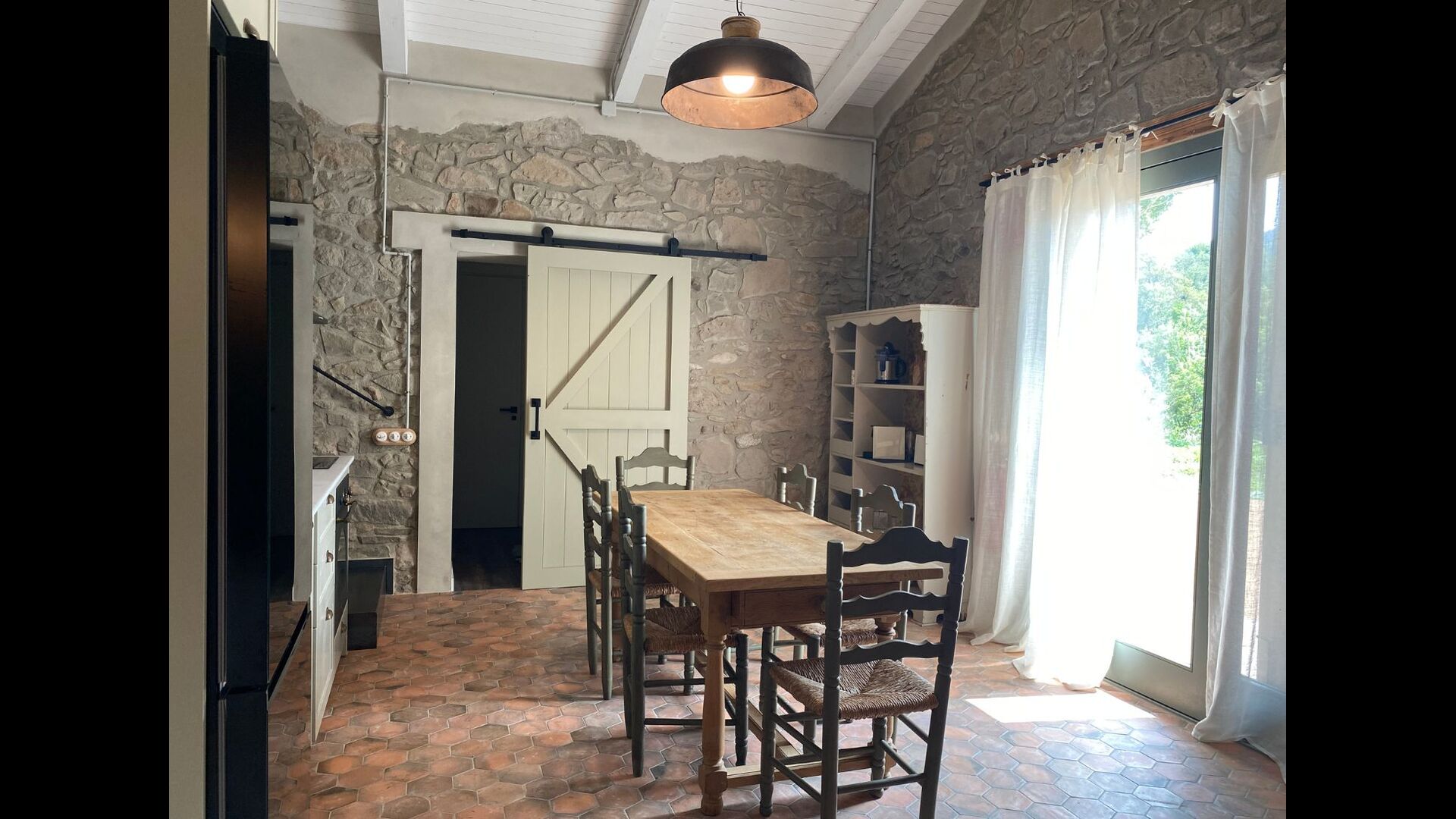 La jolie terrasse est directement reliée à la maison et vous offre à la fois des endroits ensoleillés pour profiter de l'été catalan et des endroits ombragés s'il fait trop chaud pendant la journée. Et puis vous pourrez bien sûr vous rafraîchir dans la piscine privée. La terrasse dispose également de chaises longues, d'une table de terrasse et d'un barbecue.