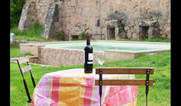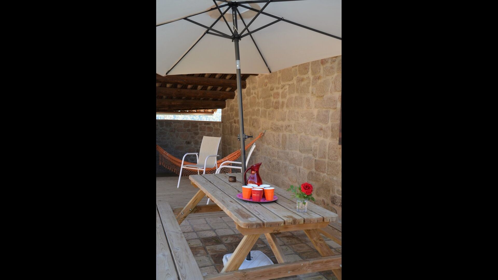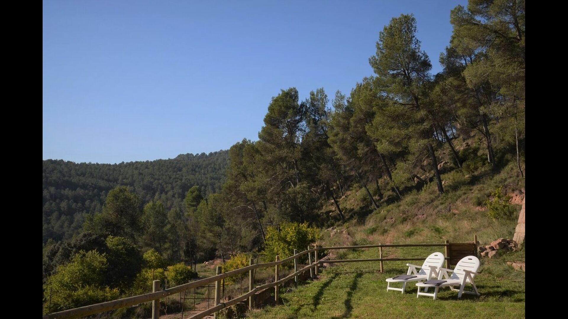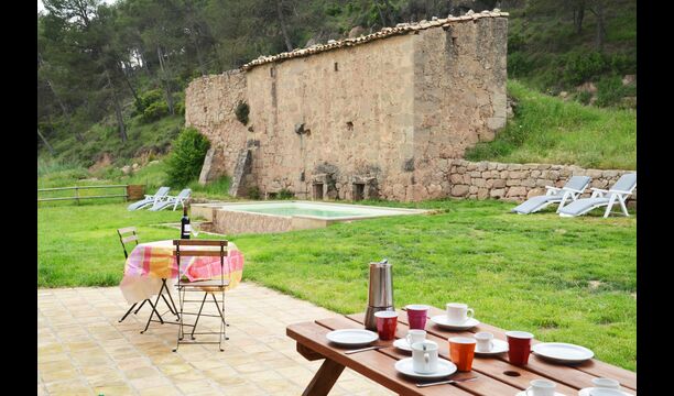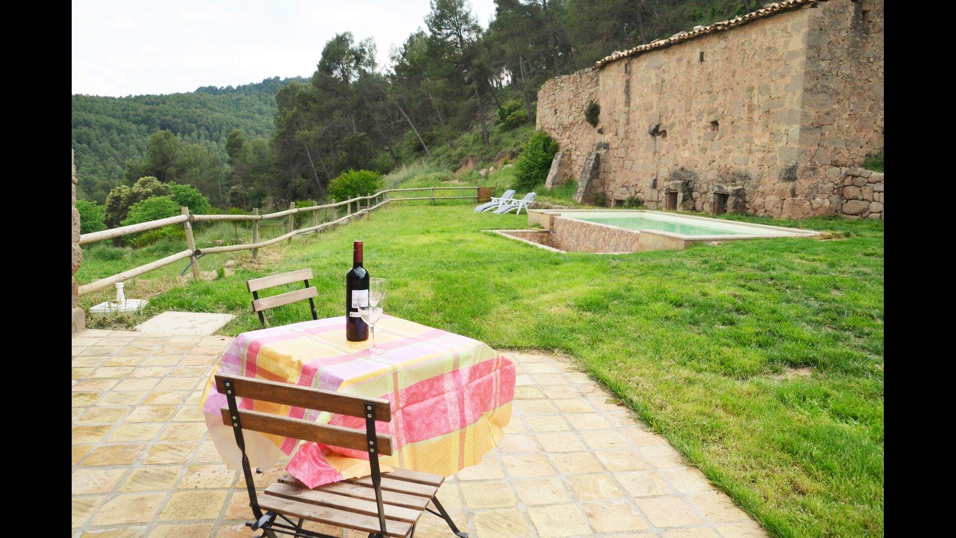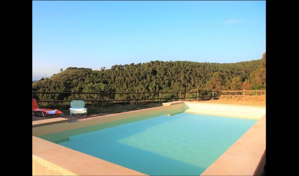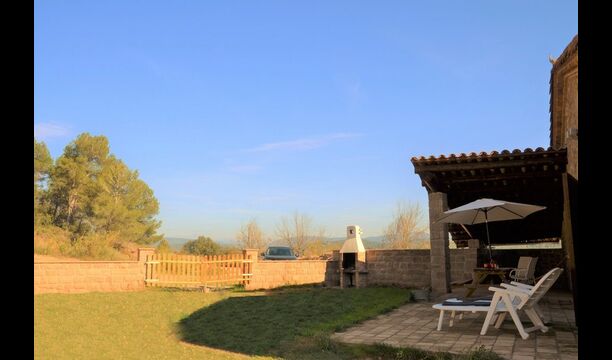 Il y a une grande terrasse couverte sur le côté droit de la maison, juste à côté de la piscine. Ici vous trouverez les incontournables lors de vos voyages en Catalogne: ombre, barbecue, grande table extérieure, hamac et chaises longues. Juste à côté de la terrasse se trouve la piscine qui a une belle vue sur la vallée. Il y a aussi des chaises longues alignées sur le côté de la piscine, où les parents pourront lire et profiter du soleil, tout en surveillant les enfants qui jouent dans la piscine.