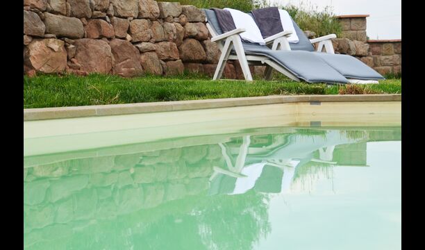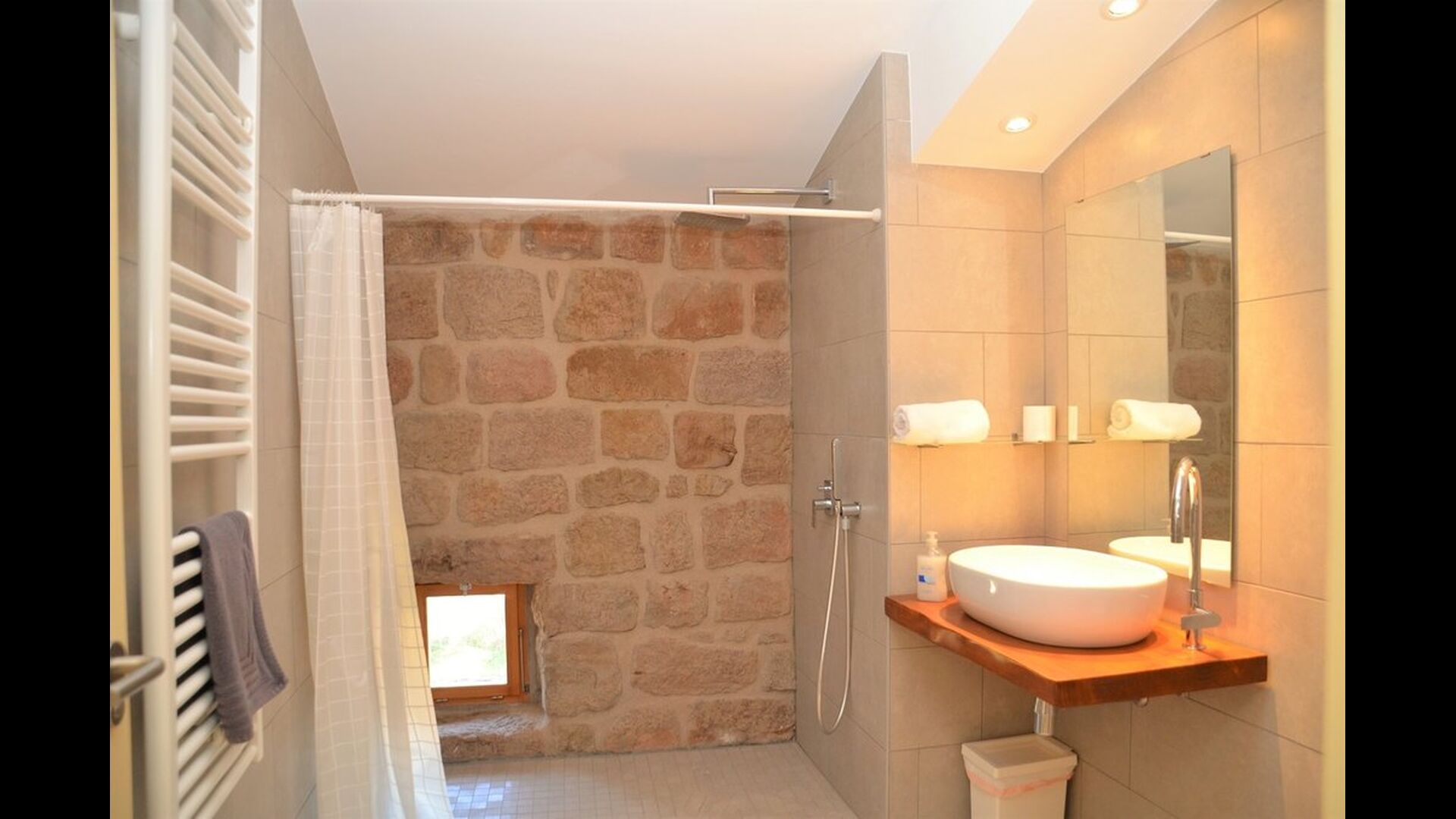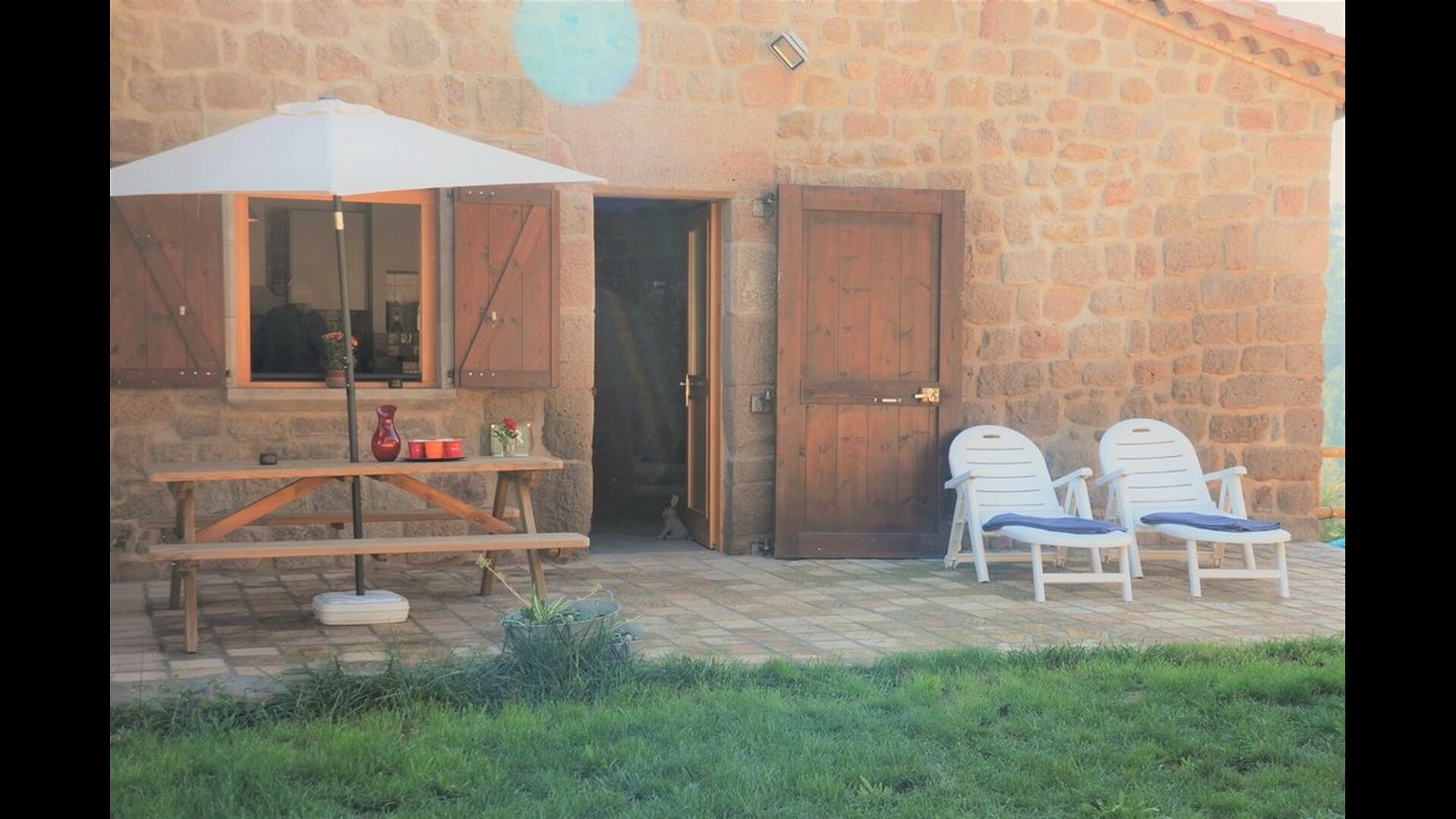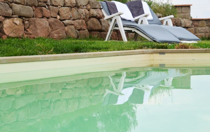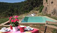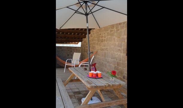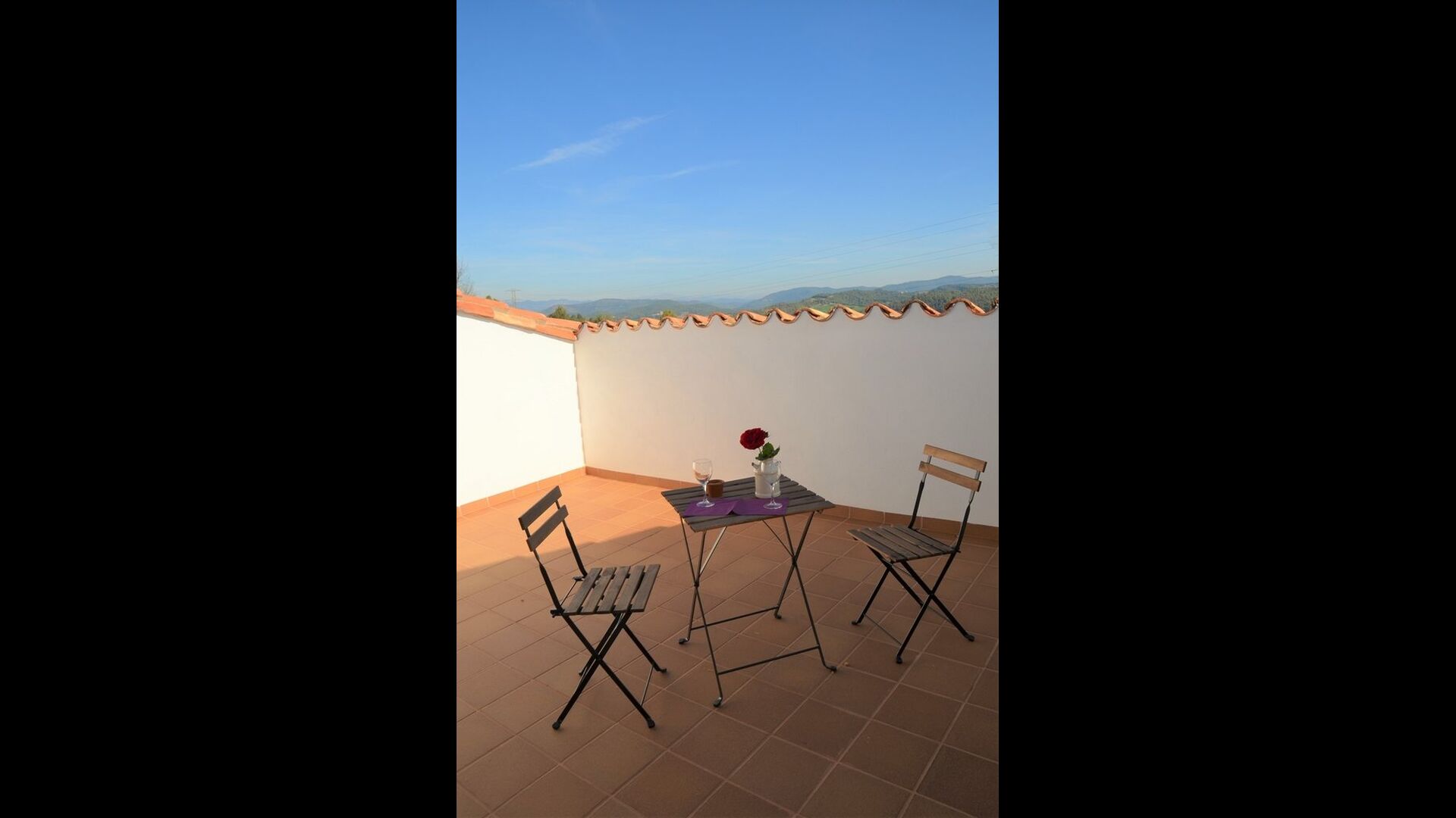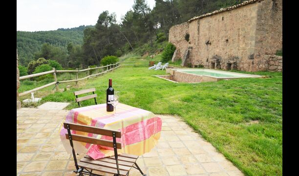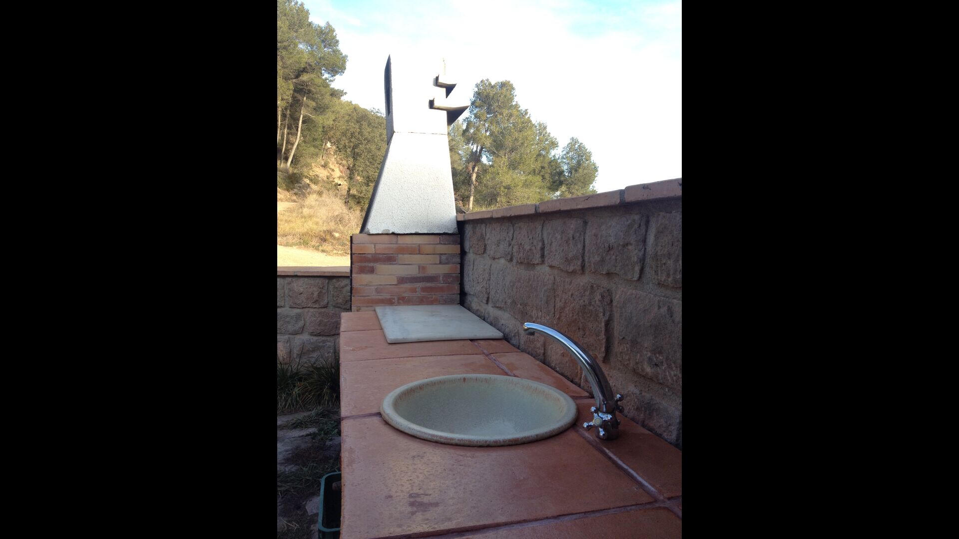 Il y a une grande terrasse couverte sur le côté droit de la maison, juste à côté de la piscine. Ici vous trouverez les incontournables lors de vos voyages en Catalogne: ombre, barbecue, grande table extérieure, hamac et chaises longues. Juste à côté de la terrasse se trouve la piscine qui a une belle vue sur la vallée. Il y a aussi des chaises longues alignées sur le côté de la piscine, où les parents pourront lire et profiter du soleil, tout en surveillant les enfants qui jouent dans la piscine.