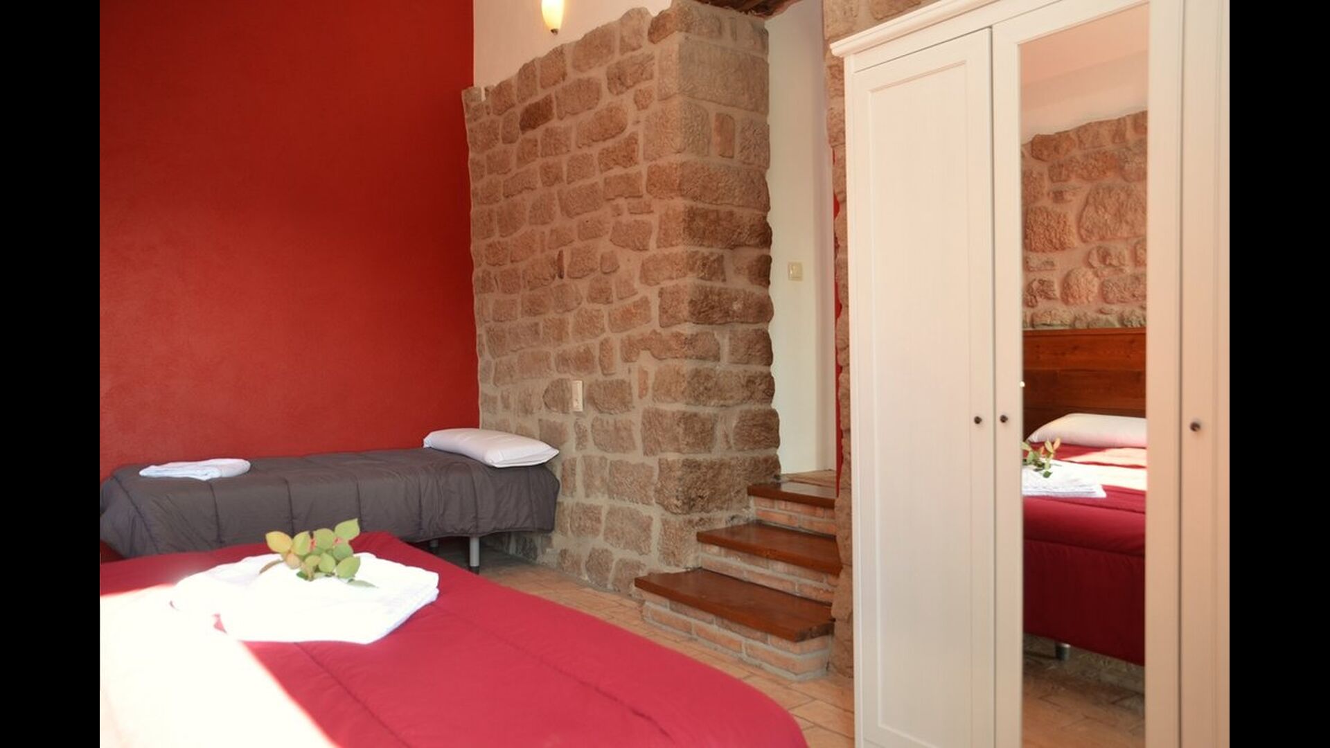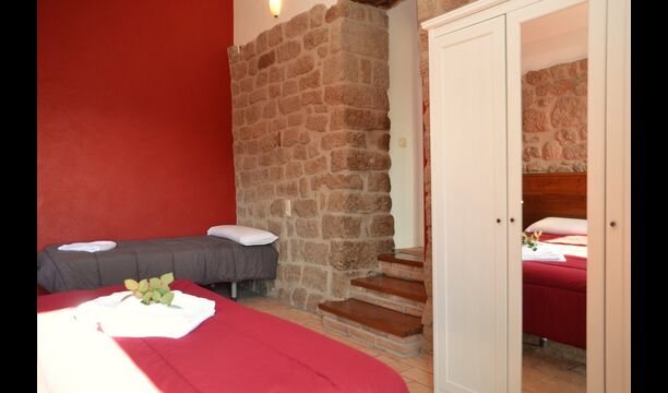 La première chambre est située dérriere la cuisine. C'est une grande chambre double avec les mêmes grandes fenêtres que dans la cuisine. La chambre a un lit double, et a également la possibilité de monter deux lits supplémentaires. Il y a aussi une salle de bain luxueuse. La chambre à coucher suivante une chambre double, très semblable à la première a elle aussi une salle de bains attenante. Au niveau suivant se trouve la troisième chambre, qui est une chambre triple. Cette chambre se distingue un peu car elle dispose d'un magnifique balcon français, et bien sûr aussi d'une salle de bain attenante. La quatrième et dernière chambre, est parfaite pour les invités, cherchant à se retirer un peu par moments. Cette chambre est une chambre triple et dispose d'une terrasse avec solarium privé.