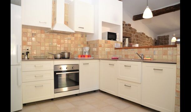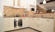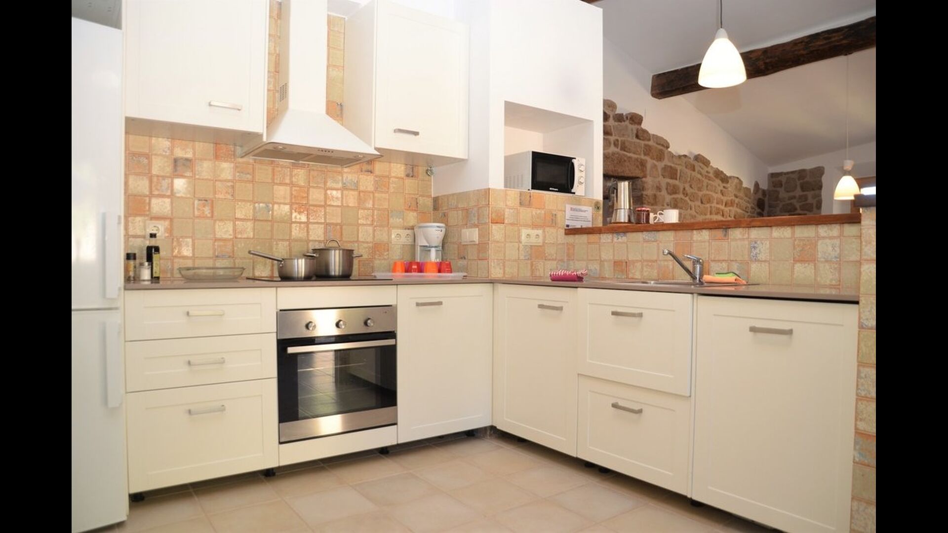 Cuisine bien équipée avec machine à café, four, cuisinière, congélateur et réfrigérateur