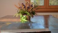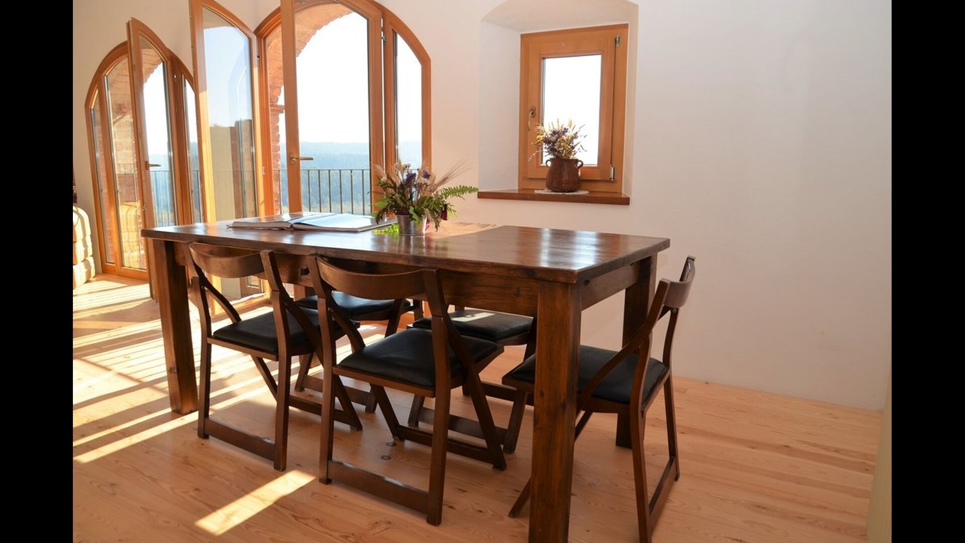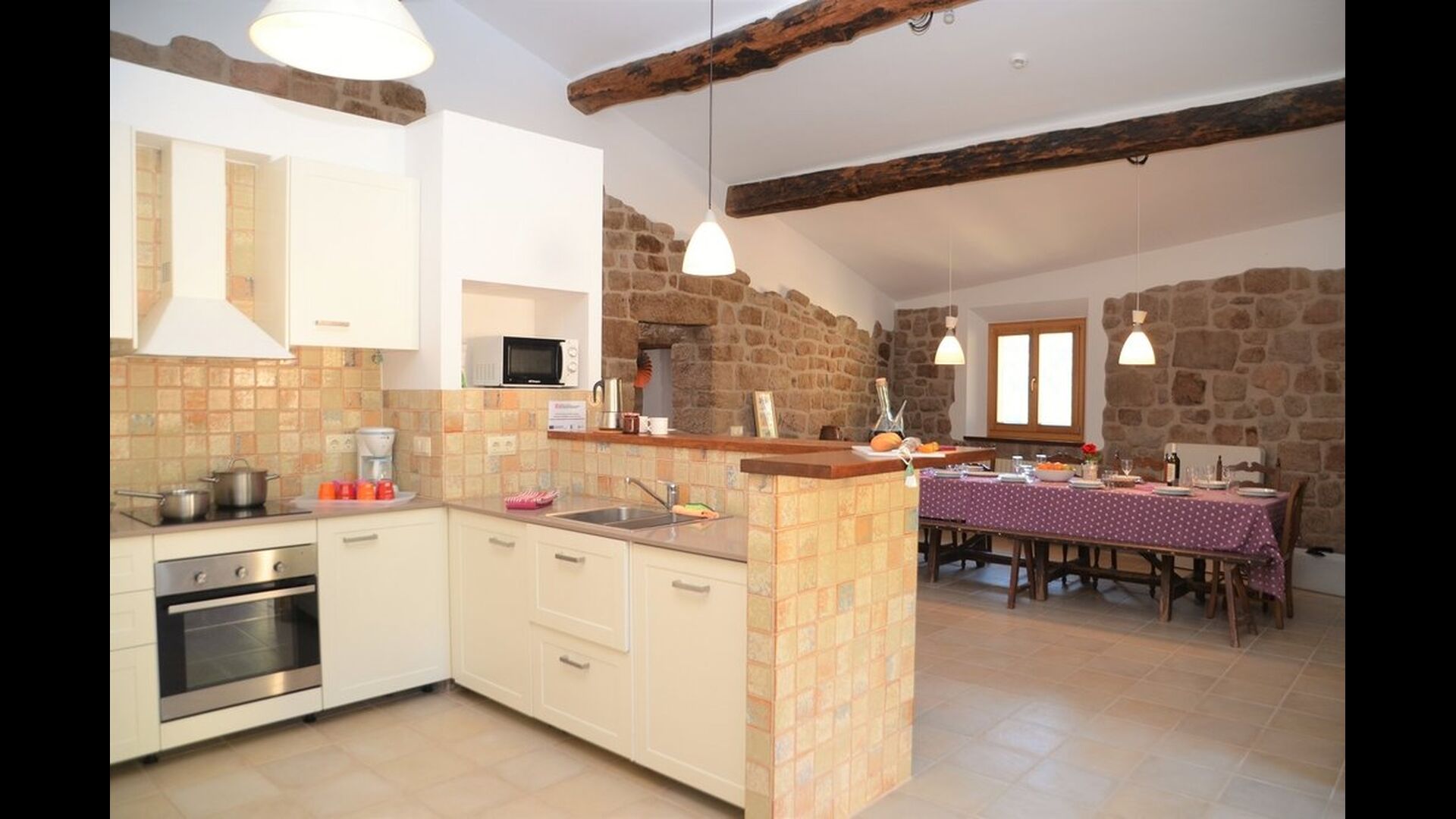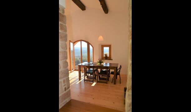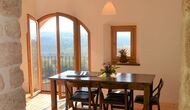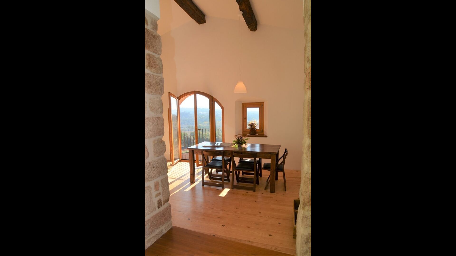 Vous entrerez dans la grande cuisine en entrant dans la maison depuis la terrasse. La cuisine est une très belle piéce ouverte, spacieuse et moderne. Avec de grandes fenêtres panoramiques donnant sur la vallée, offrant non seulement une vue magnifique, mais aussi l'éclairage parfait. Avec l'entrée directe aux installations extérieures, cela ressemble presque à une cuisine extérieure! La cuisine est très bien équipée avec tout ce dont vous avez besoin, y compris un réfrigérateur, congélateur, four, cuisinière, cafetière, machine à laver, etc. Il y a même une grande télévision à écran plat sur le mur, donc vous pouvez regarder la télévision. La maison dispose également de WIFI. Au bout du clouloir central de la maison, vous trouverez également le charmant salon, qui, comme le reste de la maison a également de très grandes fenêtres et une belle vue panoramique.