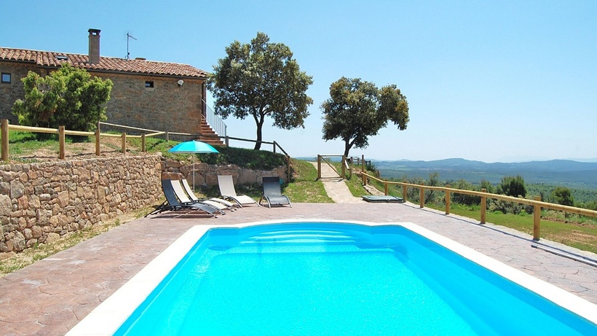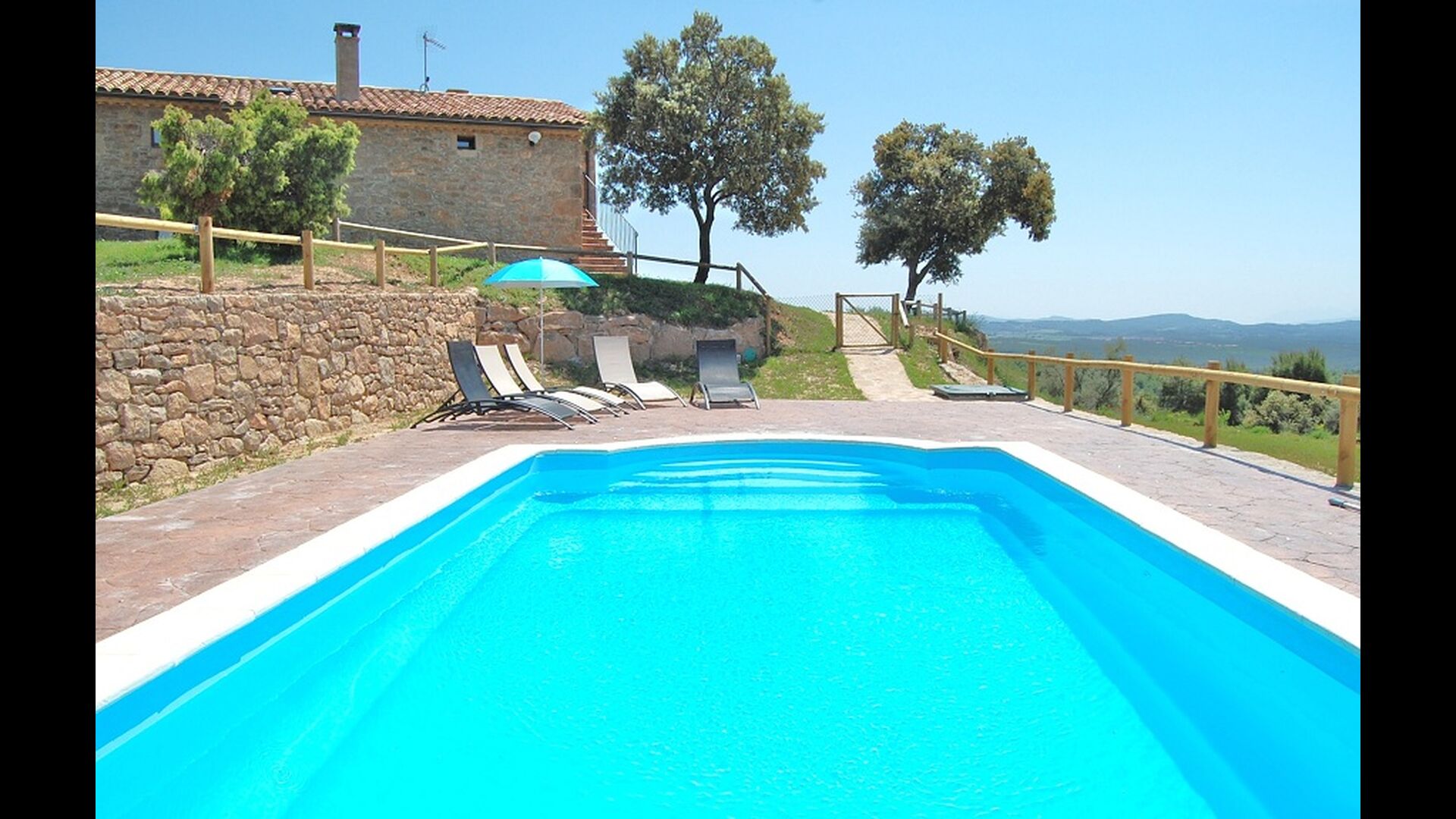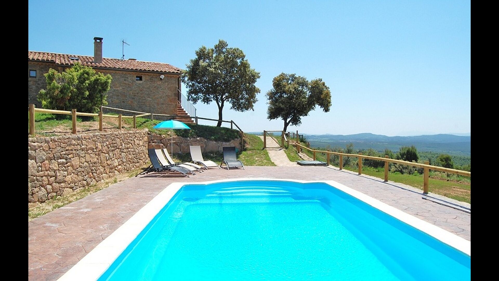 La maison est située au sommet d'une petite colline, ce qui vous fait sentir que depuis le jardin, vous pouvez presque voir le monde entier et que la paix qui règne ici est parfaite pour des vacances où vous souhaitez vous ressourcer et vous détendre tournée dans la région). Sur la propriété se trouvent une grande piscine clôturée (ce qui est un avantage si vous voyagez avec de jeunes enfants) et une grande pelouse à l'arrière de la maison avec une aire de jeux et un espace pour les jeux de ballon. La maison dispose d'un espace barbecue couvert, que vous préférerez les chaudes journées d'été ou les nombreuses longues soirées d'été. La terrasse a barbecue, cuisine extérieure et une bouteille de gaz à la grande poêle à paella.