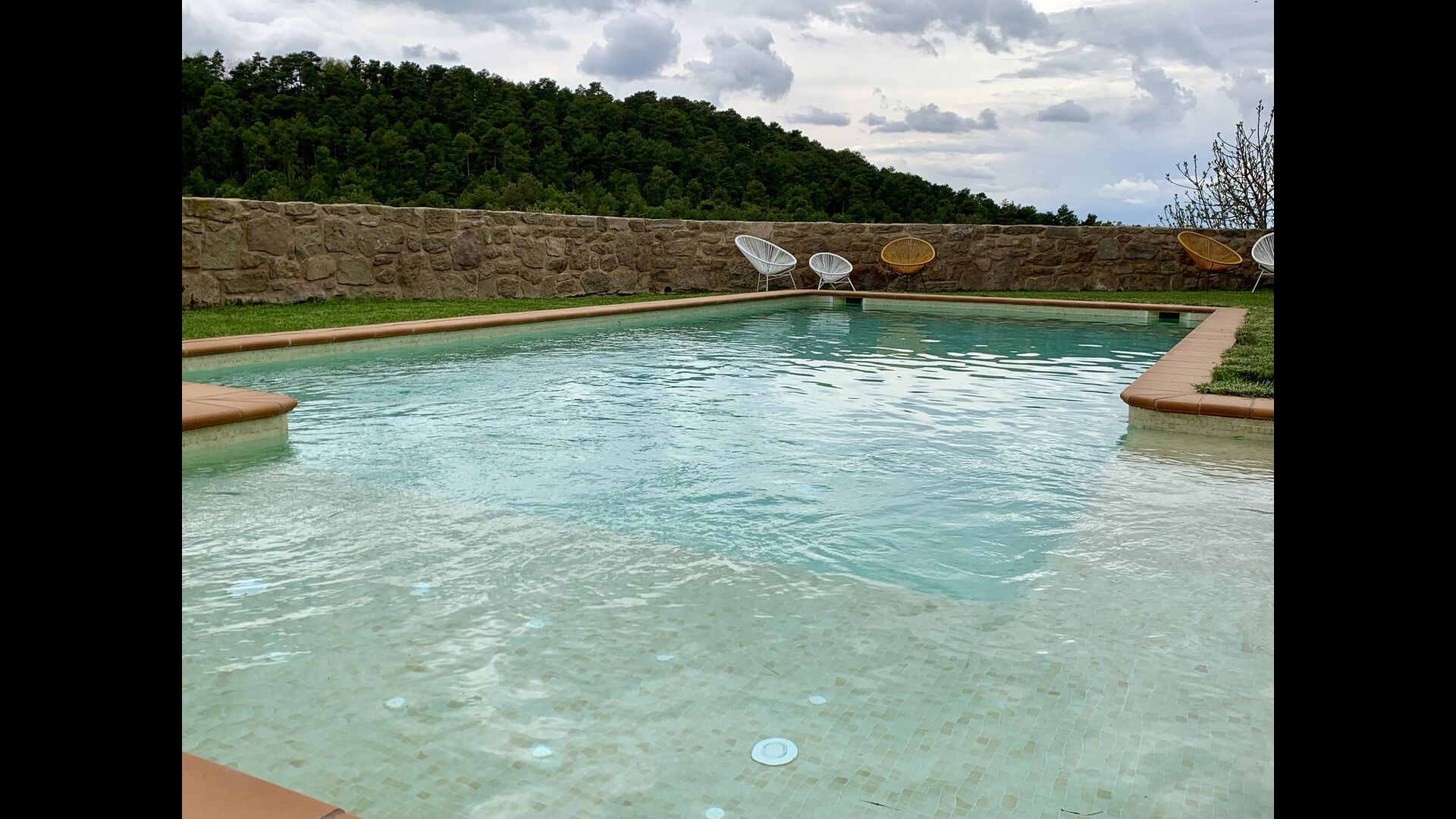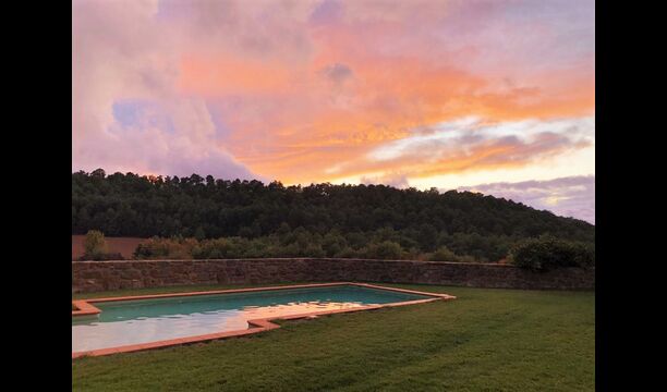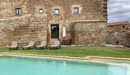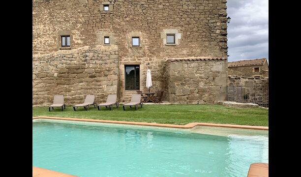 Une route de gravier venteuse traverse la verdure jusqu'à la belle maison en calcaire, qui se compose d'un bâtiment principal et d'un bâtiment plus petit. En sortant de la voiture, vous êtes immédiatement frappé par la belle nature qui entoure la maison. L'espace piscine est situé devant la maison. Elle offre une vue imprenable sur les vallées et de confortables chaises longues sont alignées le long de la piscine. Vraiment l'endroit idéal pour se détendre sous le soleil catalan !