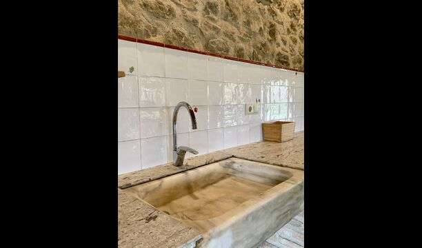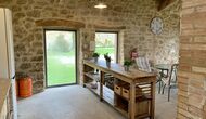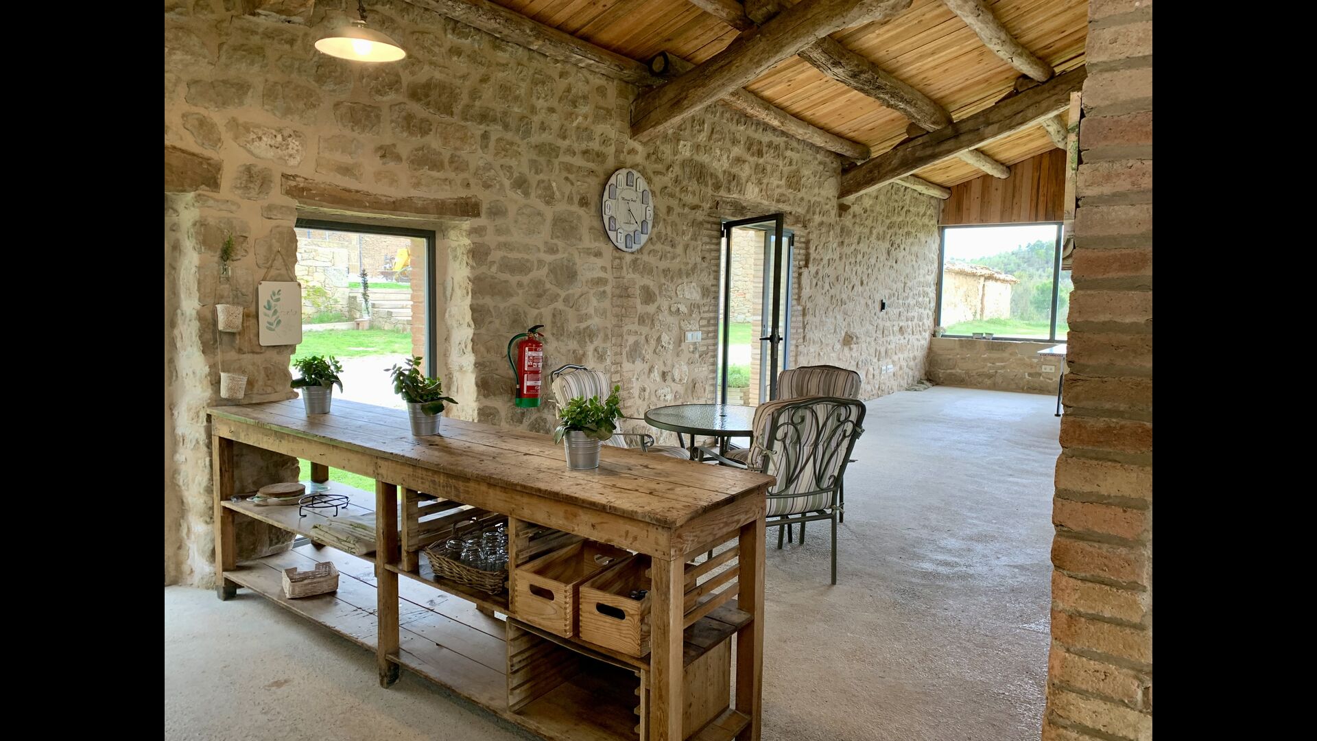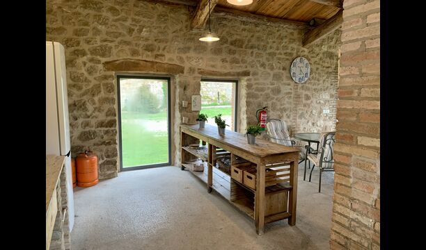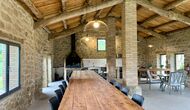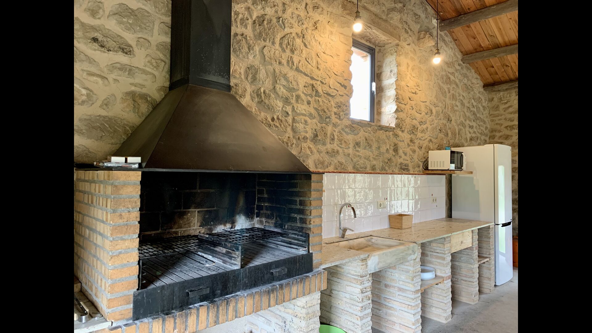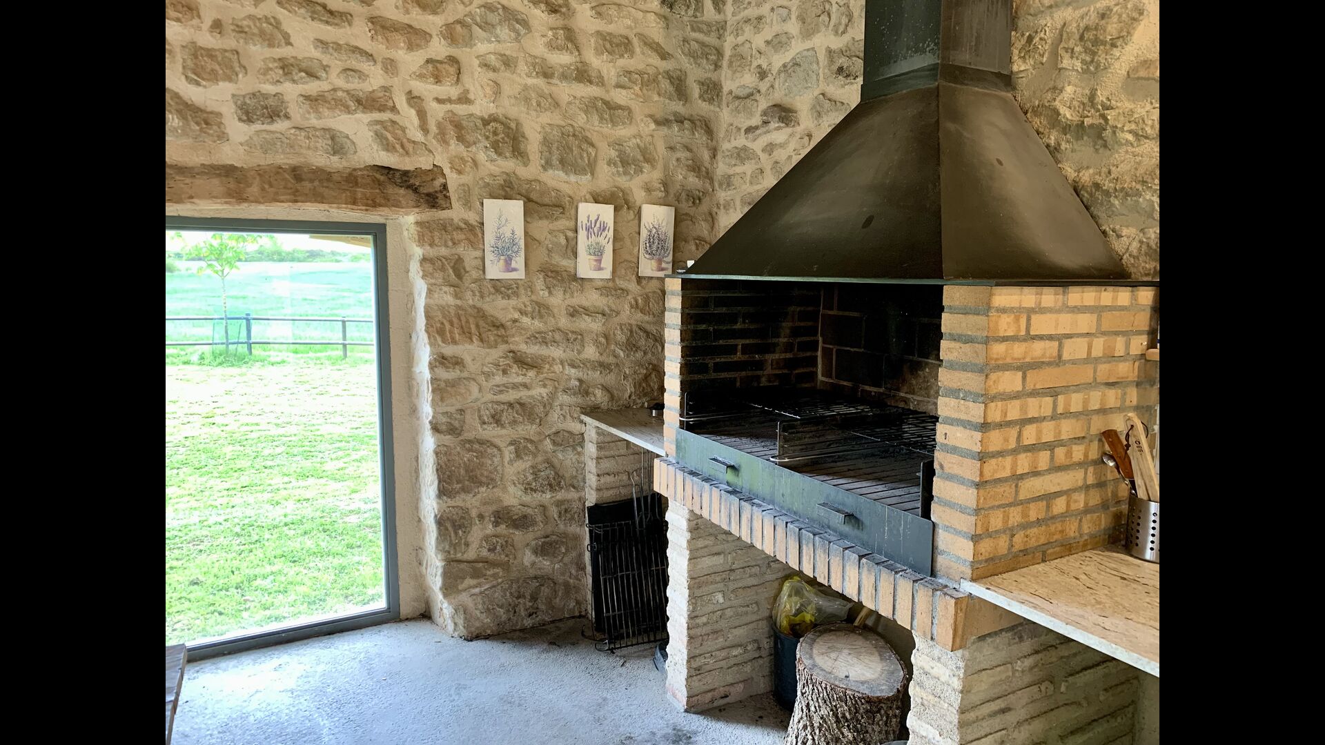 Le plus petit bâtiment séparé en calcaire est situé à côté de la piscine. À l'intérieur, vous trouverez une grande table de ping-pong, une longue table à manger en bois et un espace barbecue avec des équipements de cuisine simples. L'emplacement est superbe, car il est facile de s'y rendre depuis la piscine. Nous imaginons que les enfants du groupe s'amuseront à courir entre la salle de jeux et la piscine.
