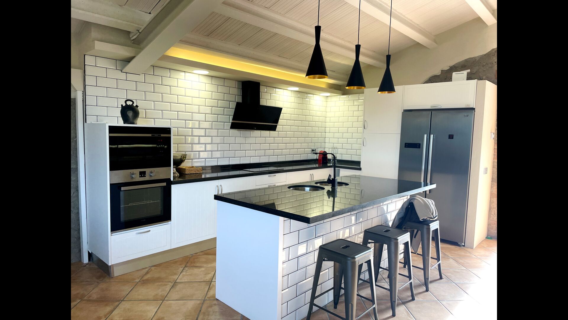 • La cuisine est bien équipée avec plaques vitrocéramiques, four, réfrigérateur, congélateur, Nespresso etc.