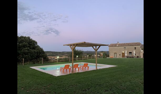 Can de Rogell est étonnamment privé, haut dans la campagne au bord d'une montagne, qui offre la plus belle vue sur le village et avec les Pyrénées en toile de fond. En même temps, il possède un immense jardin avec une belle piscine et un grand terrain vert avec un but de football.
