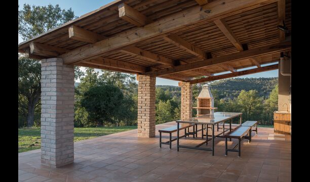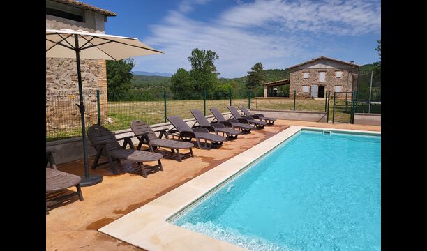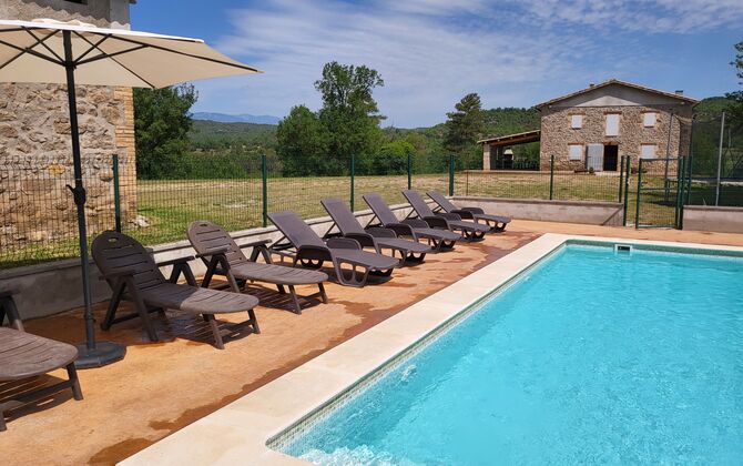 Séjournez dans un cadre magnifique sans voisins dans la maison catalane classique en pierre calcaire pour 12 + 2 personnes. Profitez de la vue sur les montagnes boisées ou faites une courte promenade jusqu'à la riera - la petite rivière qui traverse le paysage juste en dessous de la maison et, selon le temps, vous offre même de jolies petites piscines pour nager et aussi une minuscule cascade.