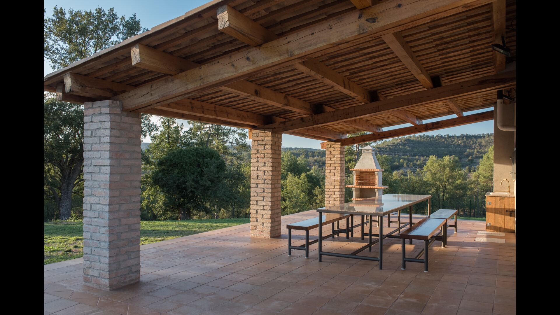 Cependant, en été, vous resterez probablement la plupart du temps à l'extérieur, et ici vous pourrez profiter de la vie sur la très belle terrasse couverte avec barbecue, et d'où vous pourrez facilement garder un œil sur la piscine (qui est également clôturée pour plus de sécurité) .