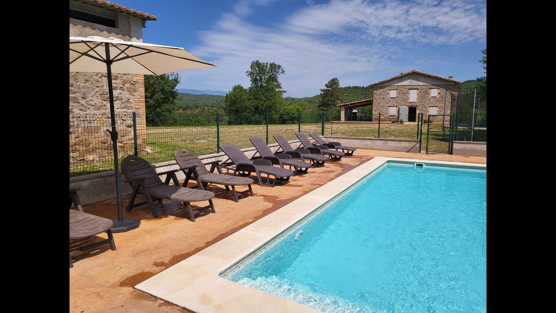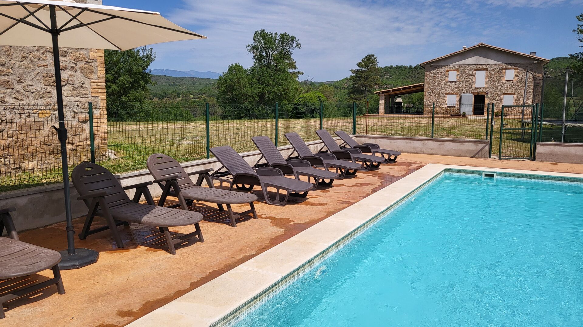 Et si l'été est sec, vous avez votre propre piscine privée, toujours pleine d'eau, qui occupera les enfants ainsi que les nombreuses activités telles que le tennis de table, le trampoline, le but de football et le bac à sable, et vous offrira un bien-être. repos mérité à l'ombre ou au soleil au choix avec boisson fraîche sortie du frigo.